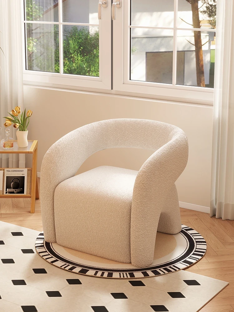 クリーミーな風合いのラムファー一人掛けソファチェア|リビングやバルコニーに最適なリラックスデザイン|おしゃれな寝室にもぴったり!快適さとスタイルを兼ね備えたモダンな一人掛けソファ!