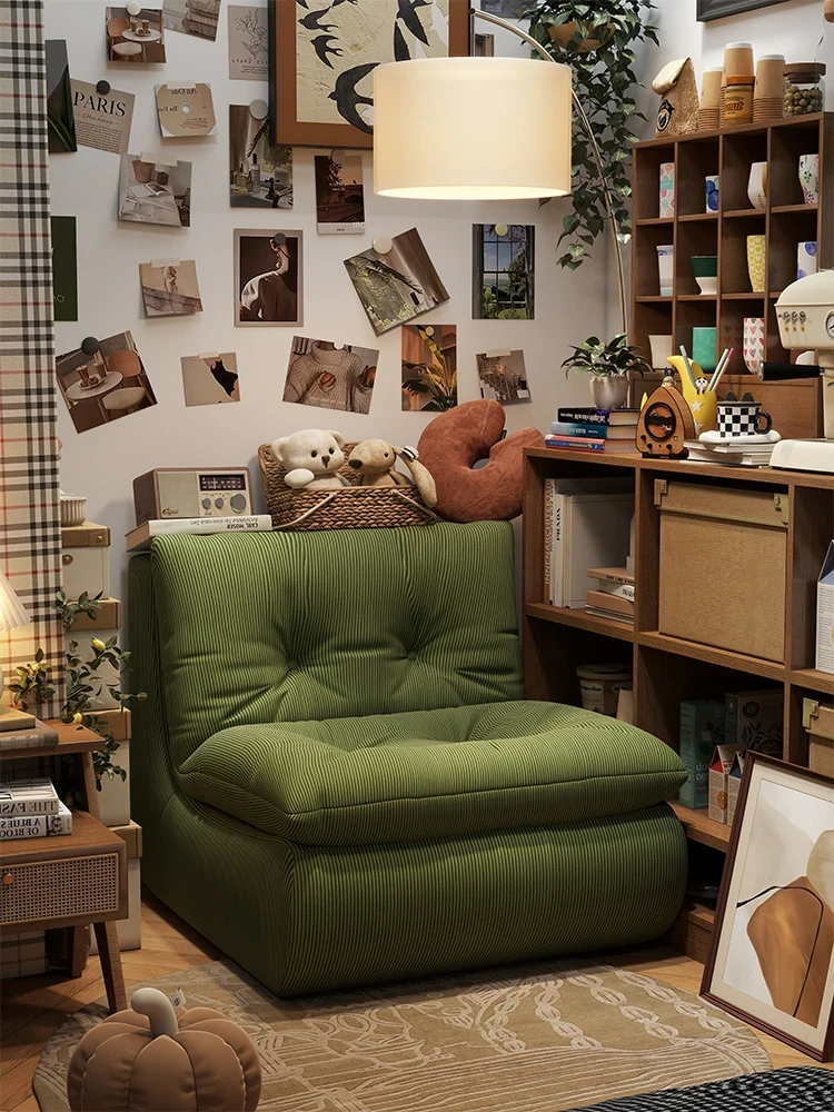 一人用のリラックスソファ|シンプルでモダンなデザイン|寝室やバルコニーに最適|快適なライトコーデュロイ素材使用のリビングルーム用アームチェア【オシャレで居心地の良い空間を演出】