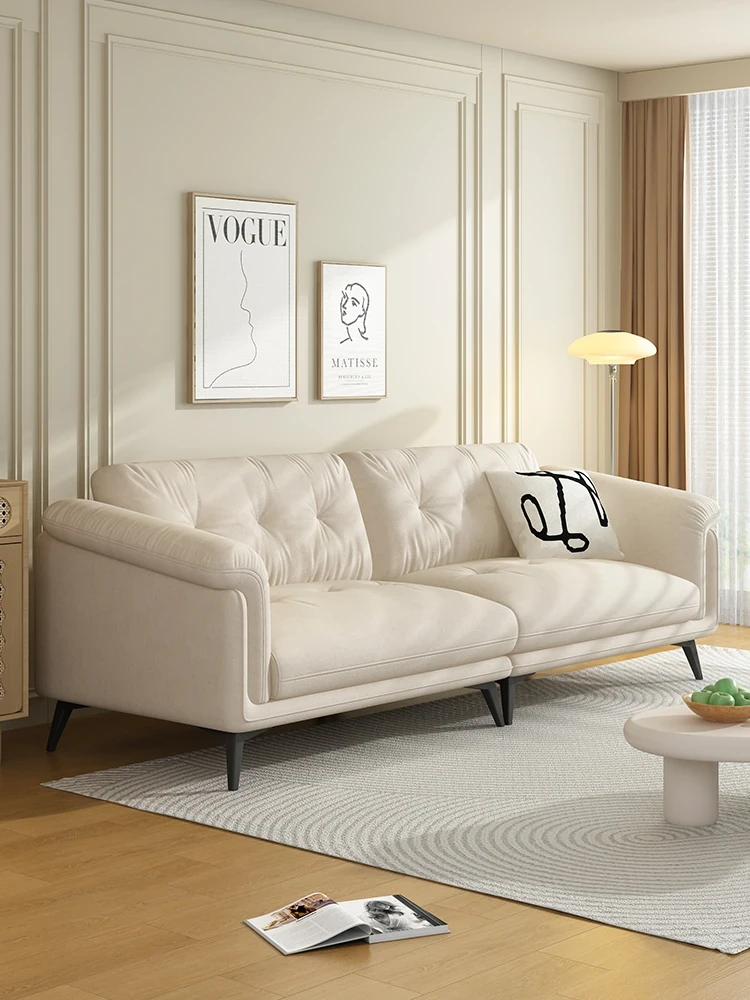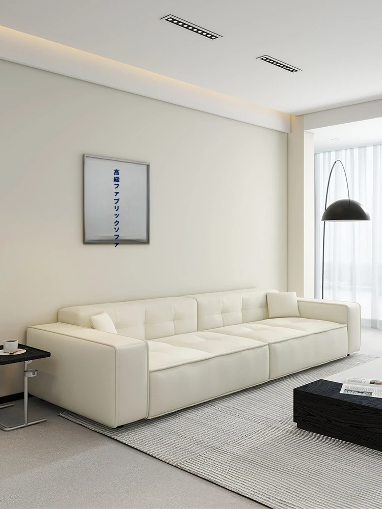 イタリアンミニマルスタイルのピアノキーレザーファブリックソファ - コンパクトで使いやすい、豆腐ブロックデザインのクリーム調現代風リビング用ソファ。おしゃれな小型住宅にぴったり!