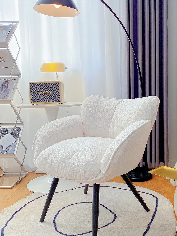北欧スタイルの軽やかなラグジュアリー!人気のリクライニング一人掛けソファ—バルコニーやリビングに最適、フェミニンな寝室にもぴったり。柔らかいラムウール使用、リラックスしたくなるラウンジチェア!