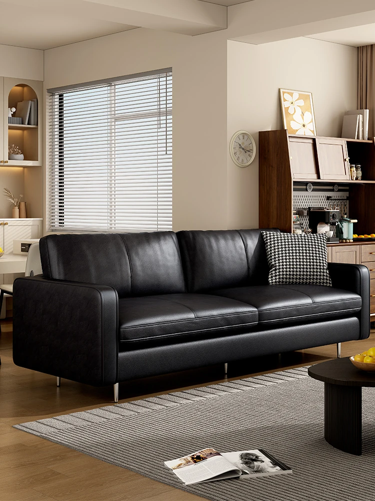 ヴィンテージ風オイルワックスレザーソファ フランス風レトロ 2024年新作 欧風ブラウン 軽奢華でおしゃれなリビング用 二人掛け&三人掛け 小型住宅向けデザイン