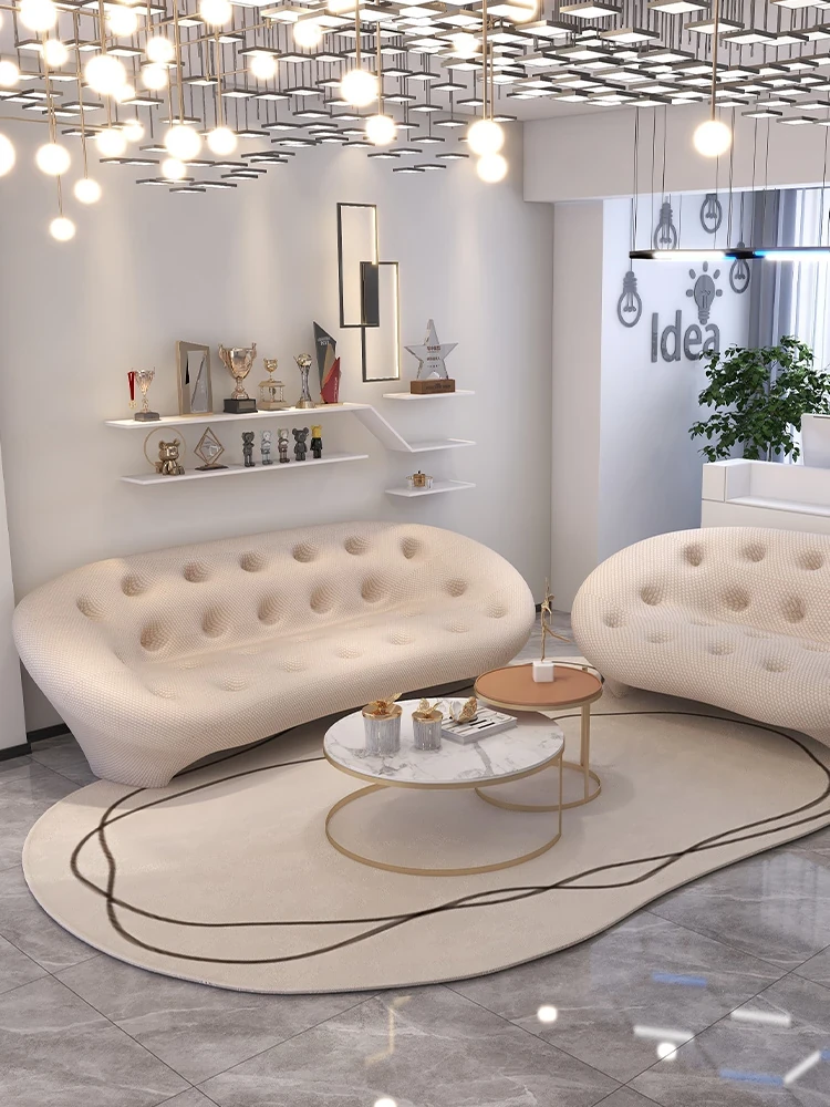 北欧スタイルのラグジュアリーオフィス用テクスチャー布ソファ|小型ダブル3人掛け|リビング・店舗に最適なビジネスレザーソファ|狭いスペースにもぴったりなモダンデザイン