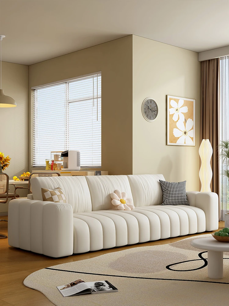 クリーミーな猫爪デザインの皮製ソファー|モダンでシンプル、持ち運びやすい|小さなお部屋にもぴったり!3〜4人用の贅沢な豆腐ブロックソファで、快適なリビング空間を実現!