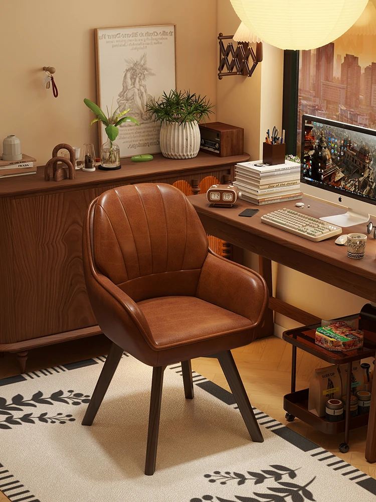 Elegant Home Office Chair - Vintage Style Solid Wood Desk Chair with Adjustable Height and Rotating Backrest, Perfect for Study and Bedroom, Combining Comfort and Luxury.