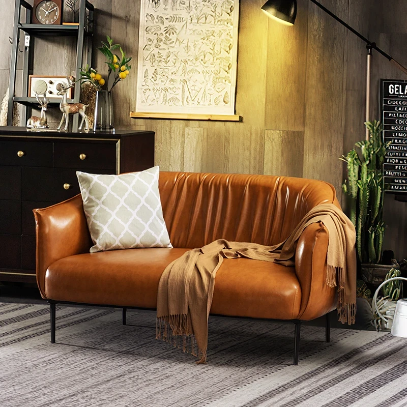 Nordic Waxed Leather Sofa - Elegant Business Reception Couch for Meetings and Fashion Stores, Comfortable Two-Seater for a Stylish Touch in Any Space