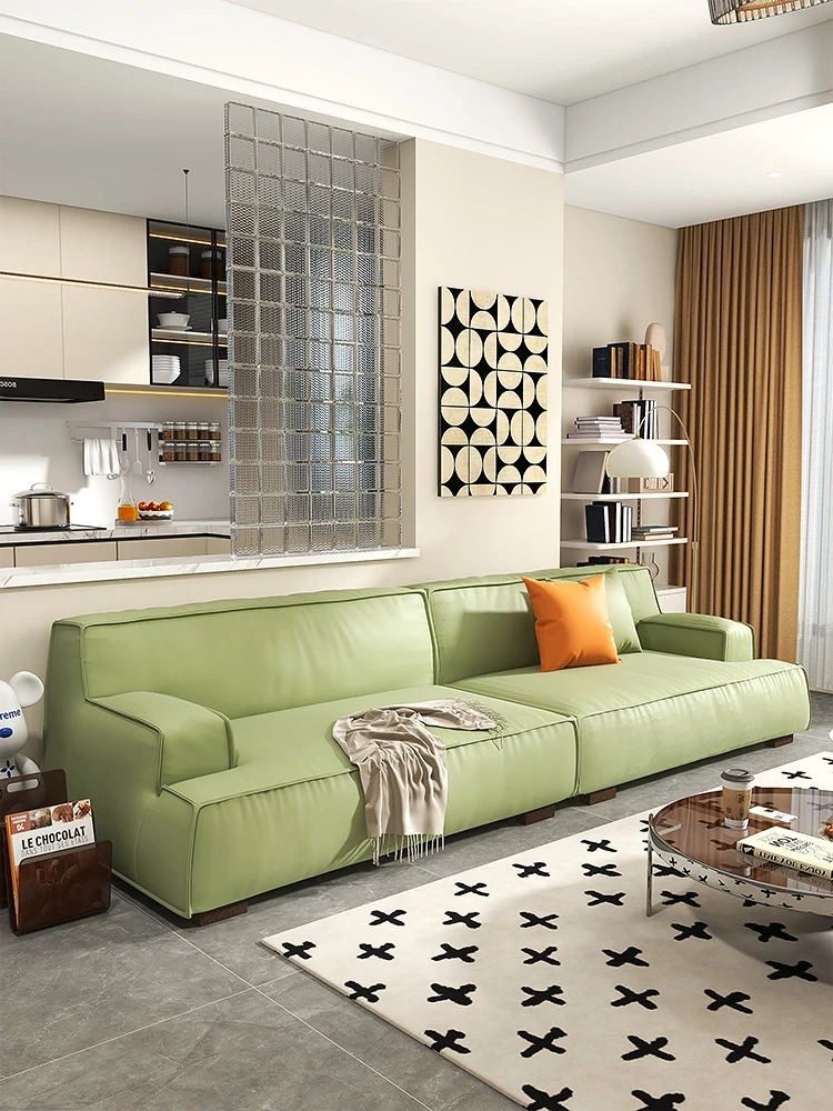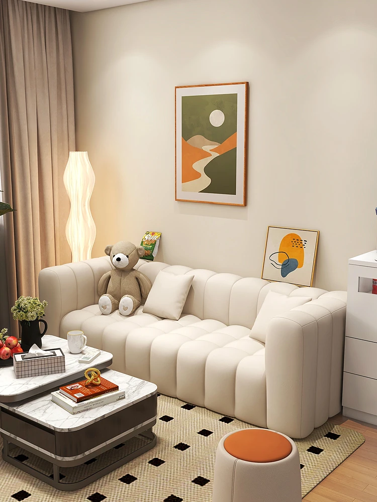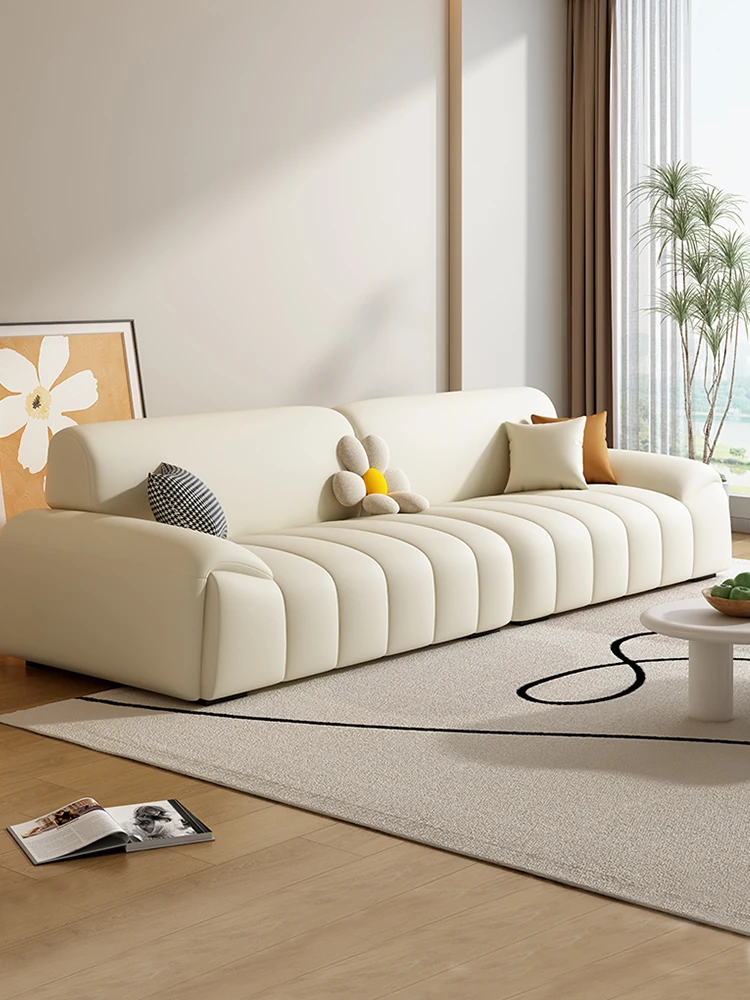 Creamy Cat Paw Leather Sofa – Minimalist Modern Design for Small Living Rooms, Luxurious Faux Leather, Stylish 3-Seater with Piano Key Style