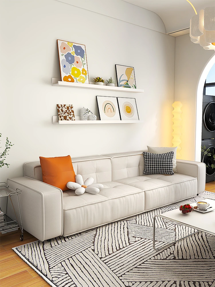 Modern Minimalist Italian Style Cream Tofu Block Sofa - Lightweight Luxury Tech Fabric Sofa for Small Living Rooms, Perfect for Chic and Cozy Spaces