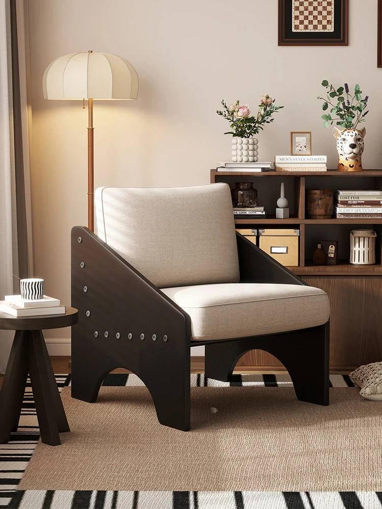 Vintage-Inspired Single Sofa Chair for Living Room & Balcony – Solid Wood Retro Design by Designer, Stylish Lounge Chair for Bedroom & Small Spaces