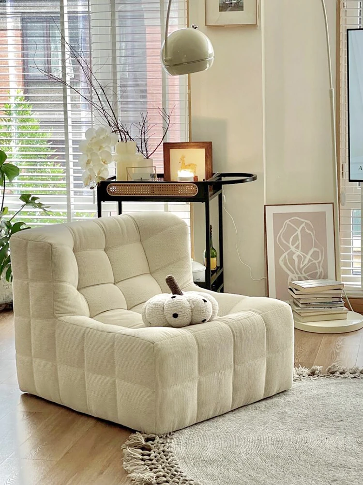 Chic French Cream Cat Paw Sofa for Small Spaces - Minimalist Luxury Cotton Candy Tofu Block Fabric Couch for Stylish Living Rooms