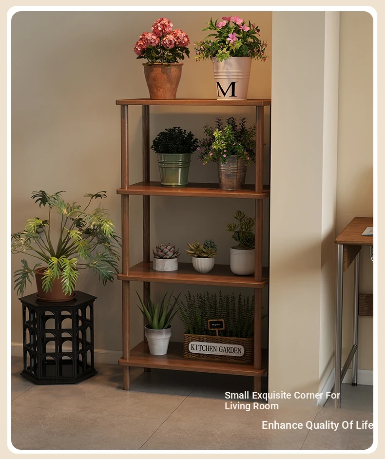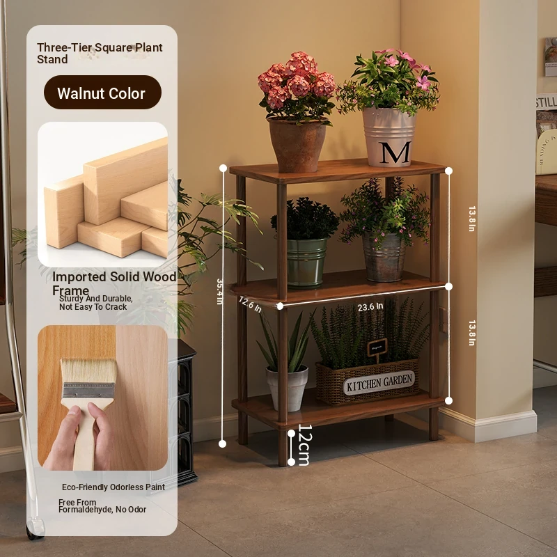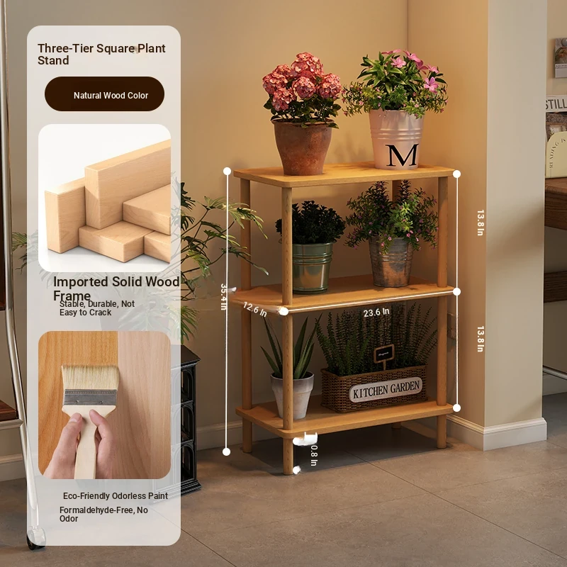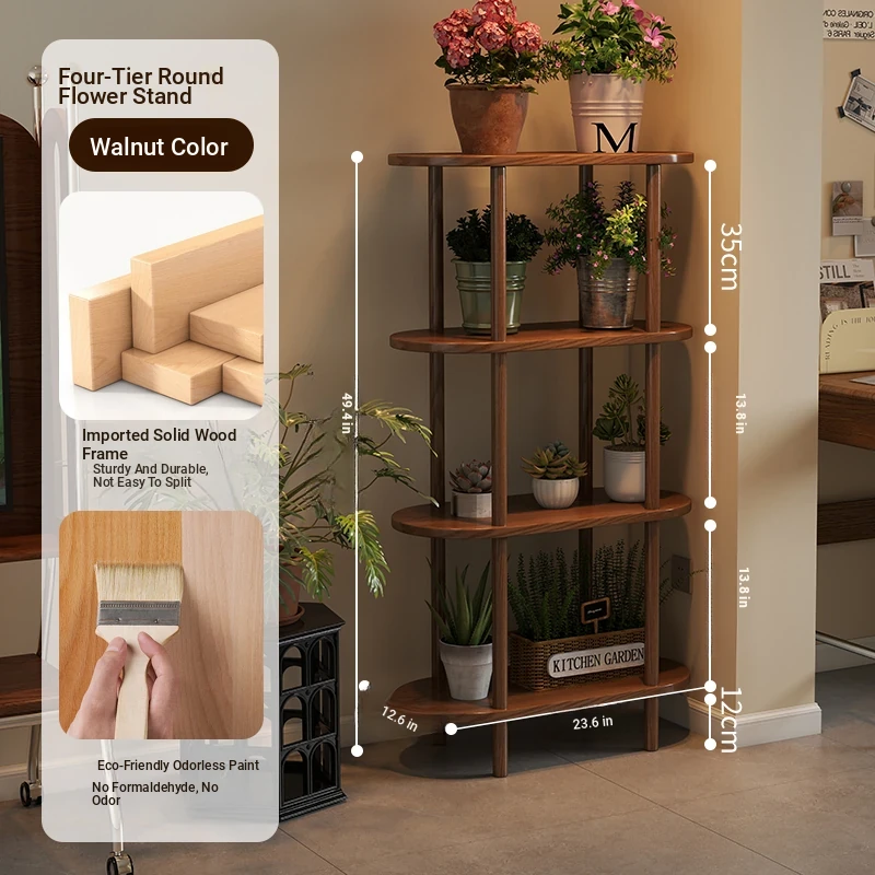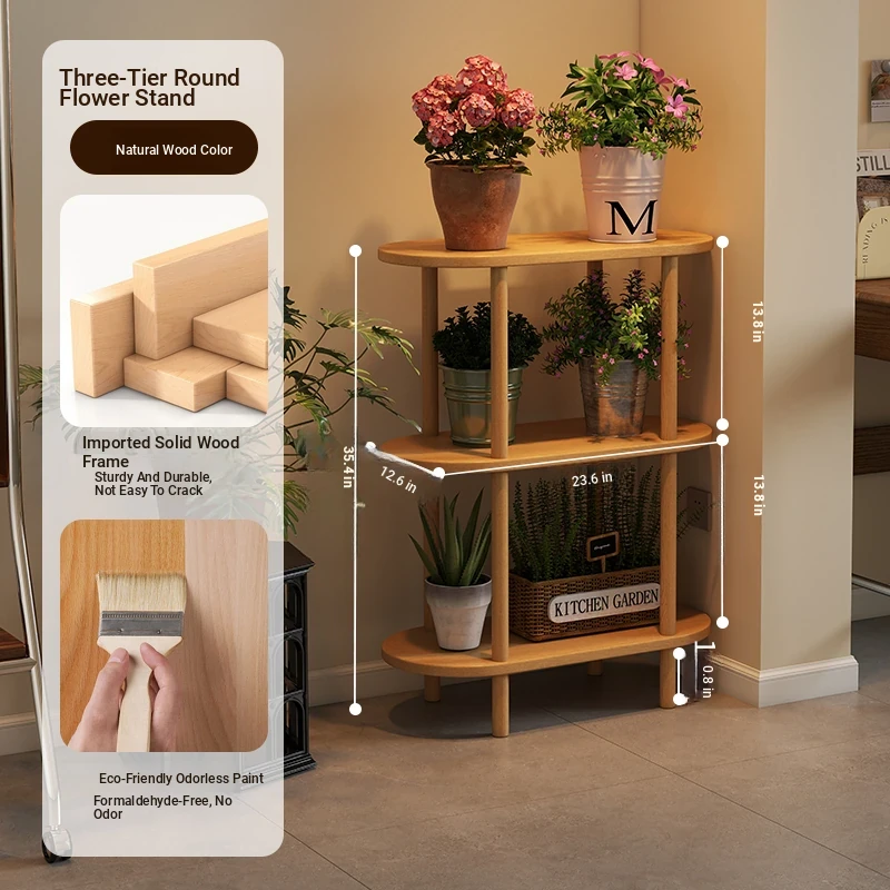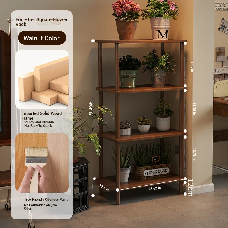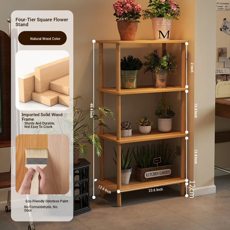 Elegant Chinese Solid Wood Multi-Layer Flower Rack - Minimalist Balcony Plant Stand for Potted Greenery, Versatile Storage Solution for Living Room and Beyond!