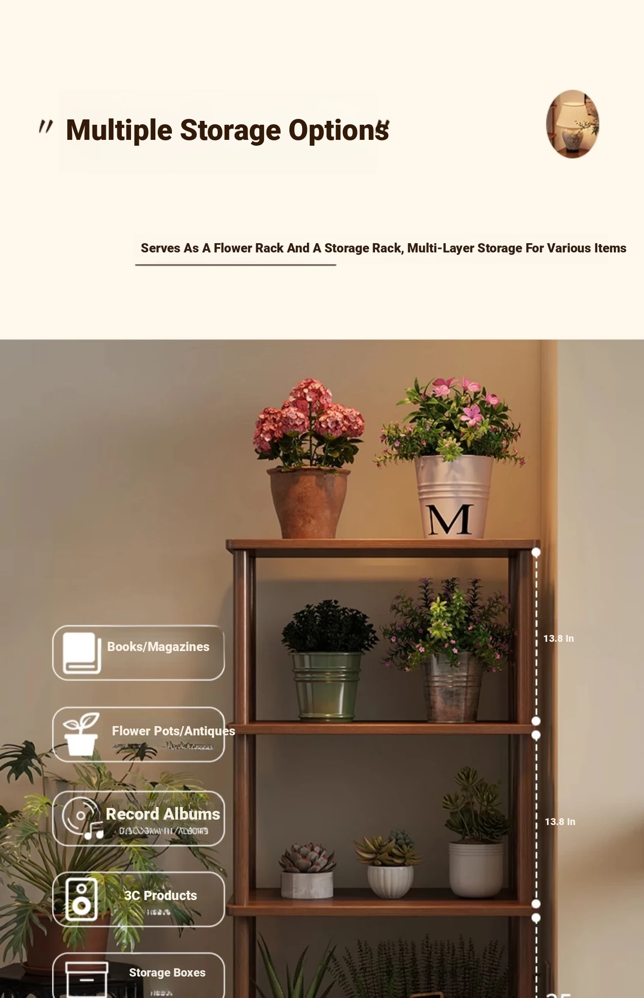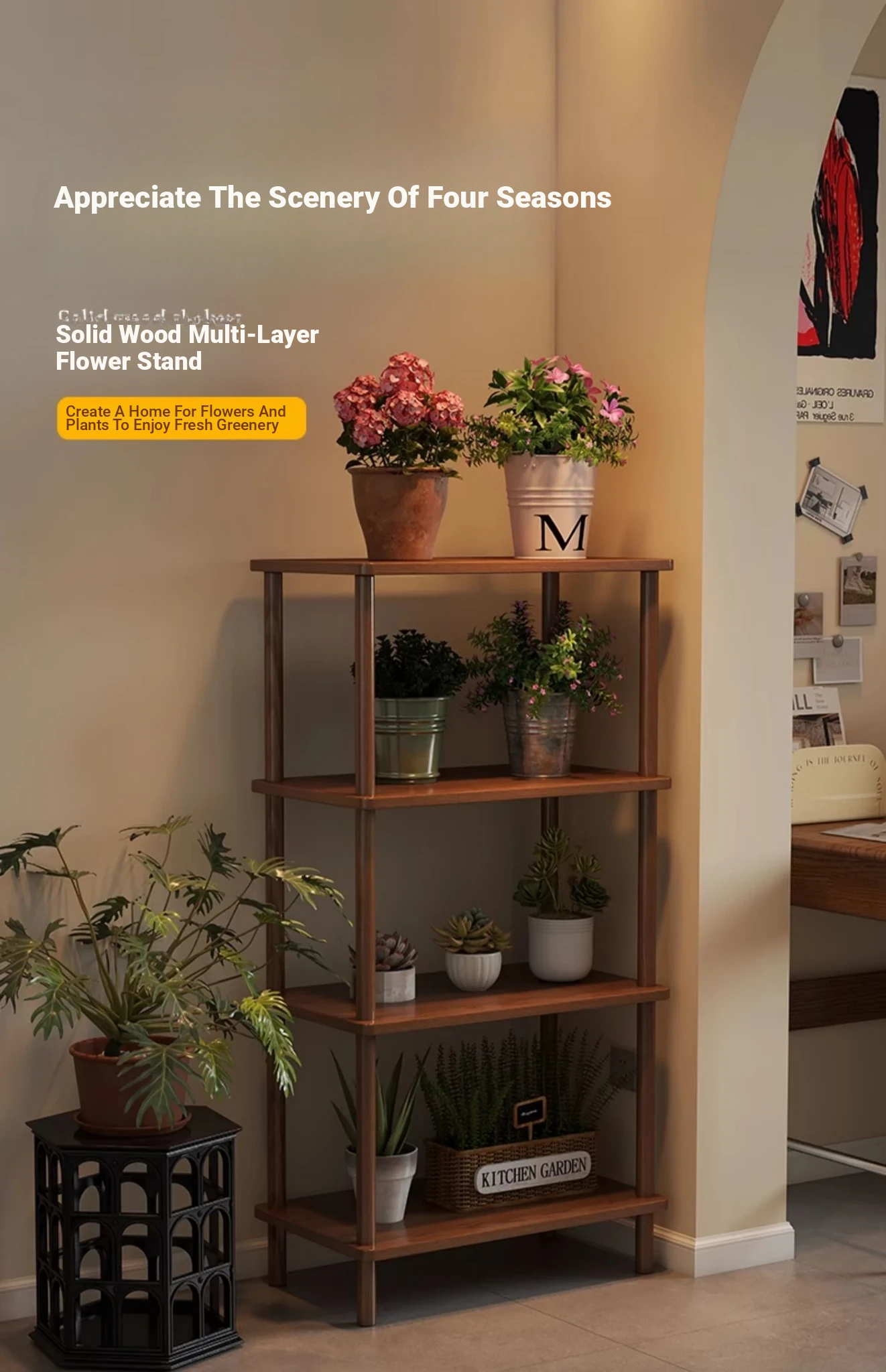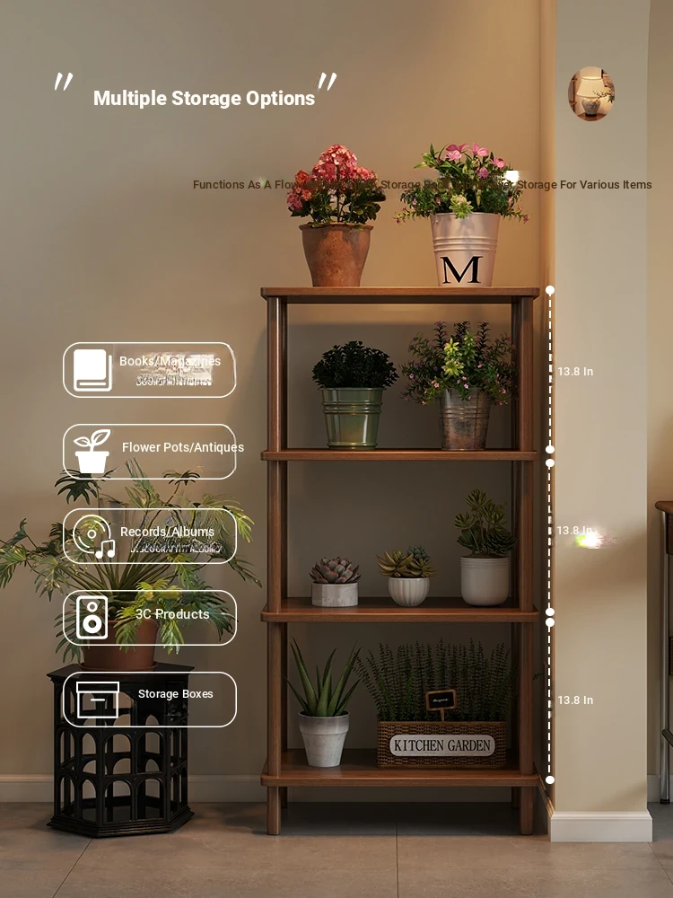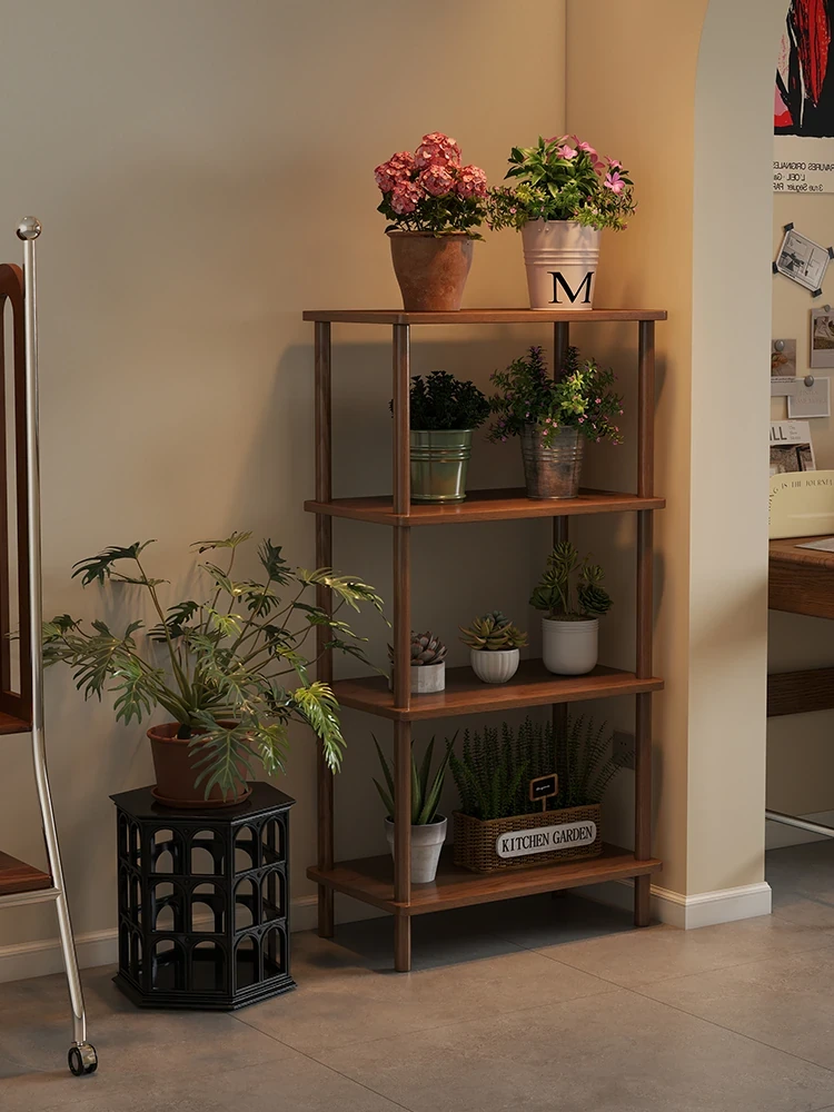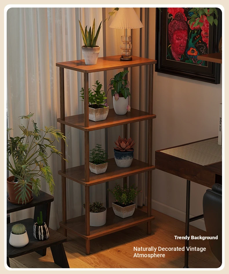 Elegant Chinese Solid Wood Multi-Layer Flower Rack - Minimalist Balcony Plant Stand for Potted Greenery, Versatile Storage Solution for Living Room and Beyond!