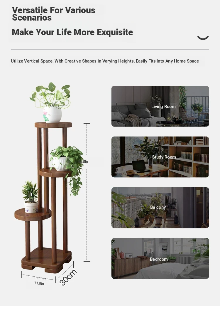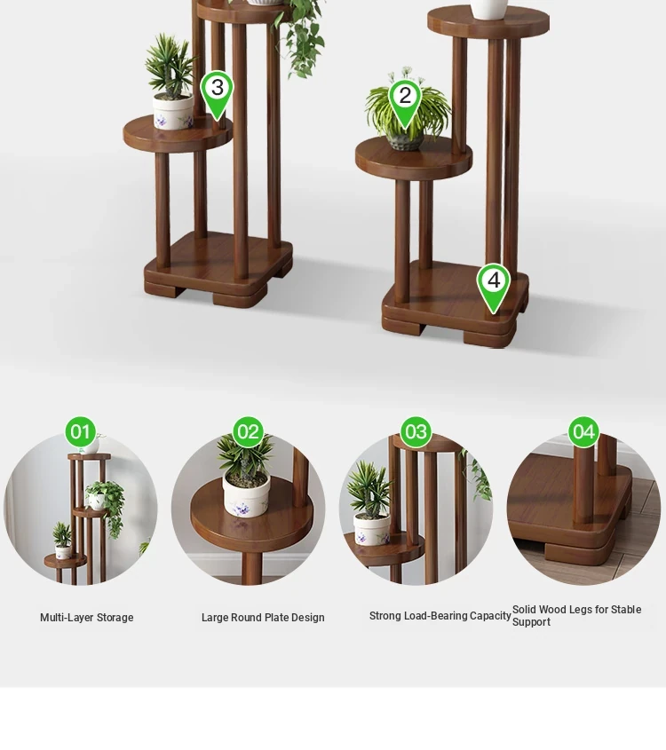 Elegant Solid Wood Plant Stand - Multi-Layered Display Rack for Living Room and Balcony, Perfect for Succulents and Potted Plants - Versatile Home Décor Solution