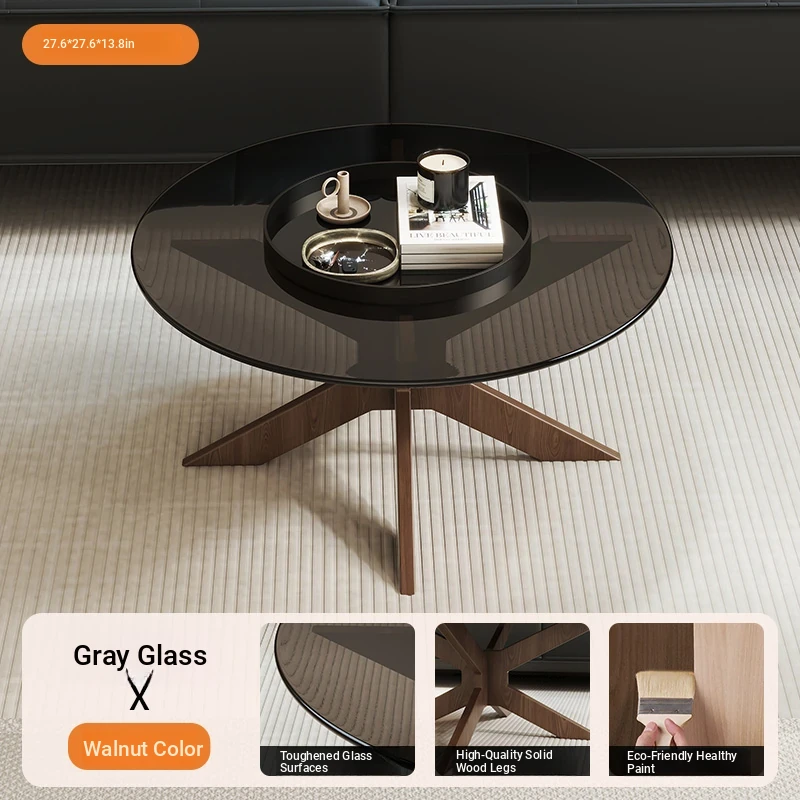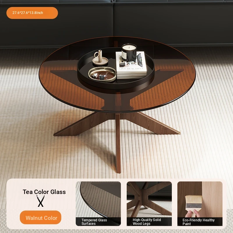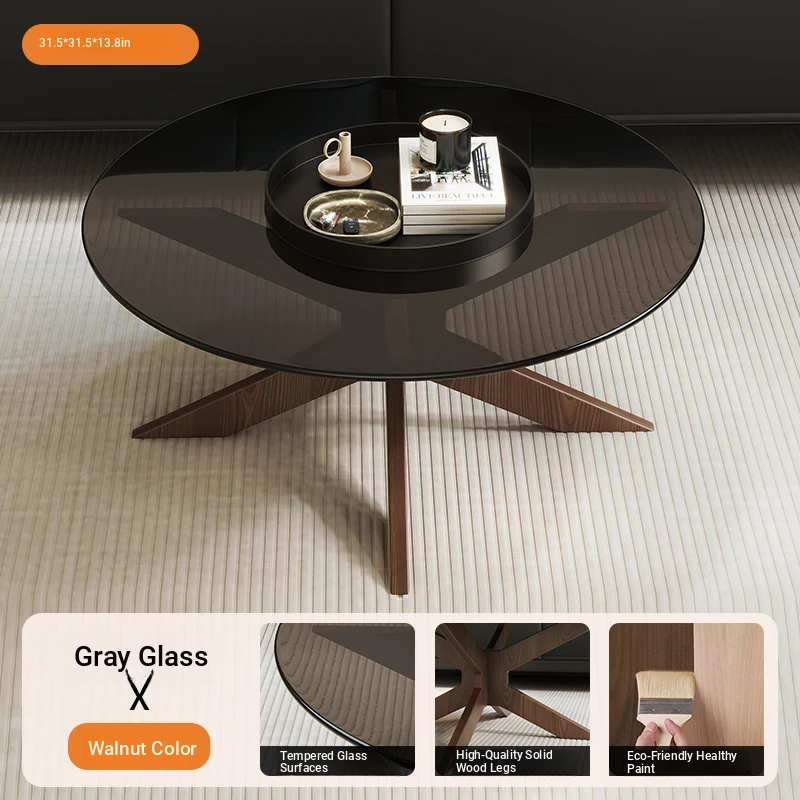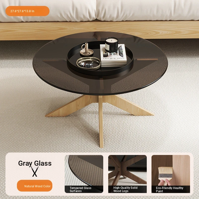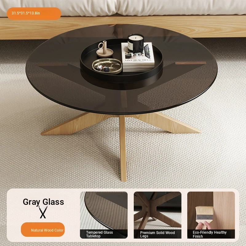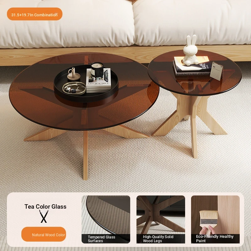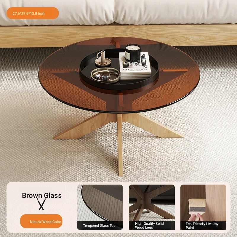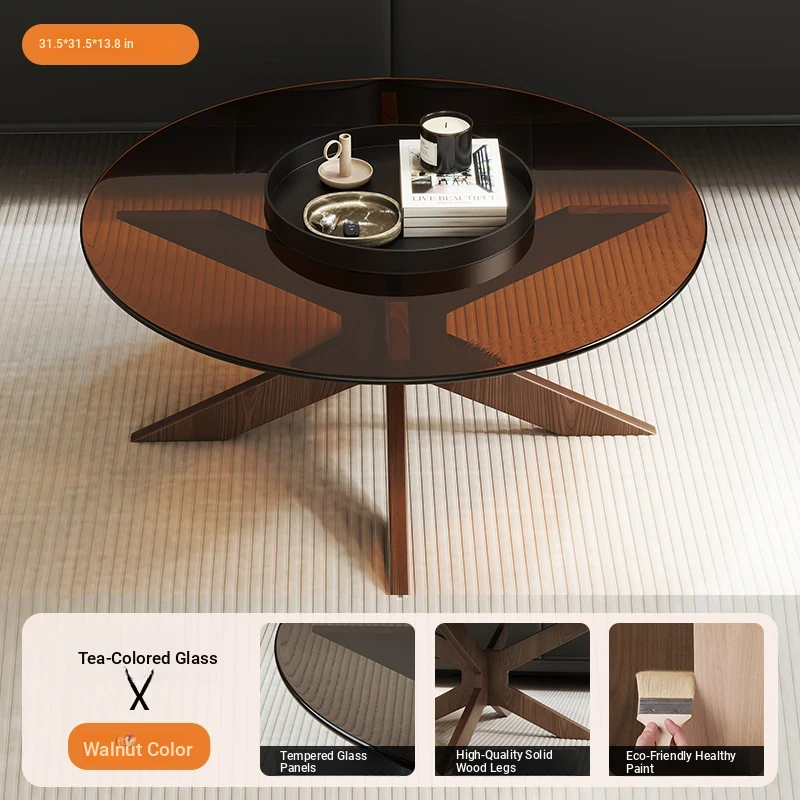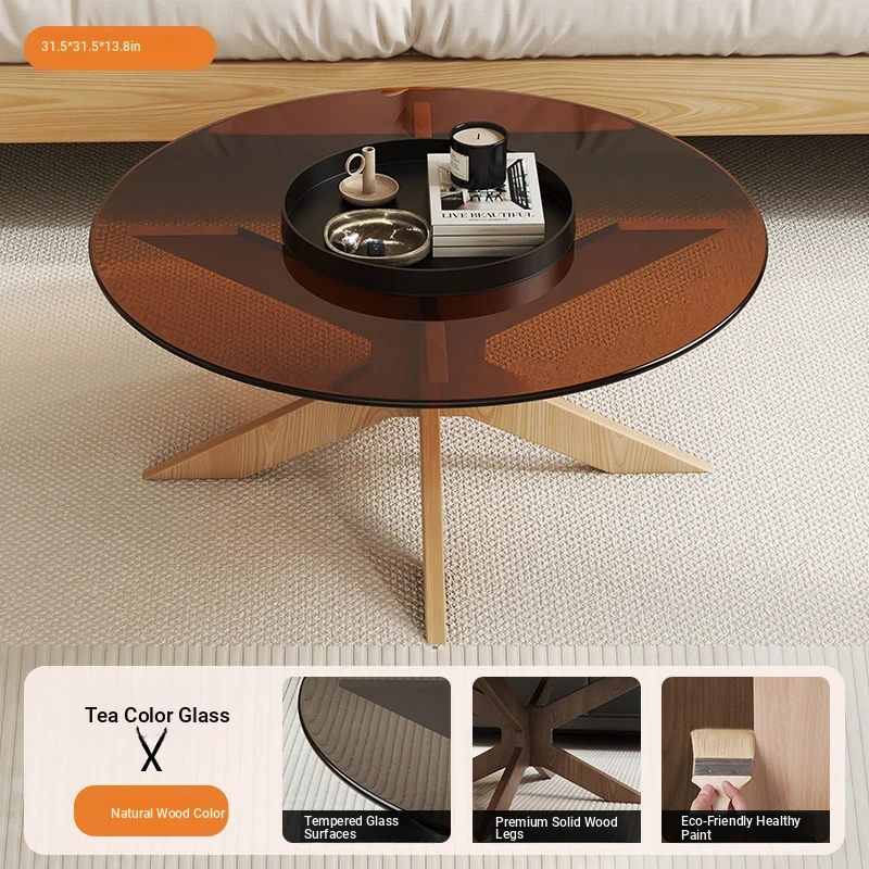 "Modern Round Solid Wood Coffee Table - Minimalist Luxury Living Room Sofa End Table, Chic French Style Creative Design"