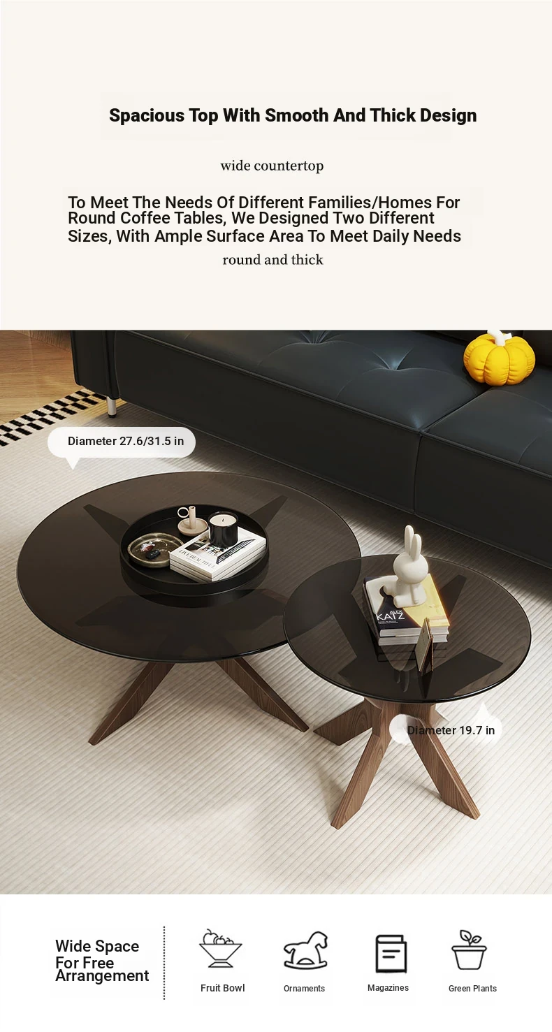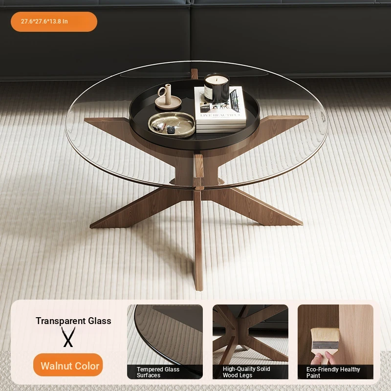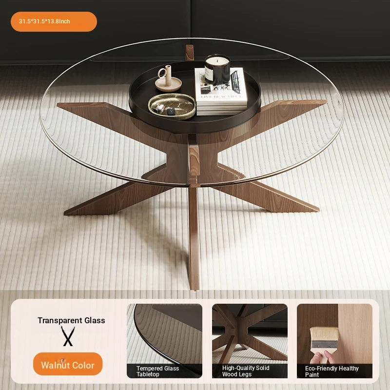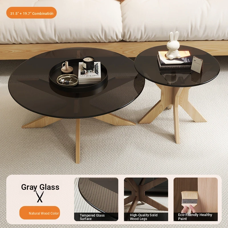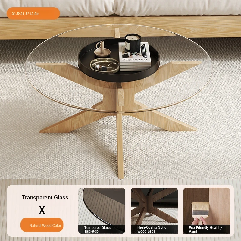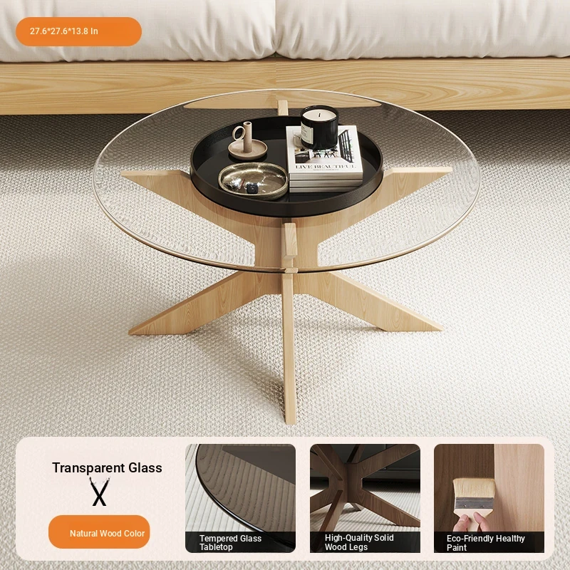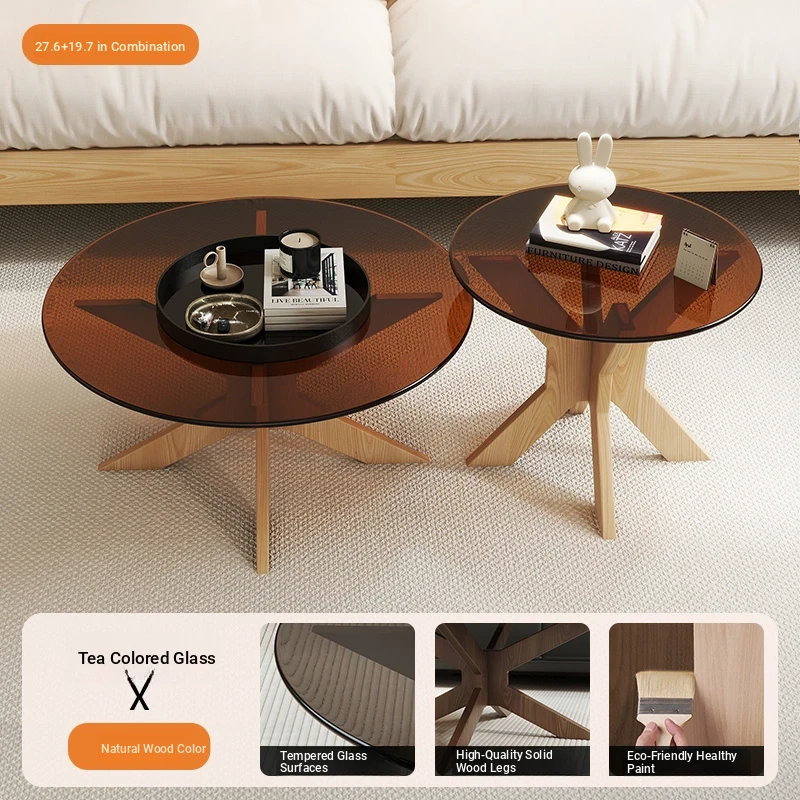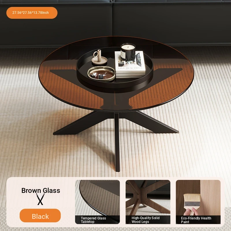 "Modern Round Solid Wood Coffee Table - Minimalist Luxury Living Room Sofa End Table, Chic French Style Creative Design"