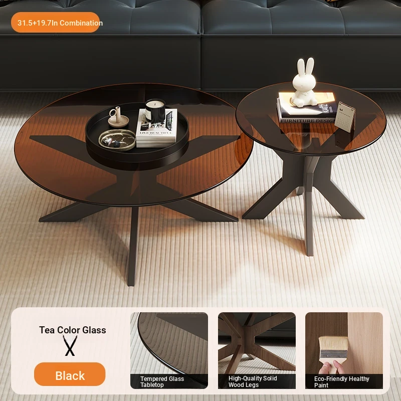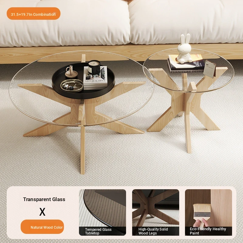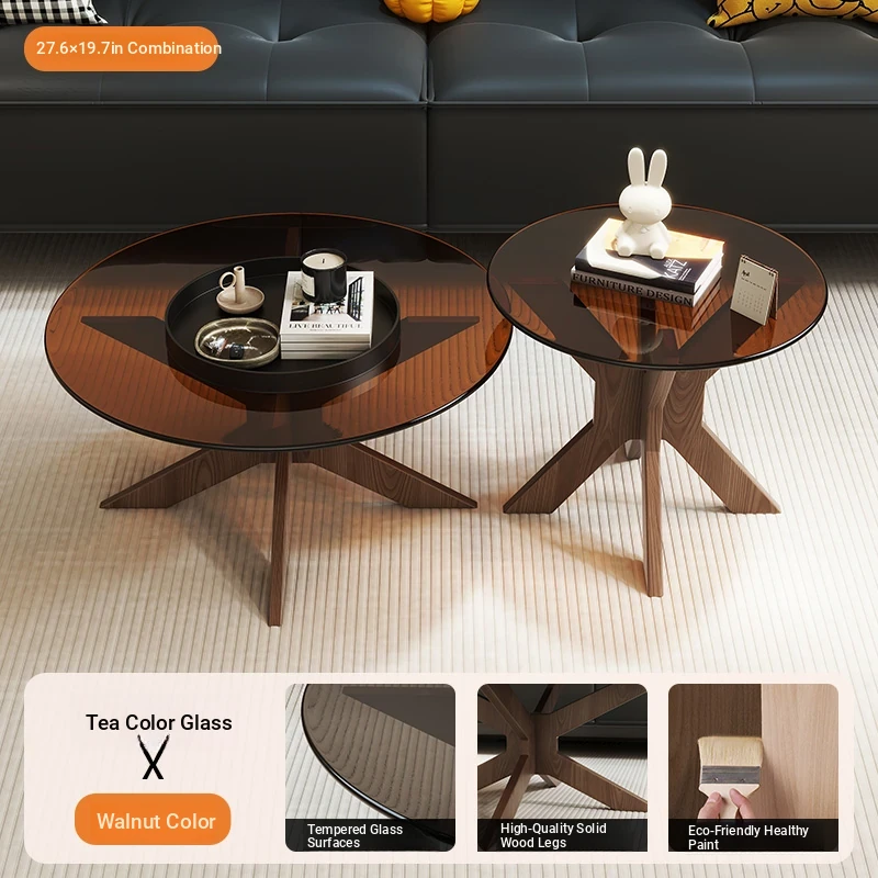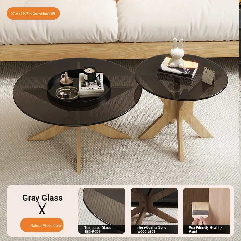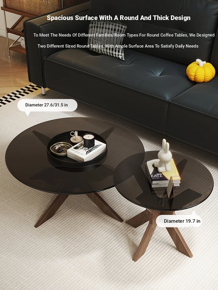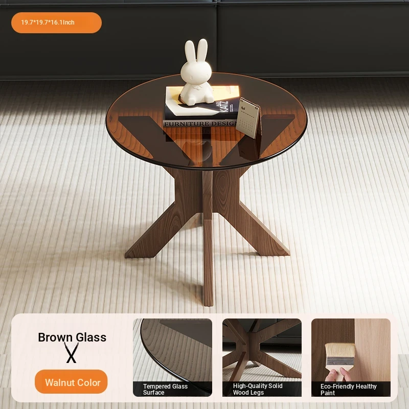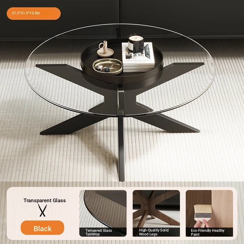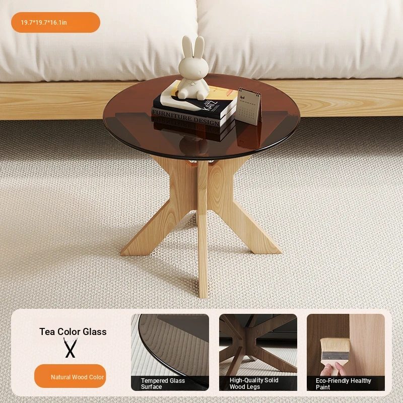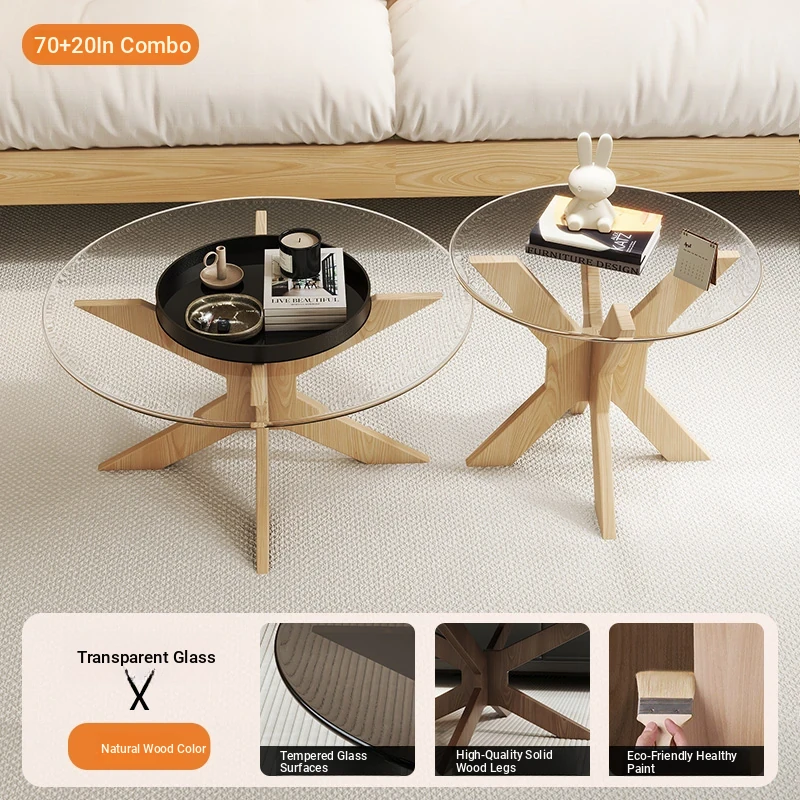 "Modern Round Solid Wood Coffee Table - Minimalist Luxury Living Room Sofa End Table, Chic French Style Creative Design"