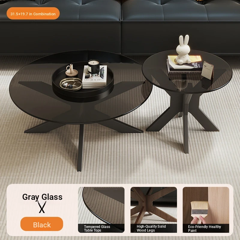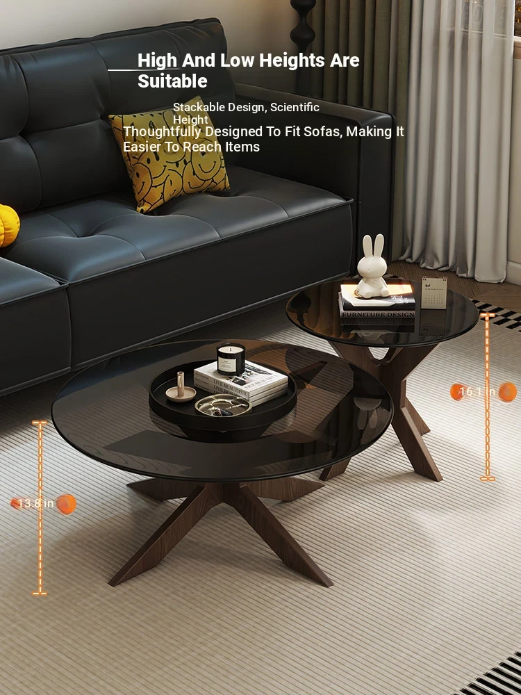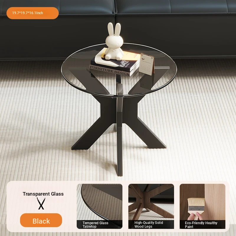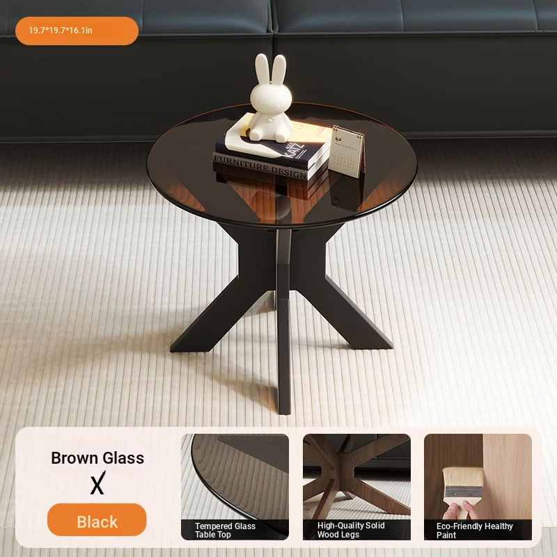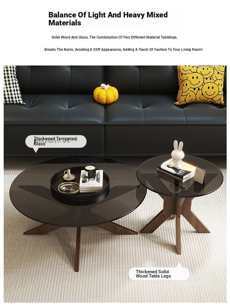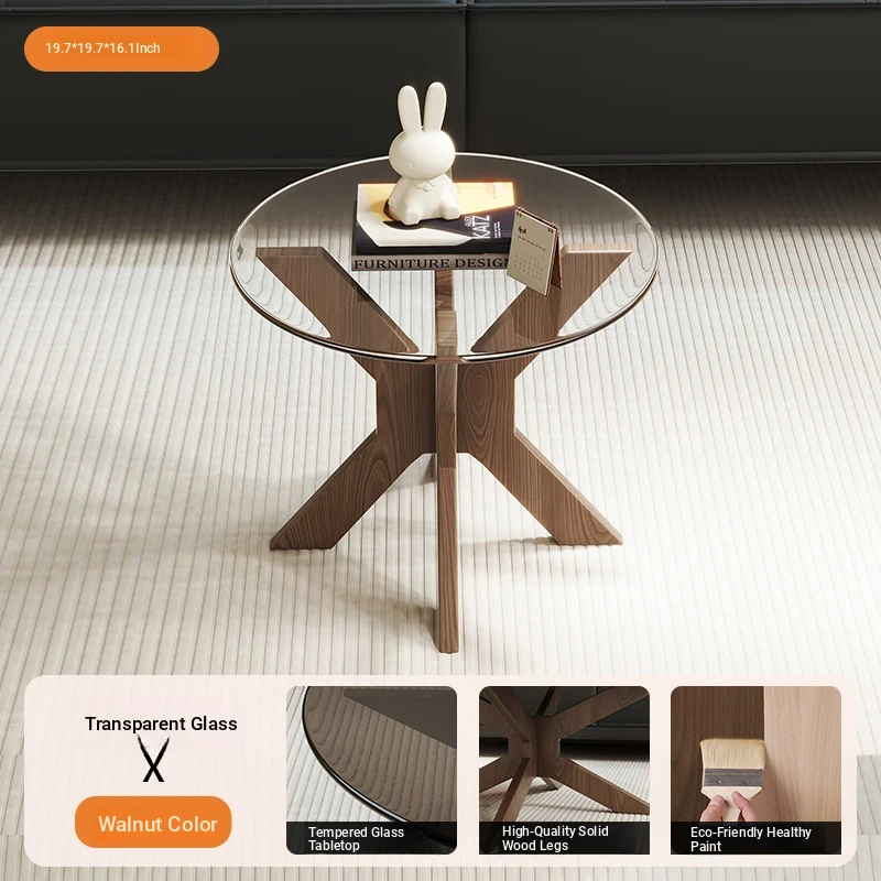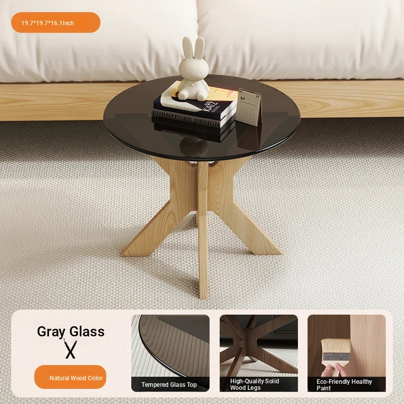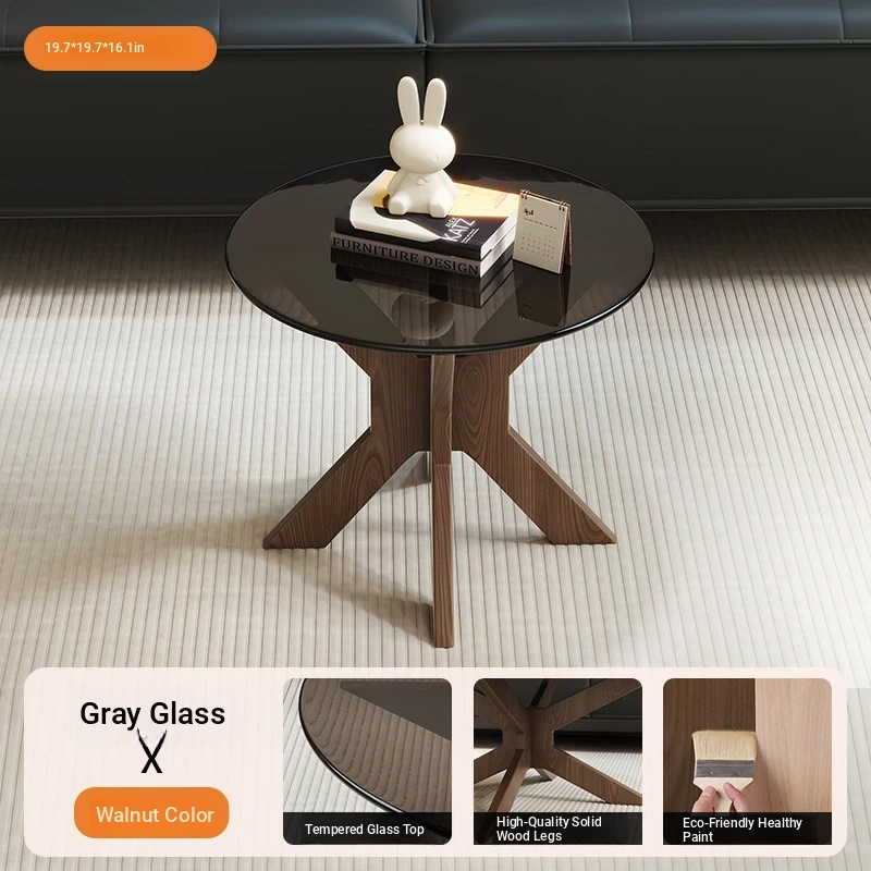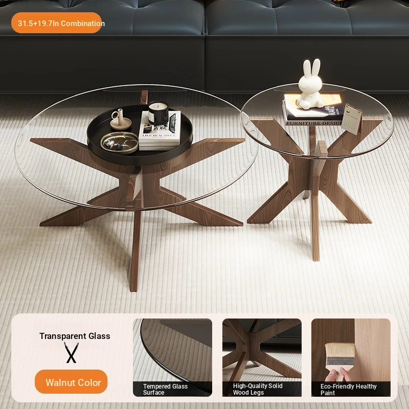 "Modern Round Solid Wood Coffee Table - Minimalist Luxury Living Room Sofa End Table, Chic French Style Creative Design"