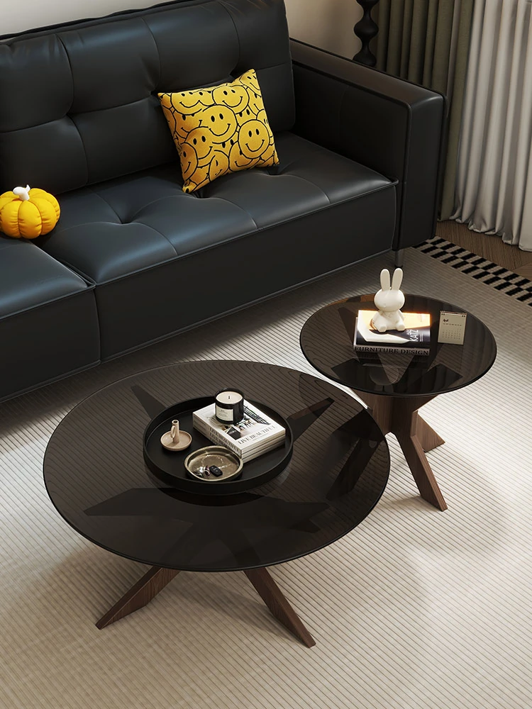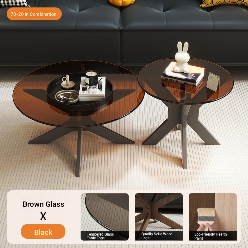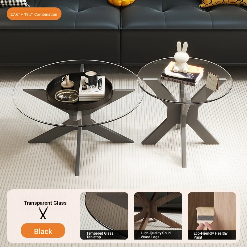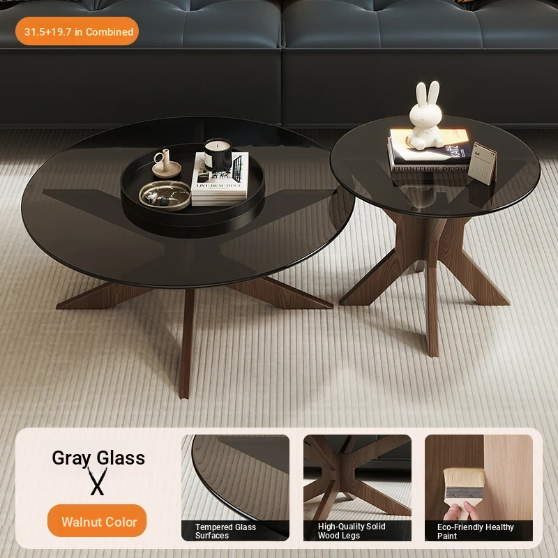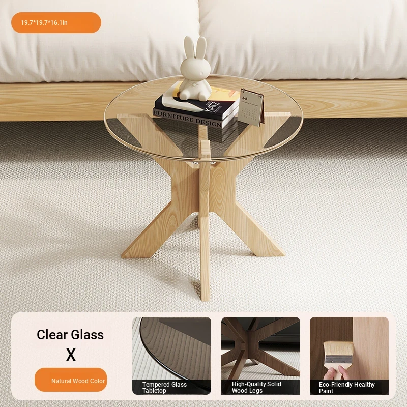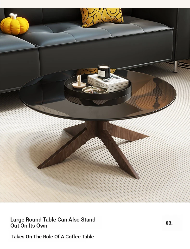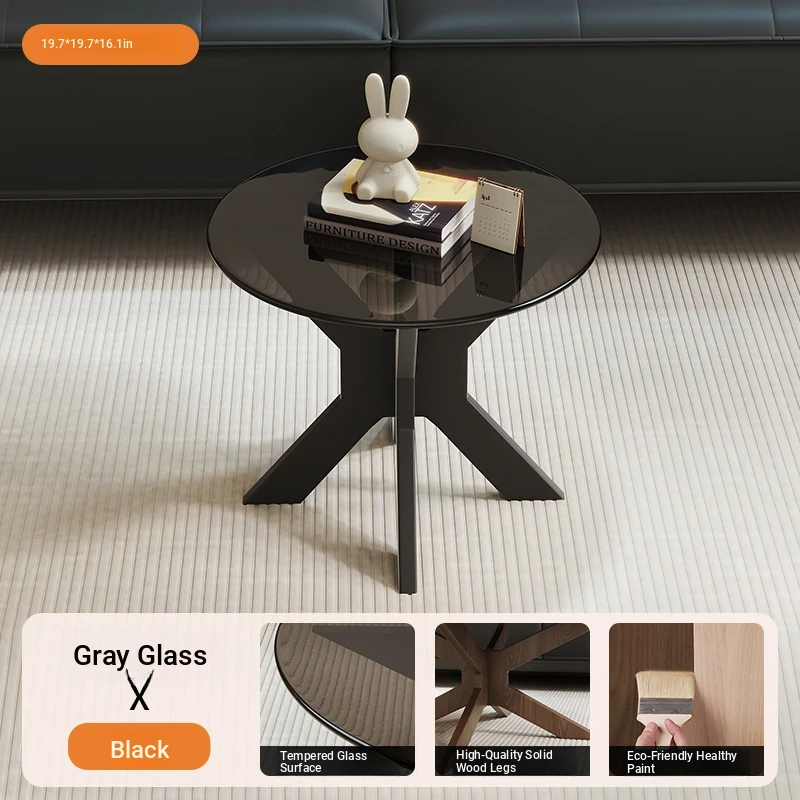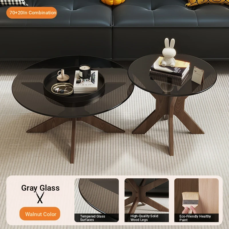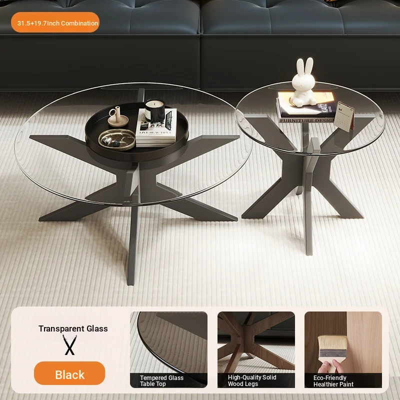 "Modern Round Solid Wood Coffee Table - Minimalist Luxury Living Room Sofa End Table, Chic French Style Creative Design"