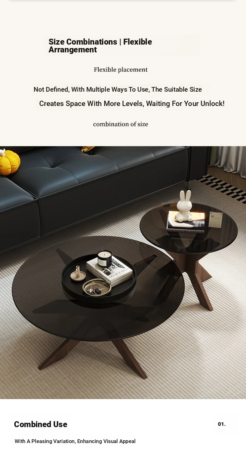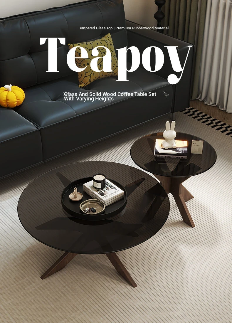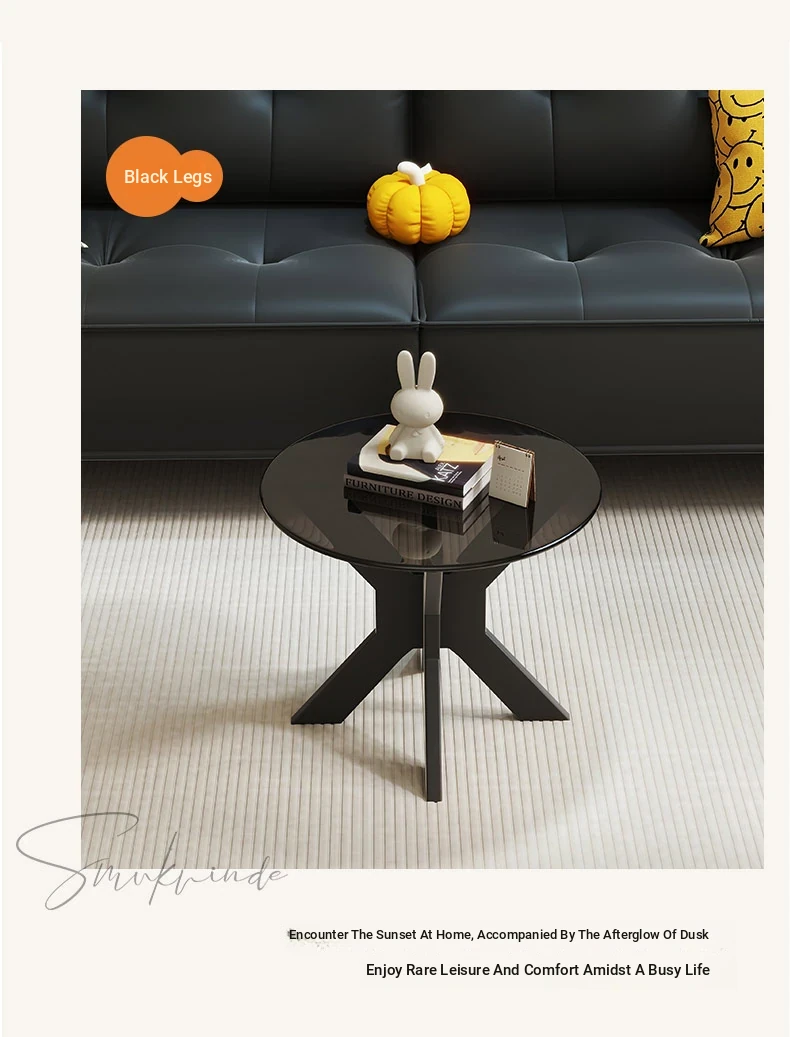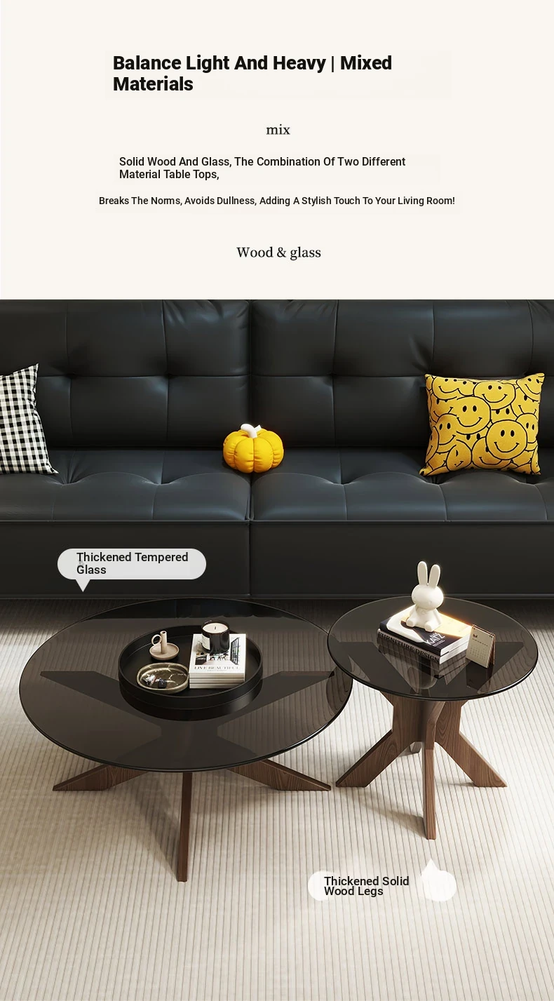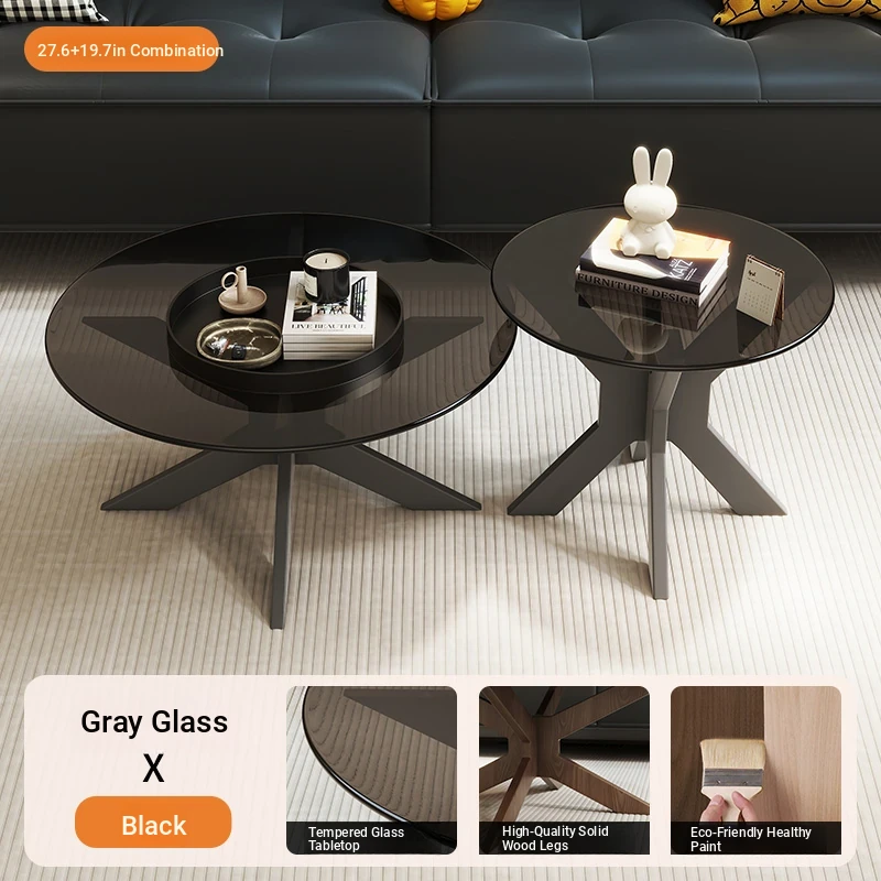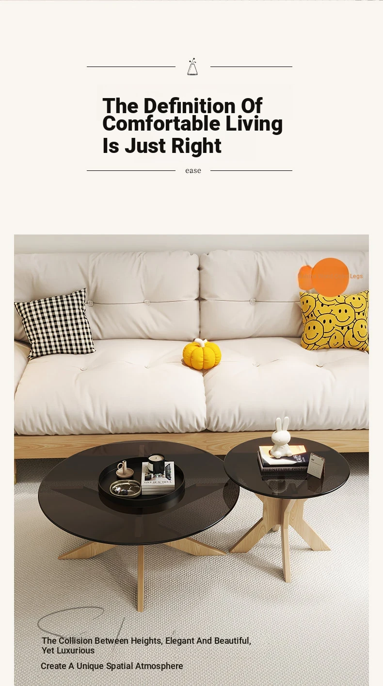 "Modern Round Solid Wood Coffee Table - Minimalist Luxury Living Room Sofa End Table, Chic French Style Creative Design"