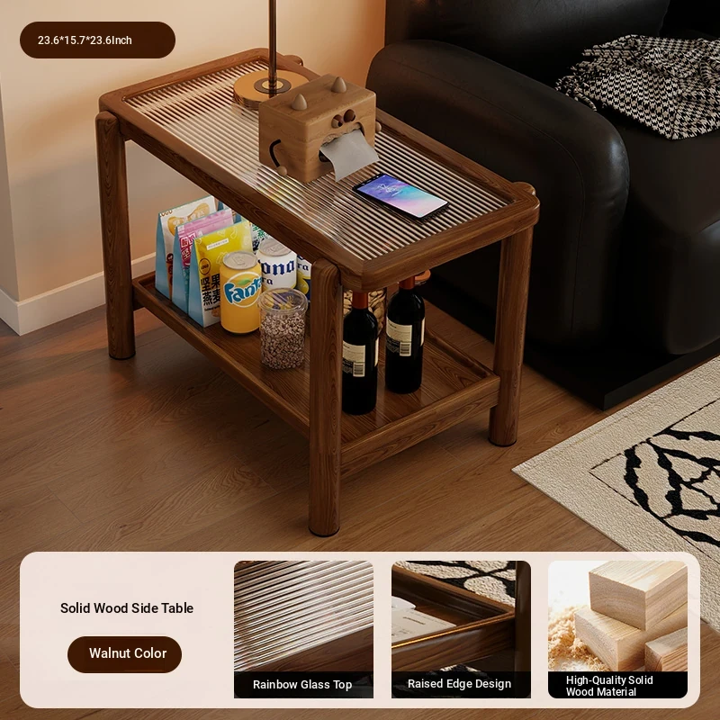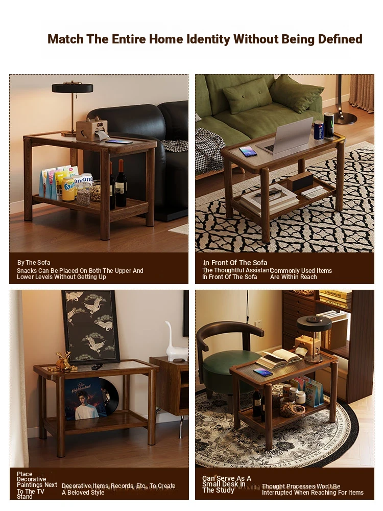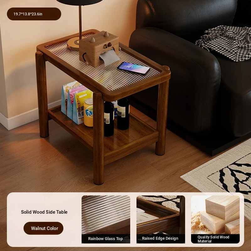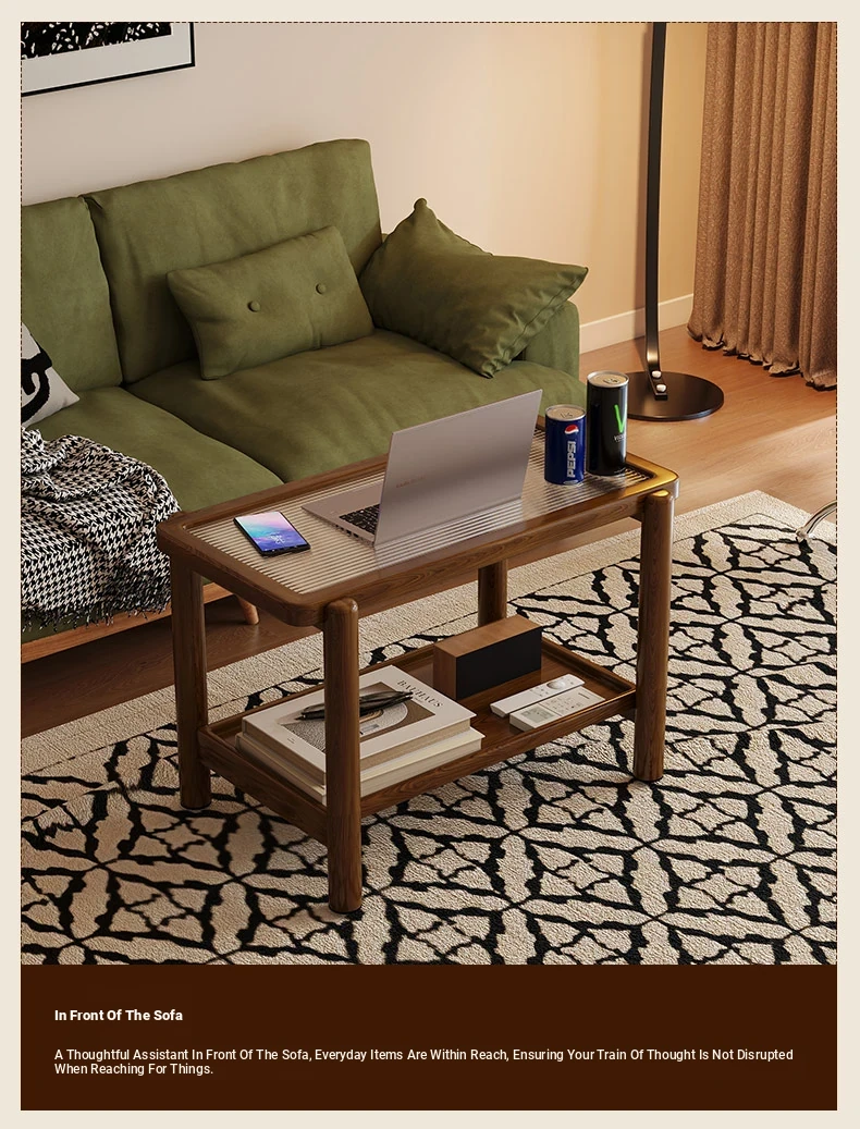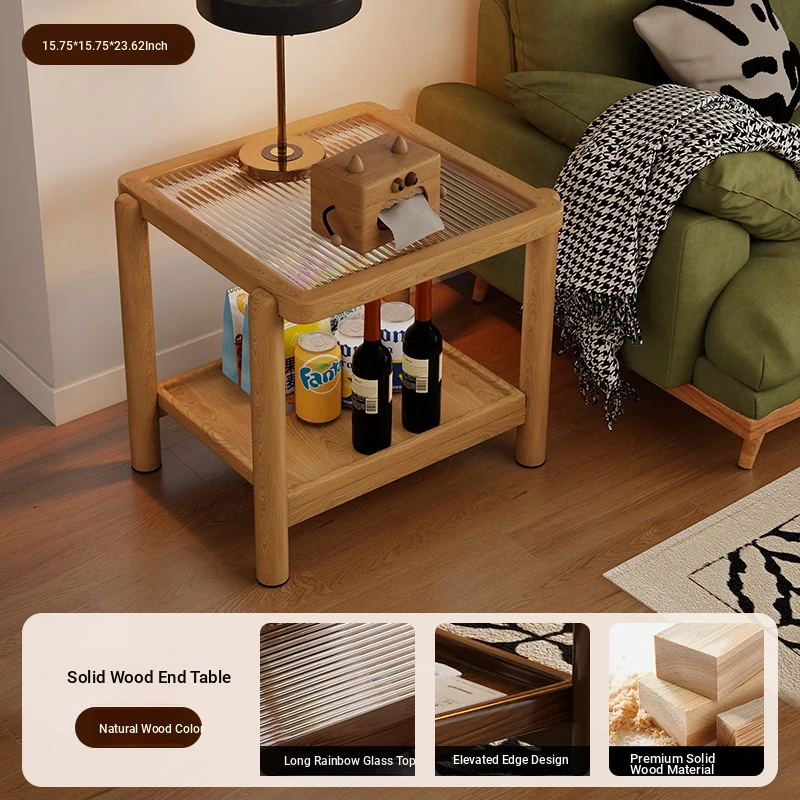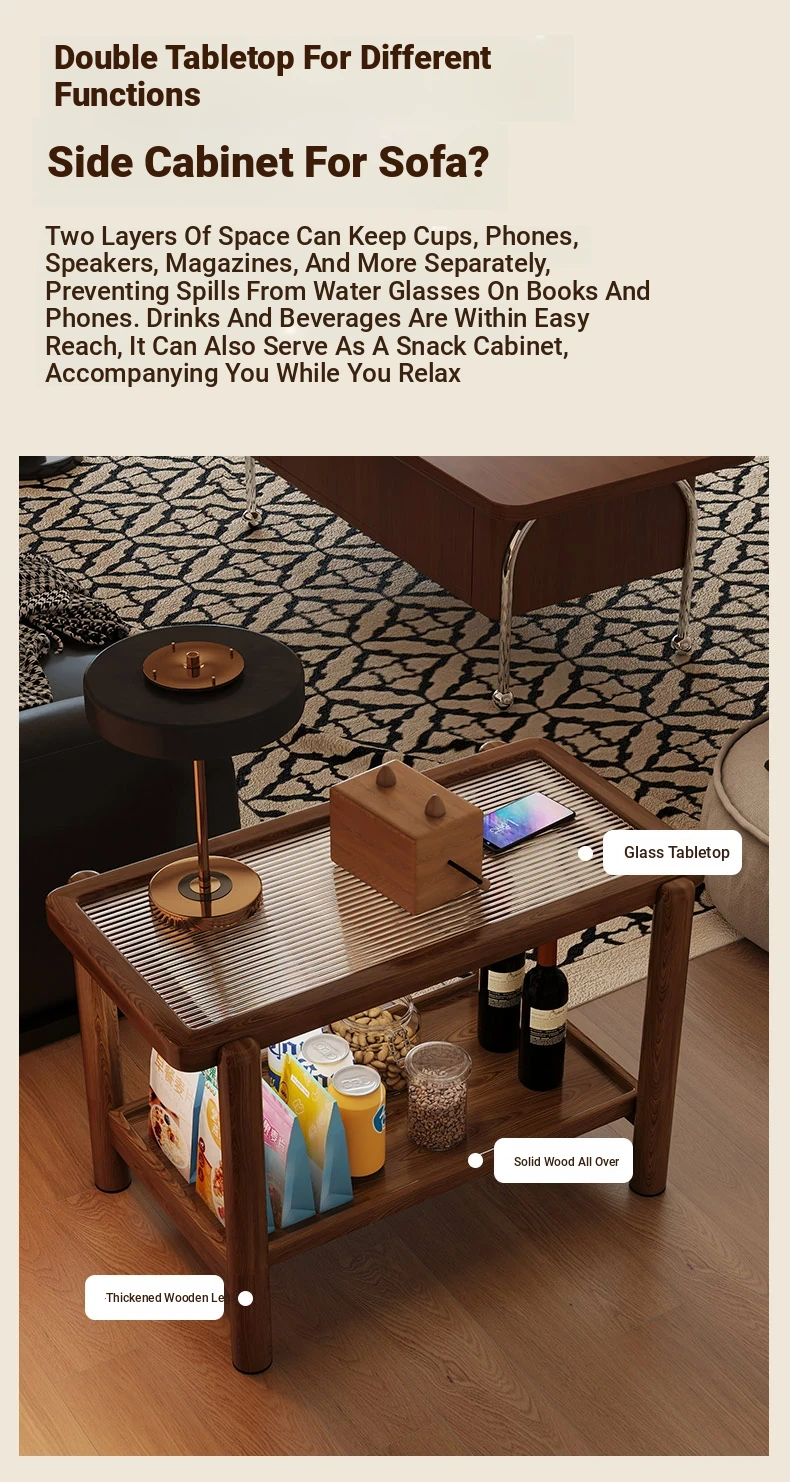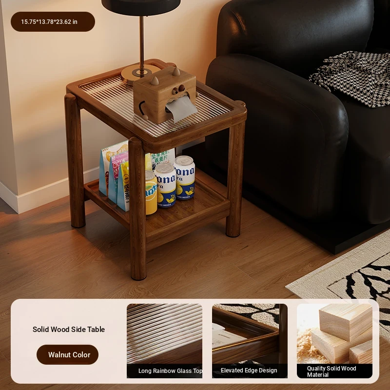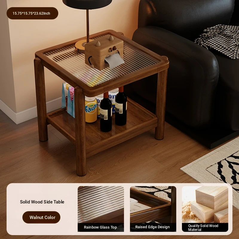 Modern Solid Wood Coffee Table with Double Layer Glass Shelving - Perfect for Small Living Rooms, Features Stylish Square Design for Versatile Use as Side Table or Tea Table