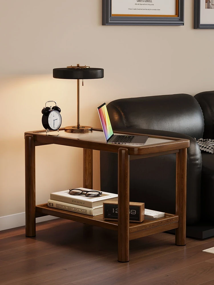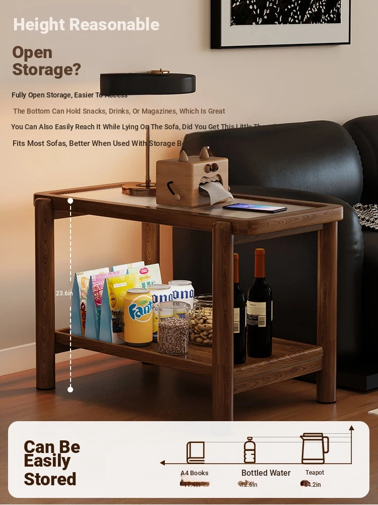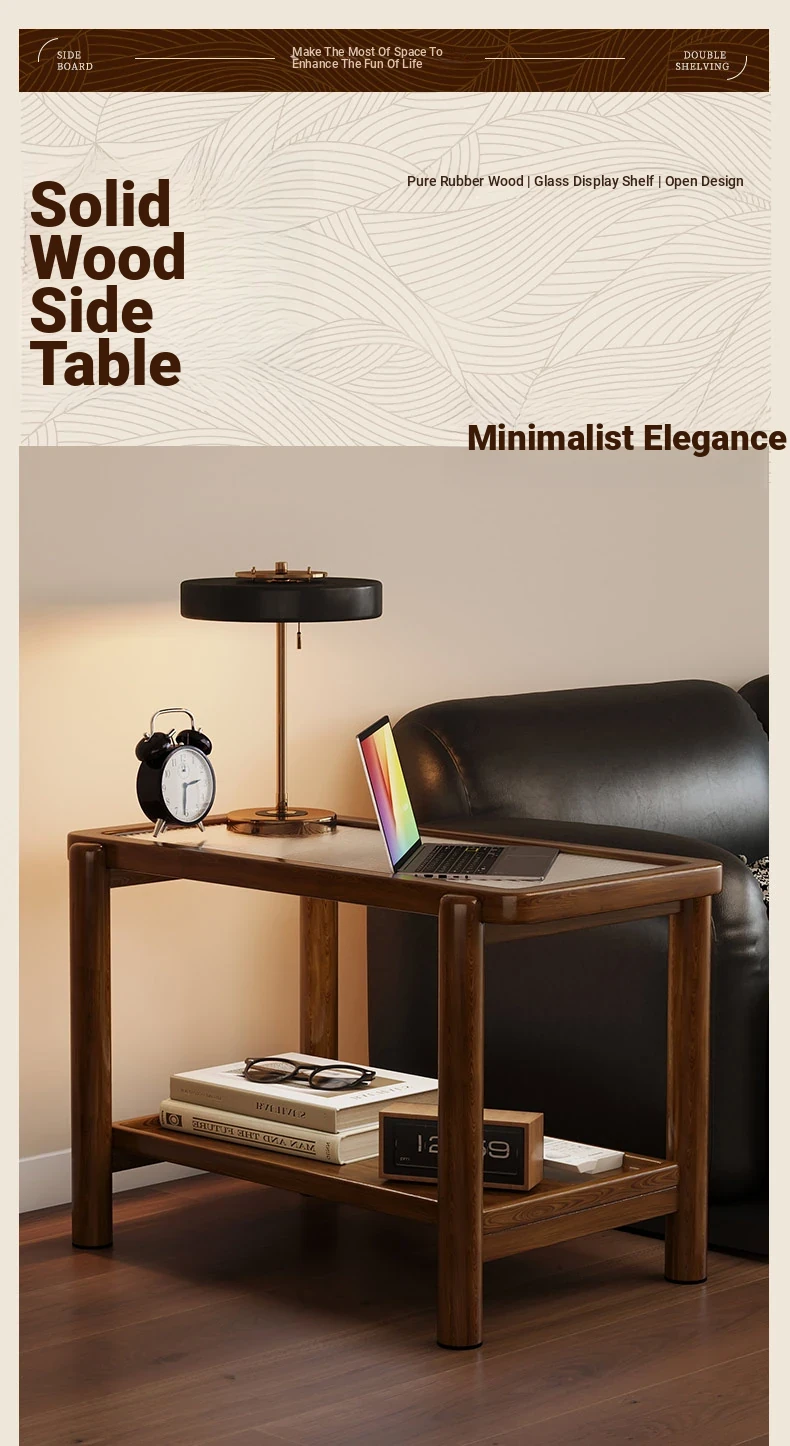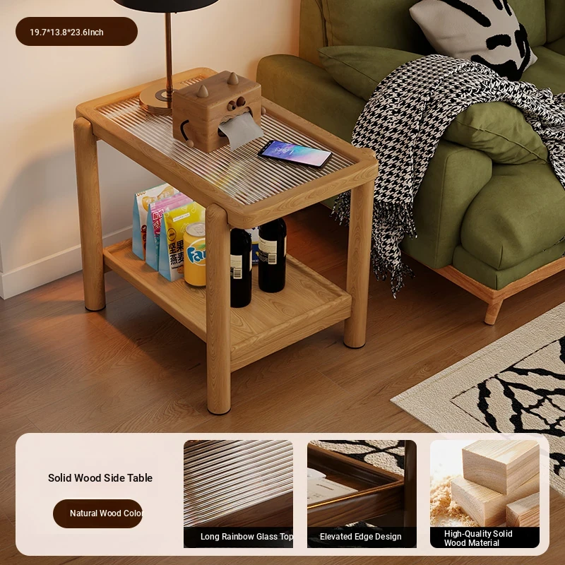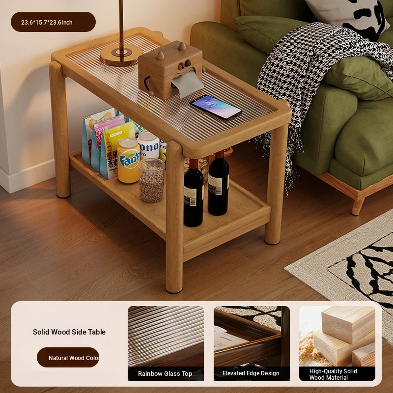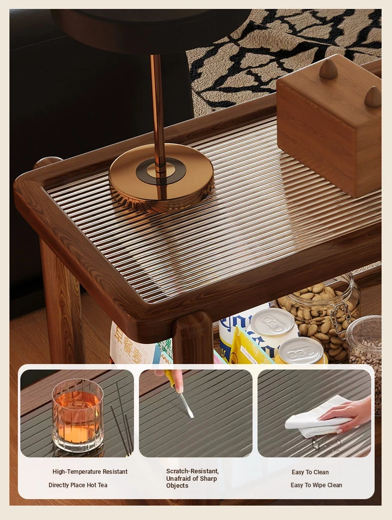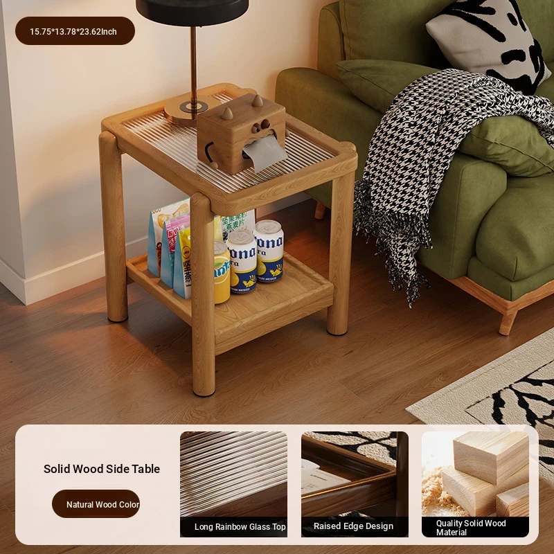 Modern Solid Wood Coffee Table with Double Layer Glass Shelving - Perfect for Small Living Rooms, Features Stylish Square Design for Versatile Use as Side Table or Tea Table