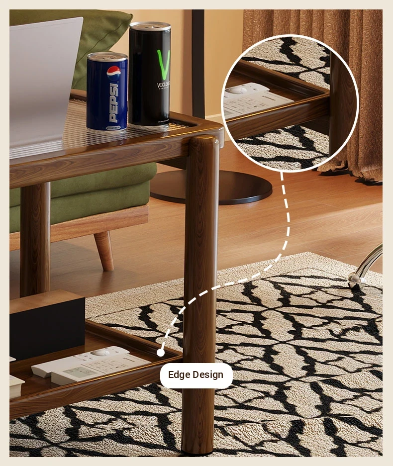 Glass finish I rubber solid wood★Walnut color 23.62in*15.75in*23.62in