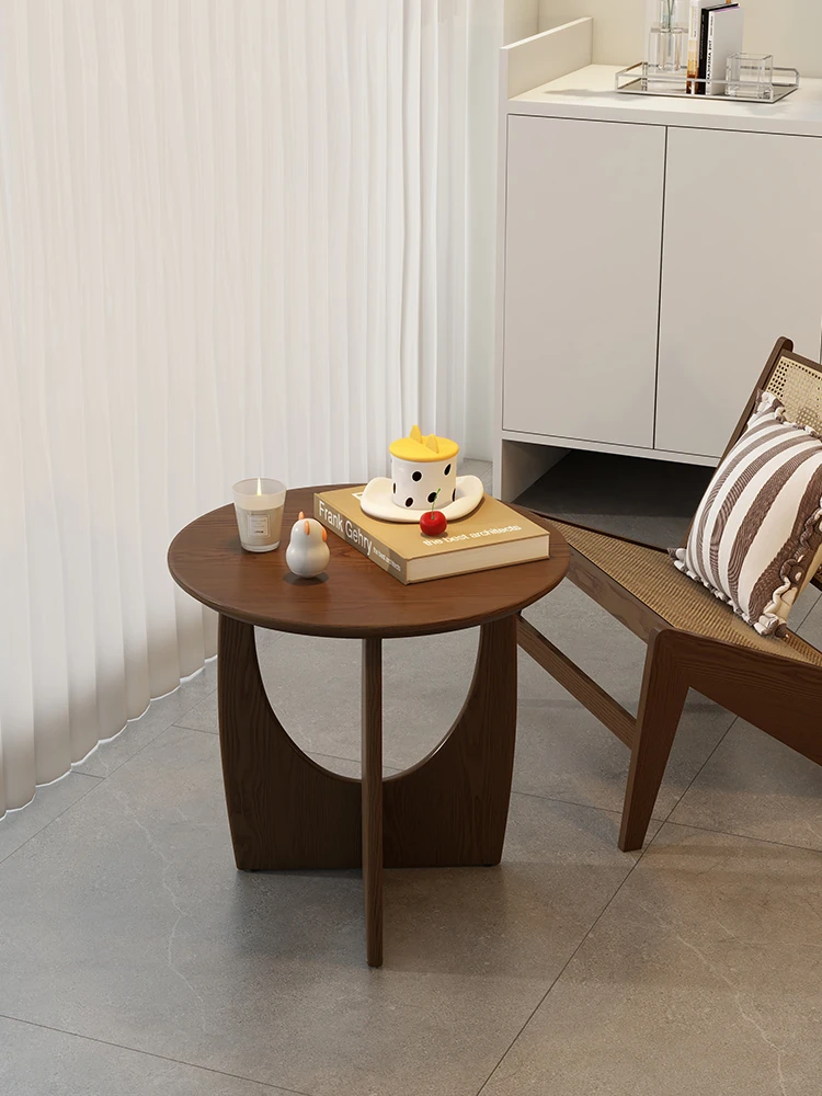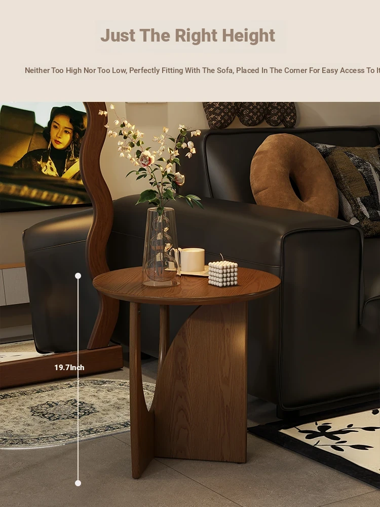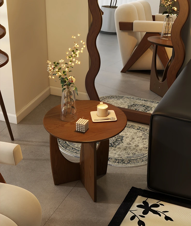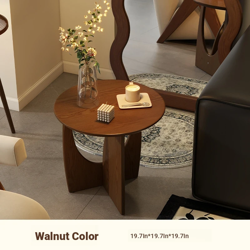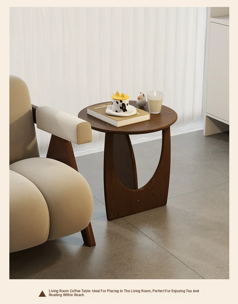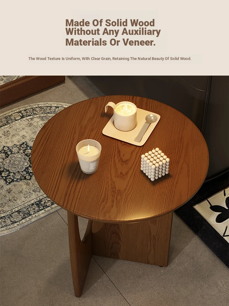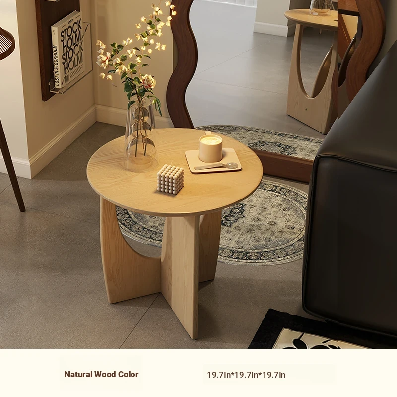 Nordic Solid Wood Round Side Table – Minimalist Small Coffee Table for Living Room, Perfect for Compact Spaces, Stylish Wooden Accent Table for Sofas