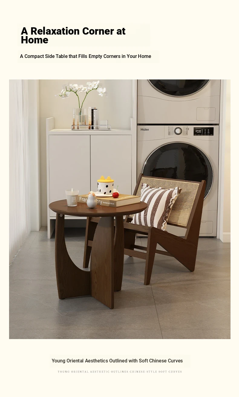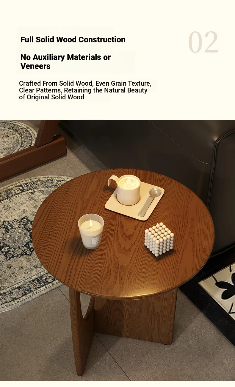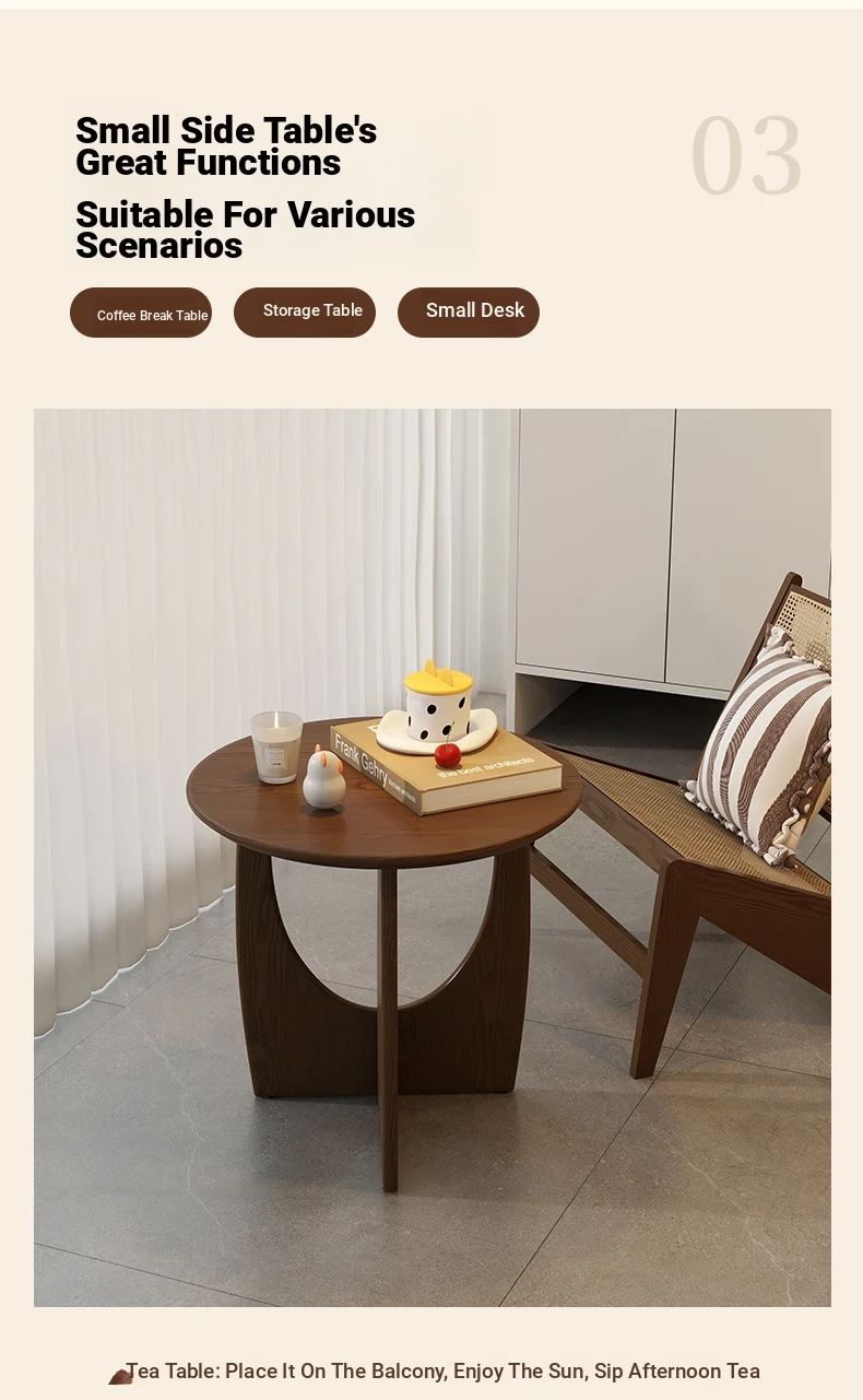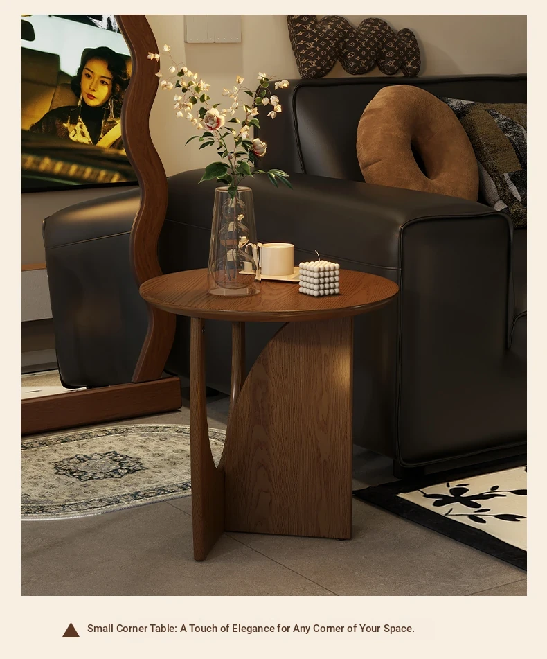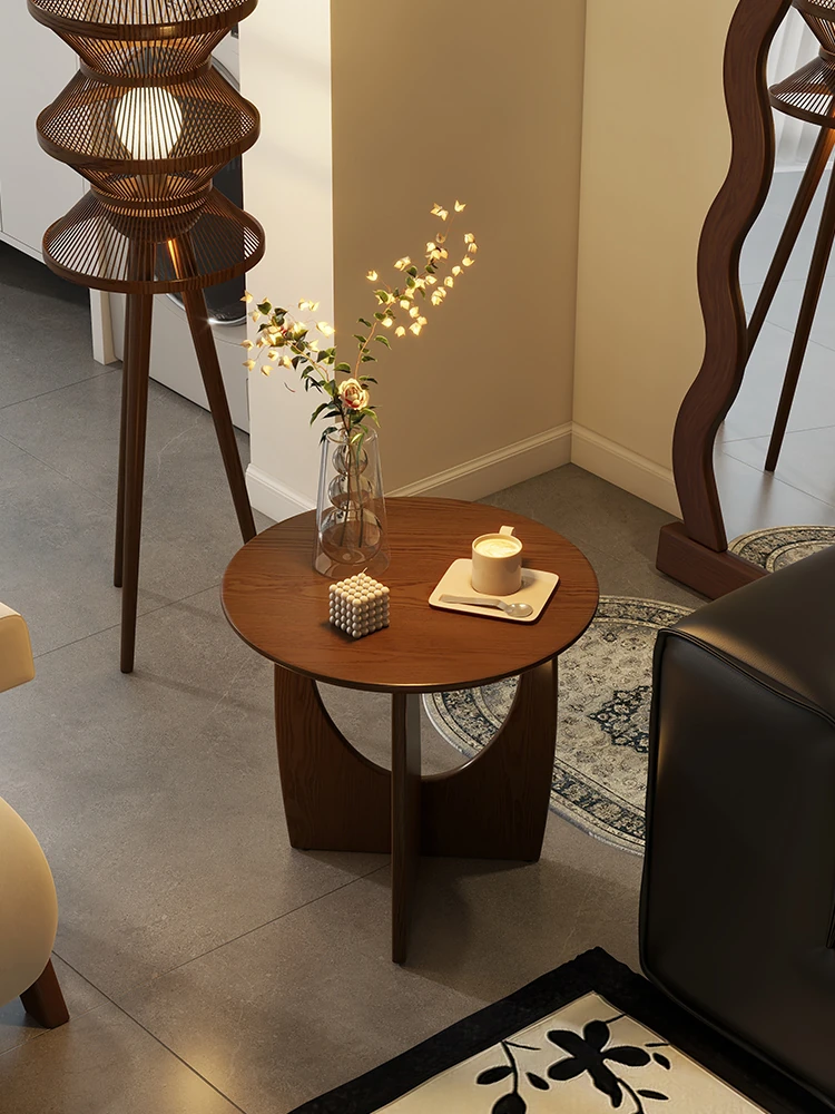 Nordic Solid Wood Round Side Table – Minimalist Small Coffee Table for Living Room, Perfect for Compact Spaces, Stylish Wooden Accent Table for Sofas
