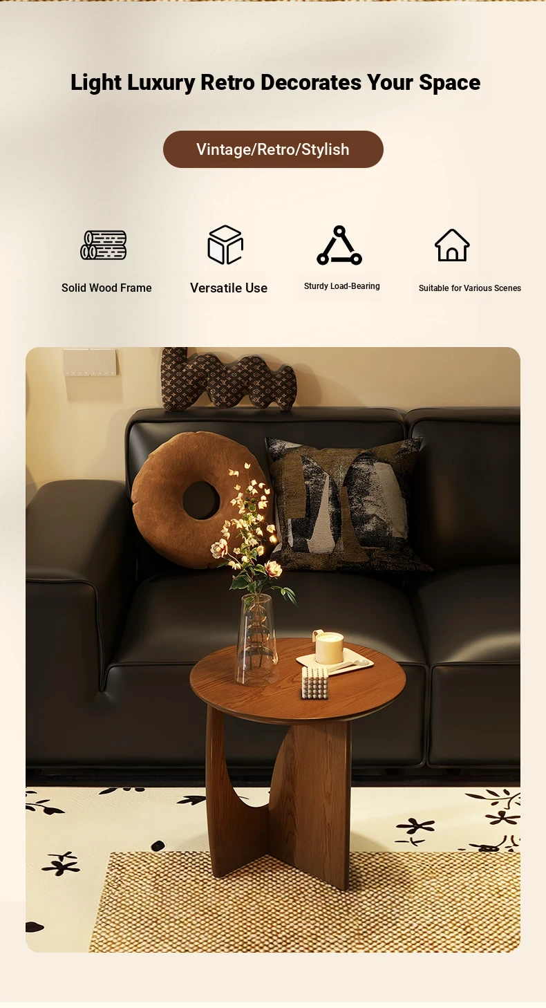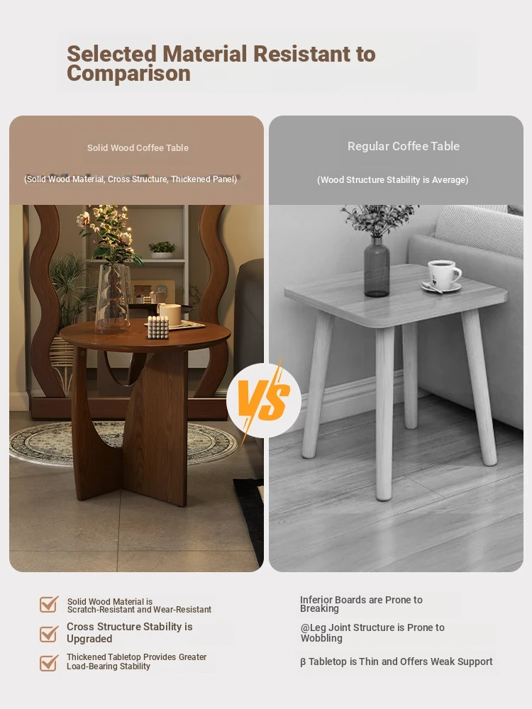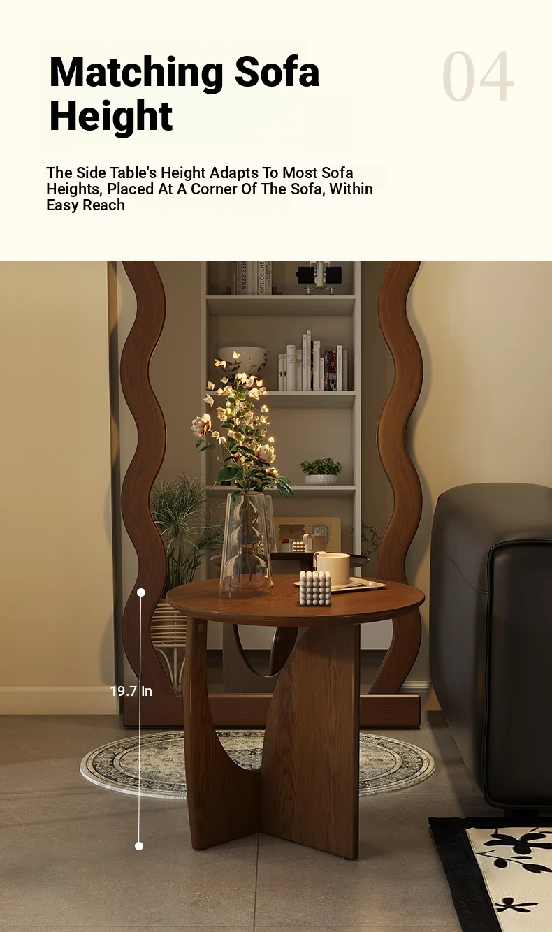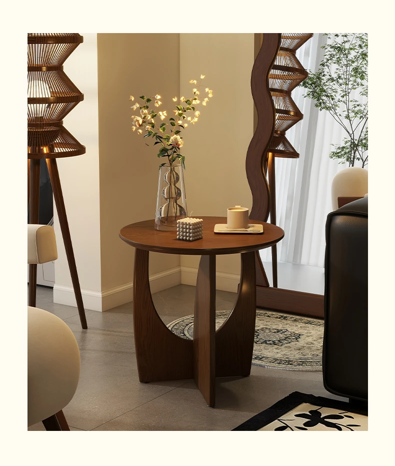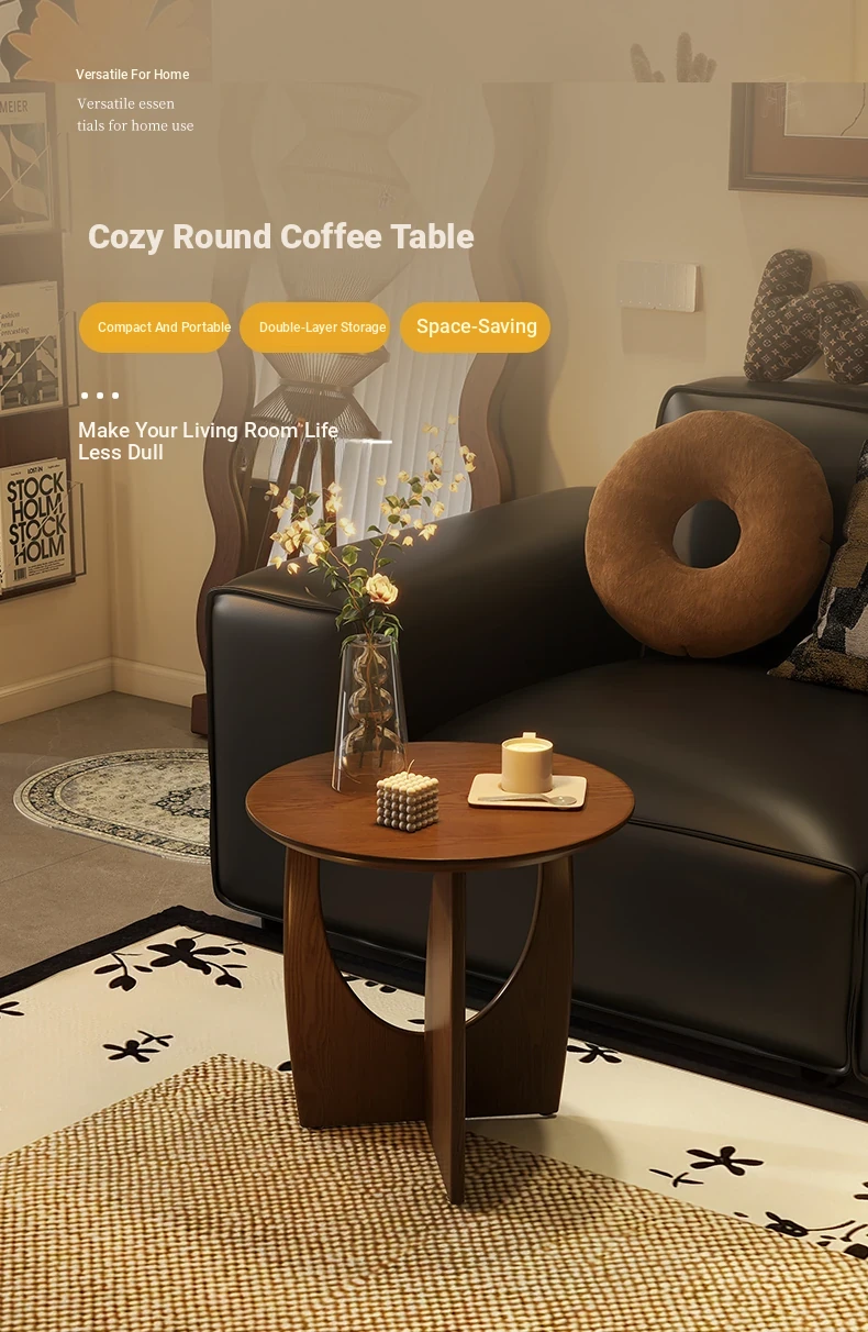 Nordic Solid Wood Round Side Table – Minimalist Small Coffee Table for Living Room, Perfect for Compact Spaces, Stylish Wooden Accent Table for Sofas