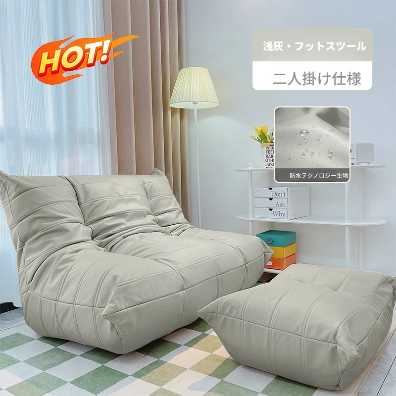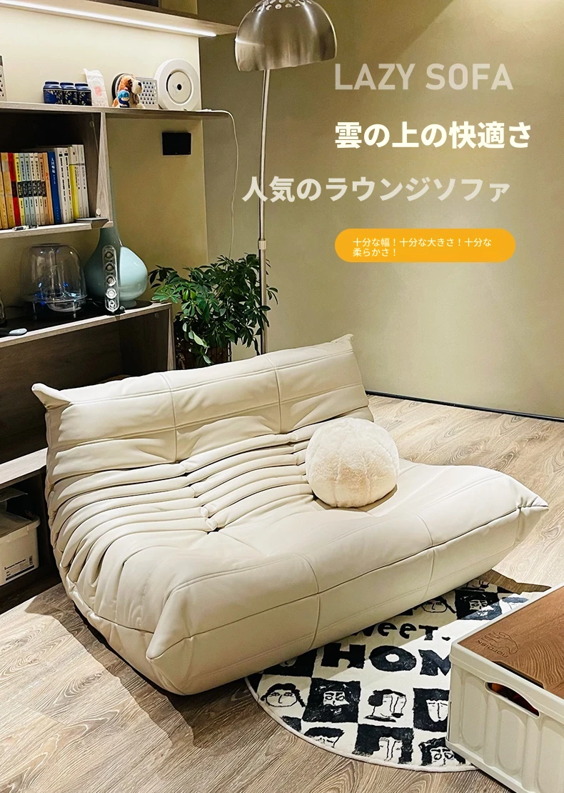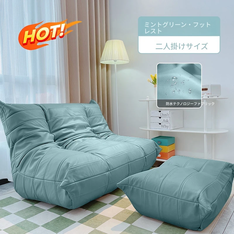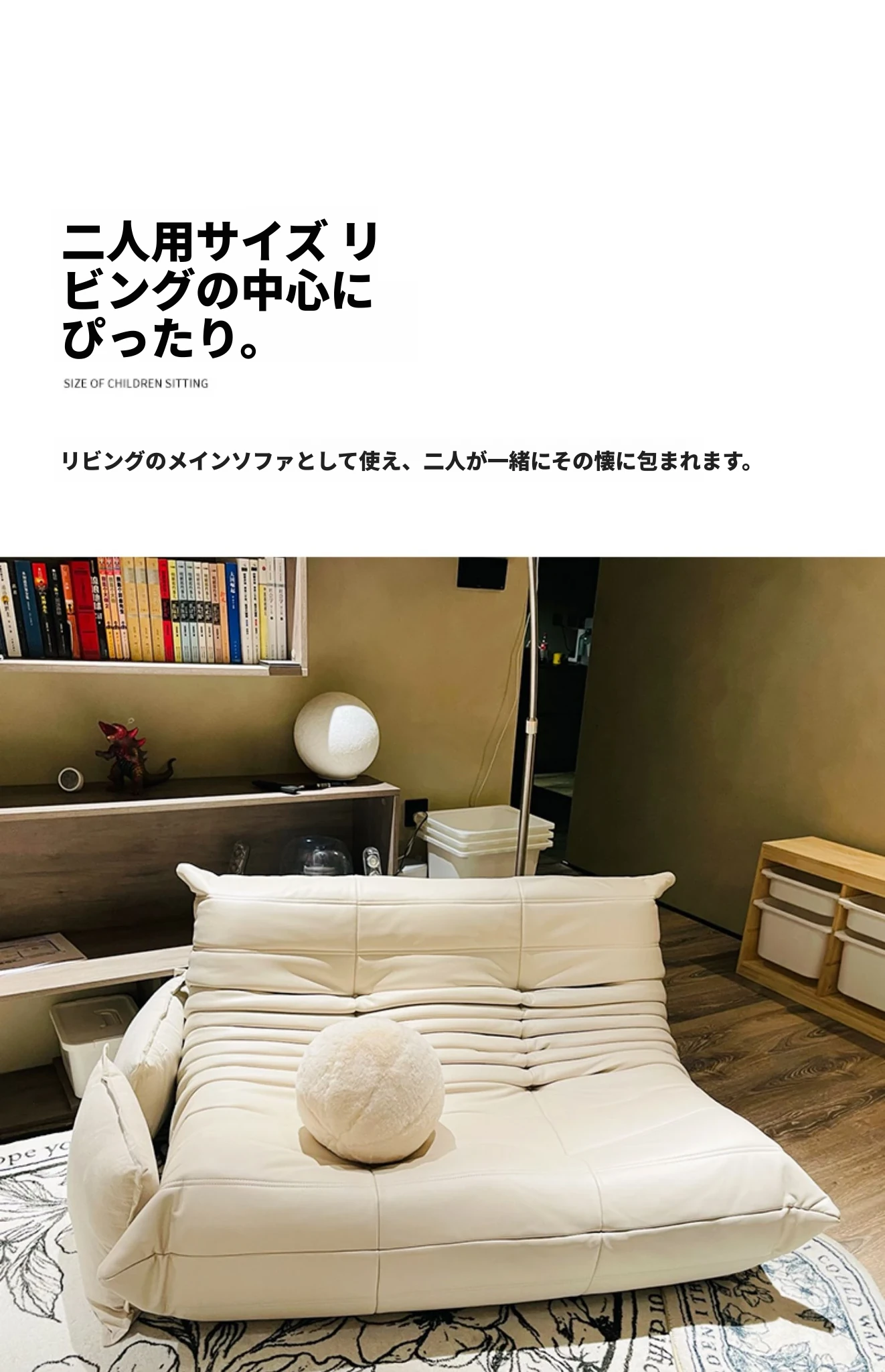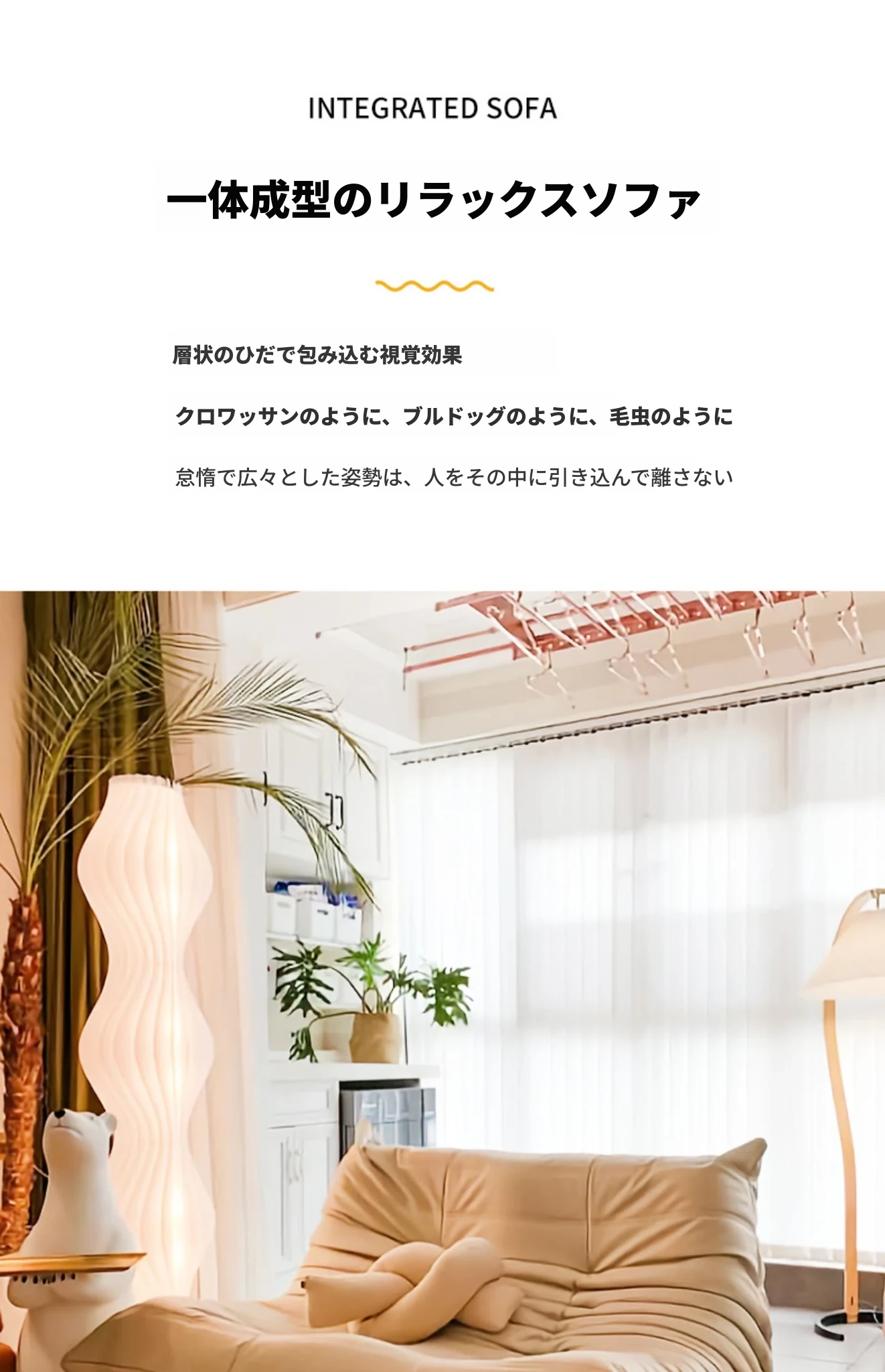 ふわふわカタツムリソファ|リビング・バルコニーに最適!寝そべり・お昼寝もできるインスタ風の可愛い二人掛けソファ|楽ちんタタミスタイルの豆袋小ソファでリラックス!