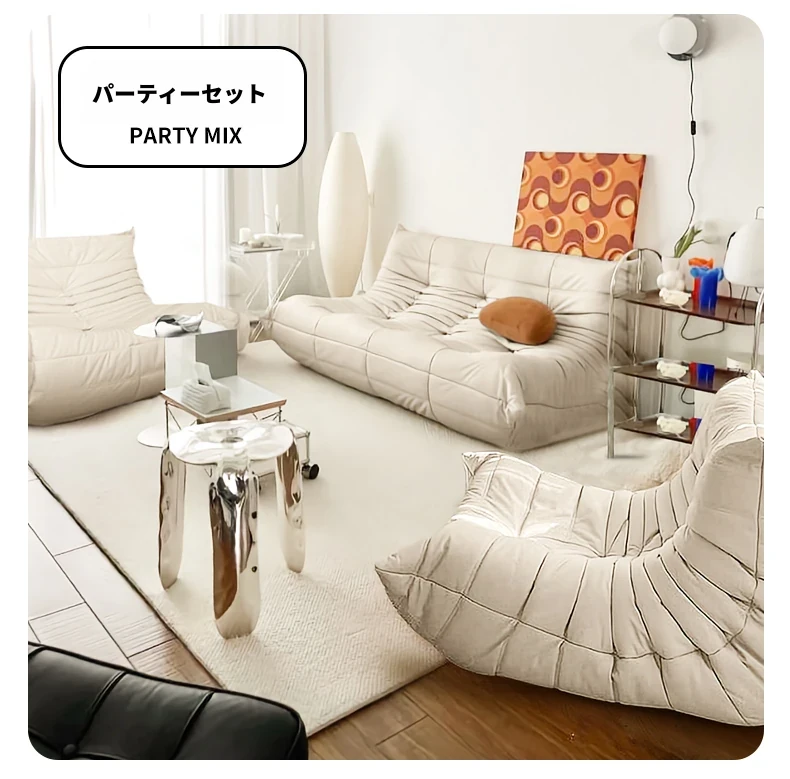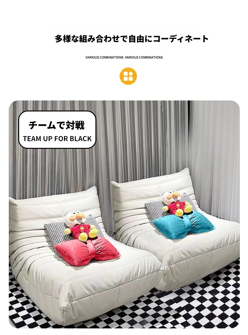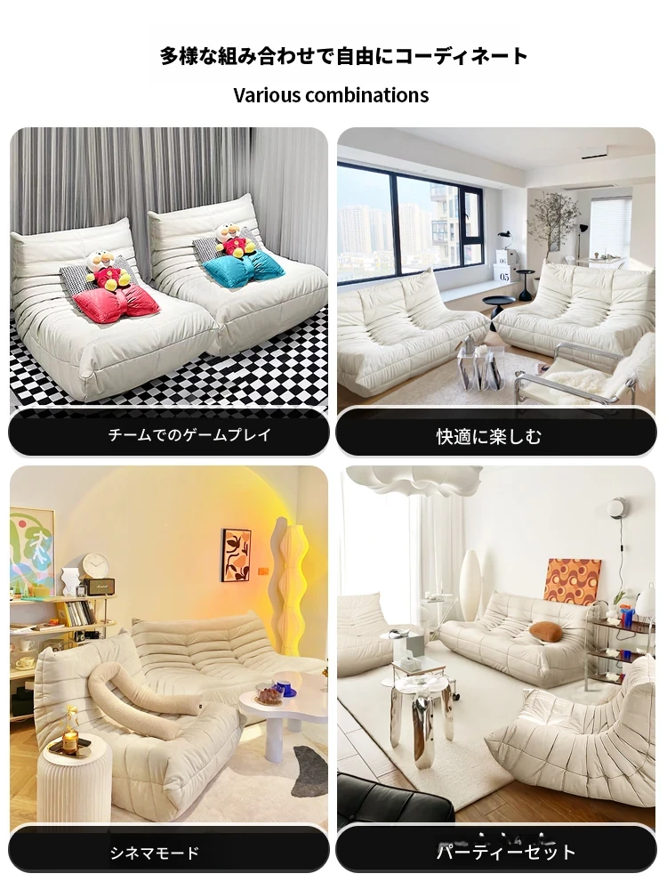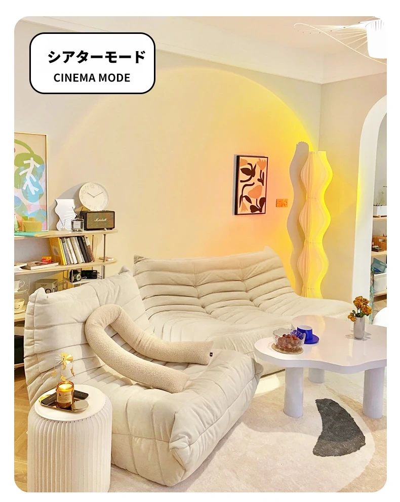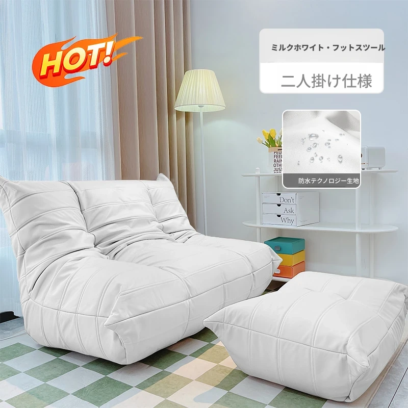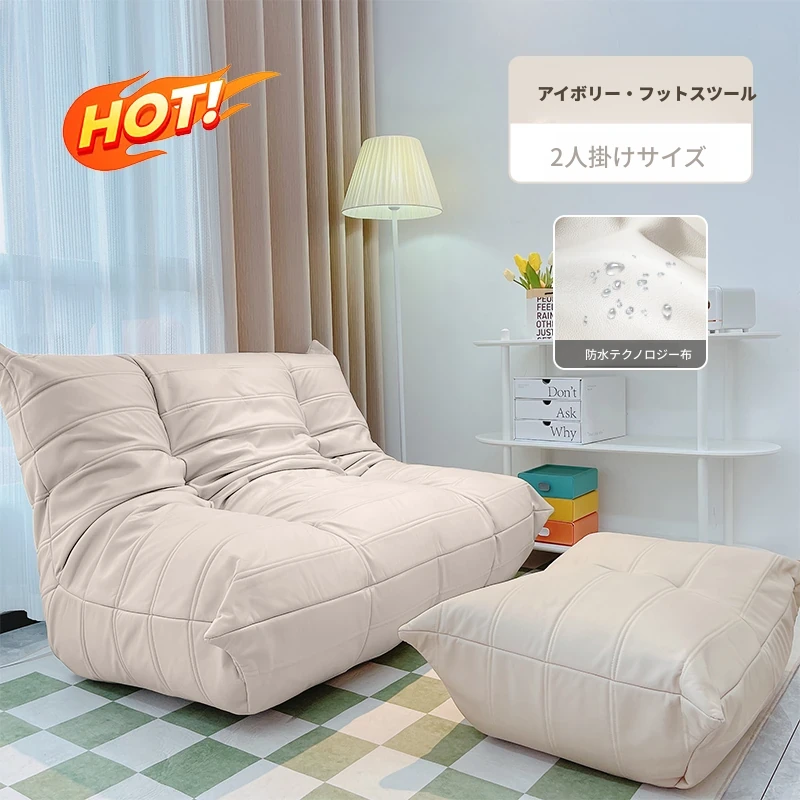 ふわふわカタツムリソファ|リビング・バルコニーに最適!寝そべり・お昼寝もできるインスタ風の可愛い二人掛けソファ|楽ちんタタミスタイルの豆袋小ソファでリラックス!