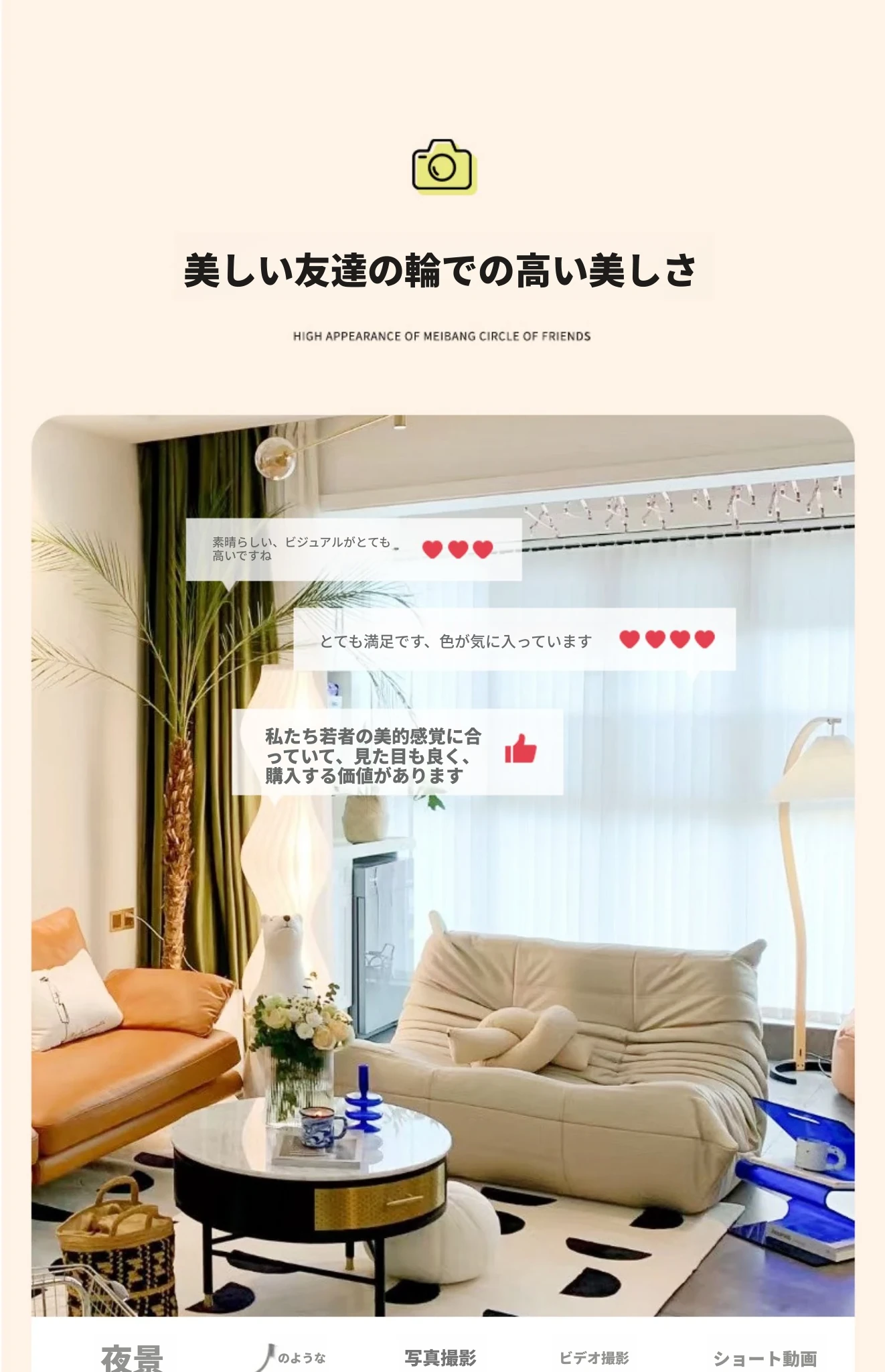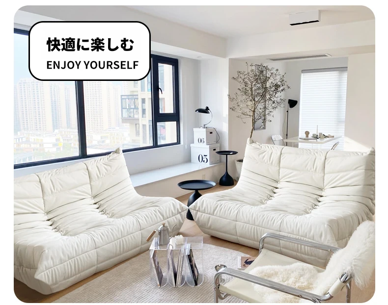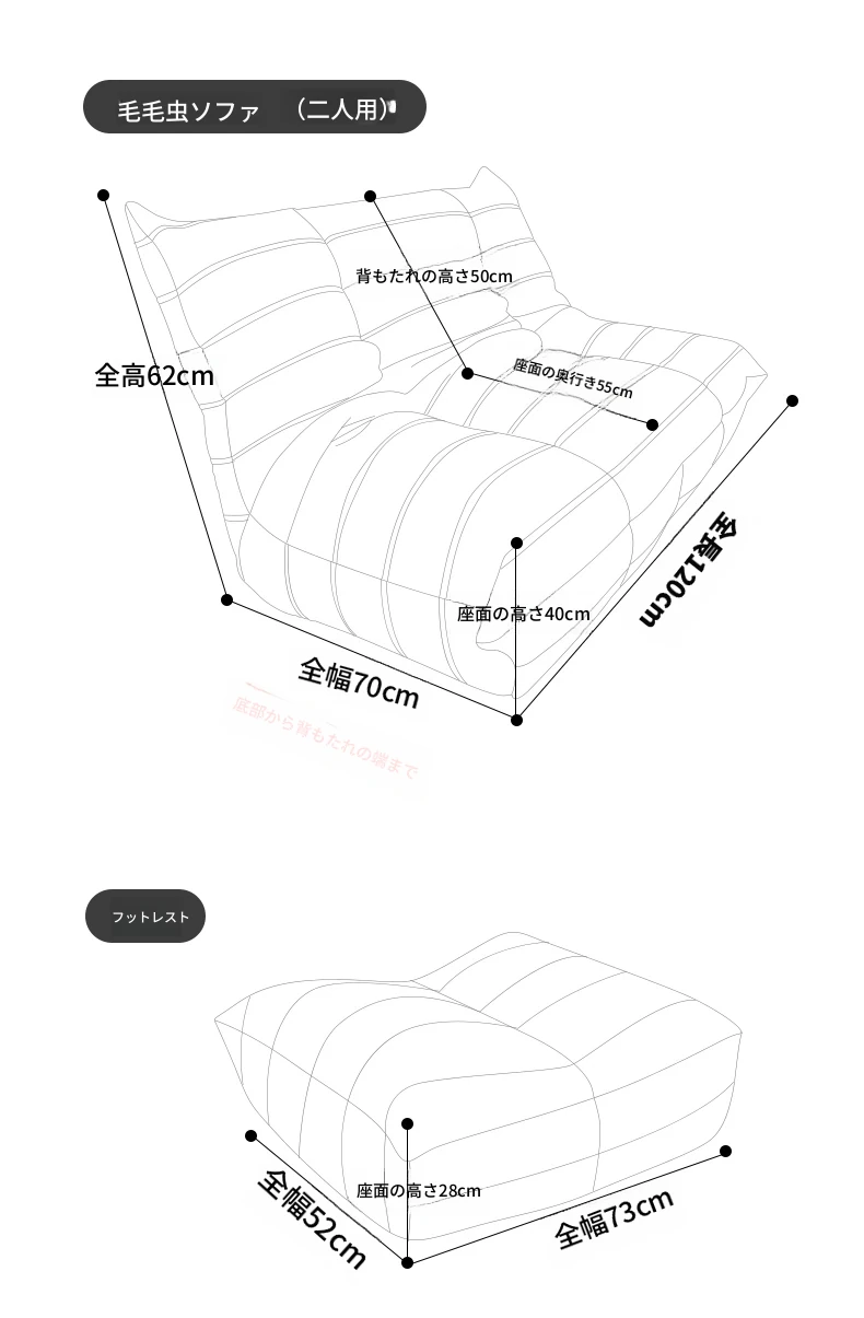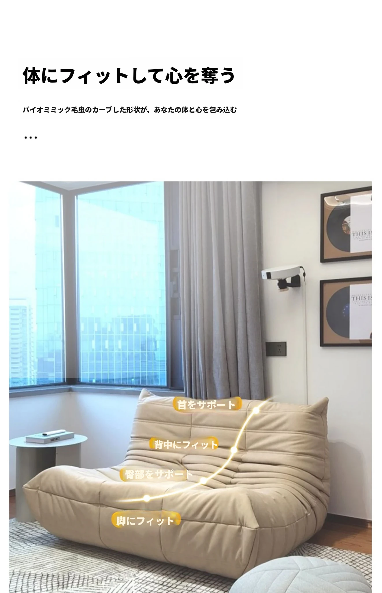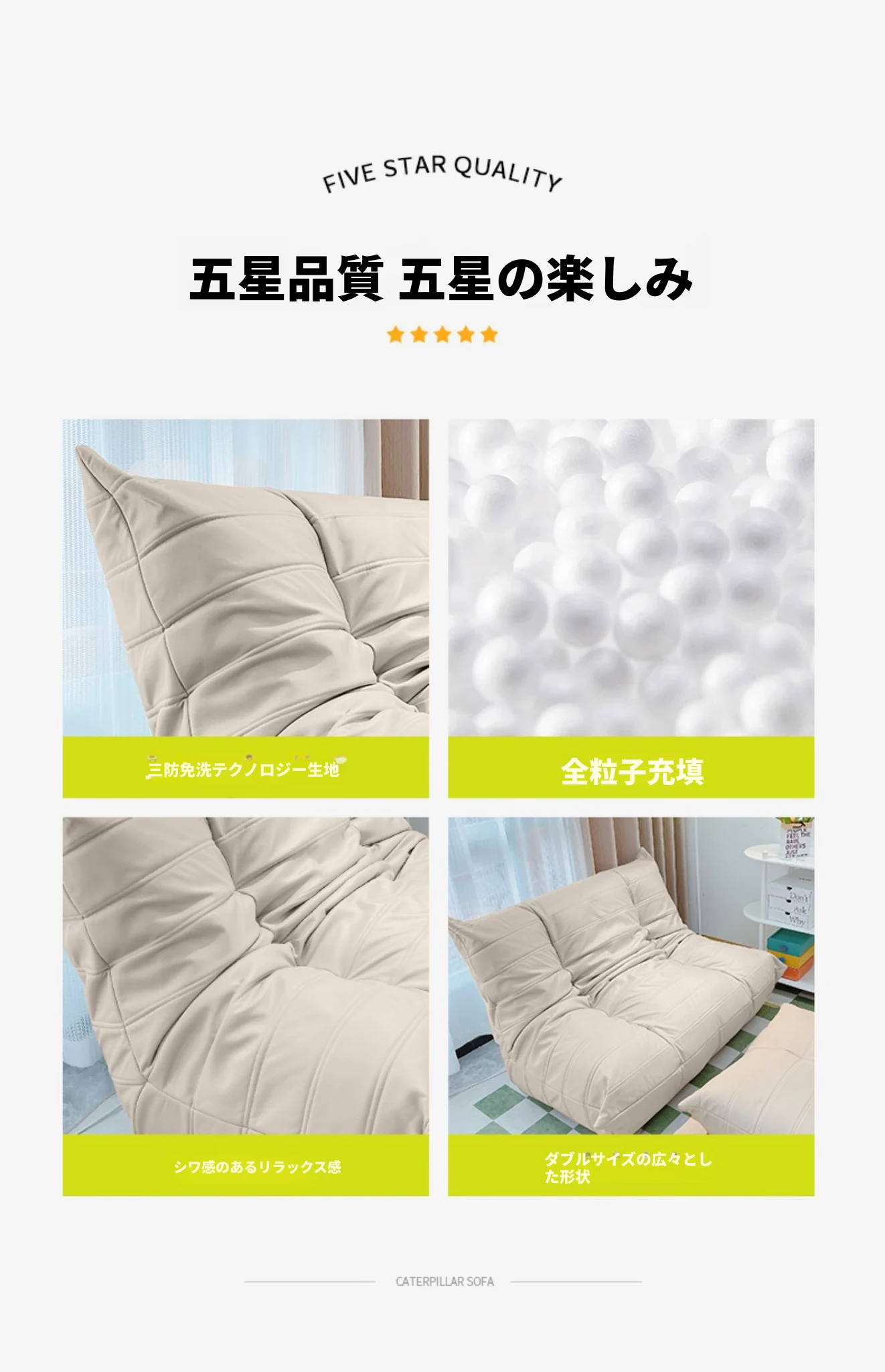 ふわふわカタツムリソファ|リビング・バルコニーに最適!寝そべり・お昼寝もできるインスタ風の可愛い二人掛けソファ|楽ちんタタミスタイルの豆袋小ソファでリラックス!
