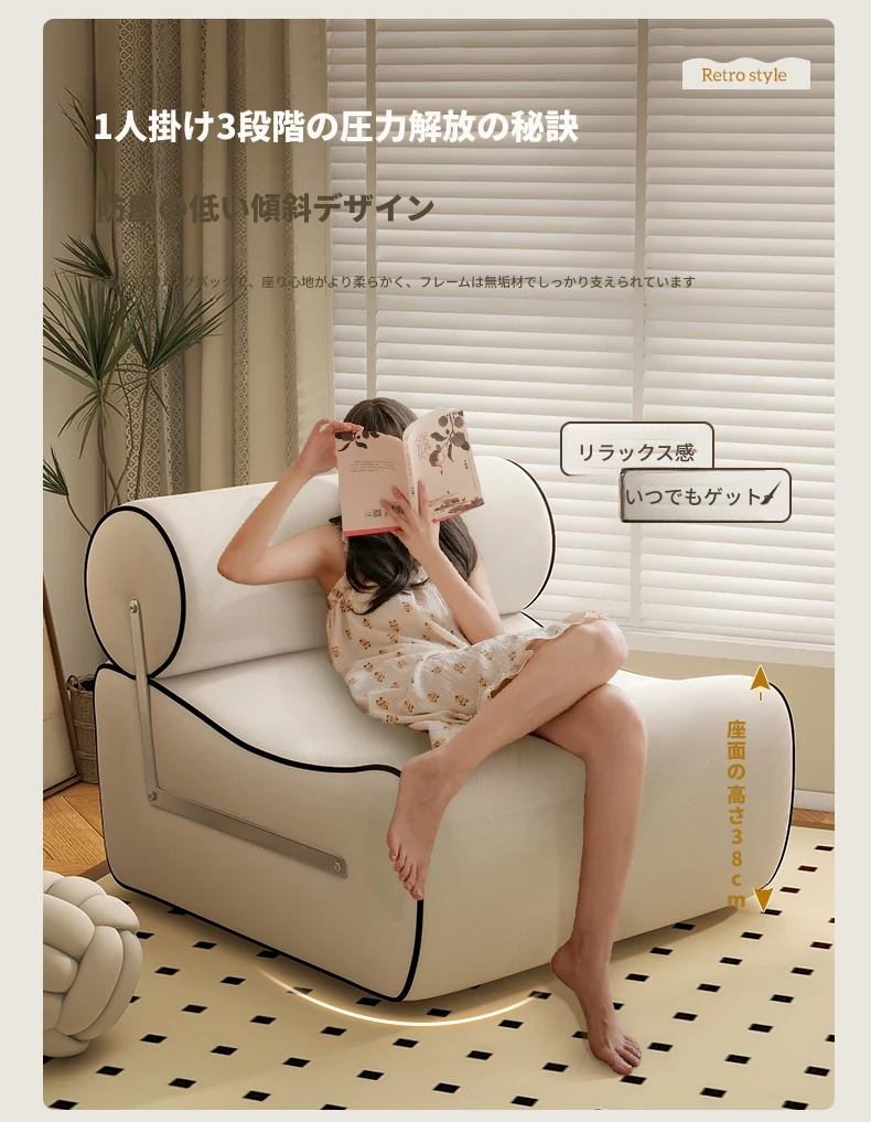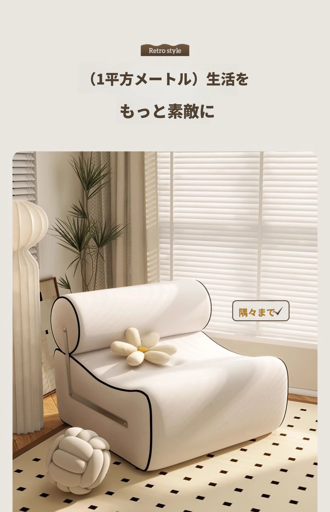 リラックスできる!寝転んでもOKな豆腐ブロックソファ。バルコニーや畳スペースにピッタリの一人用ソファ。小さな寝室にも最適!あなたのくつろぎ空間を演出します。