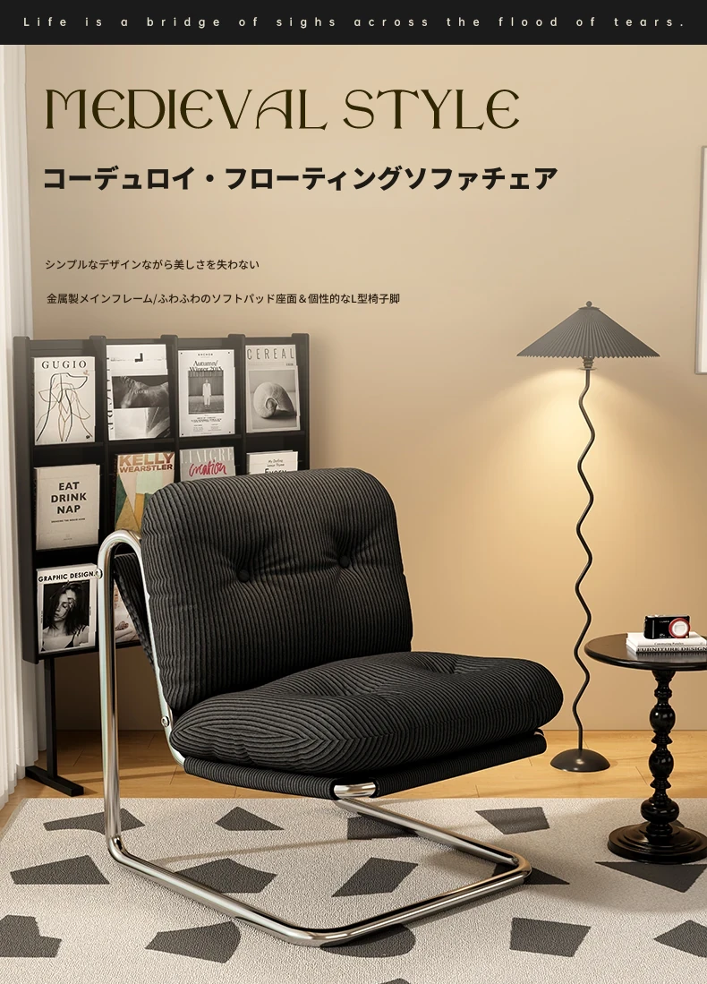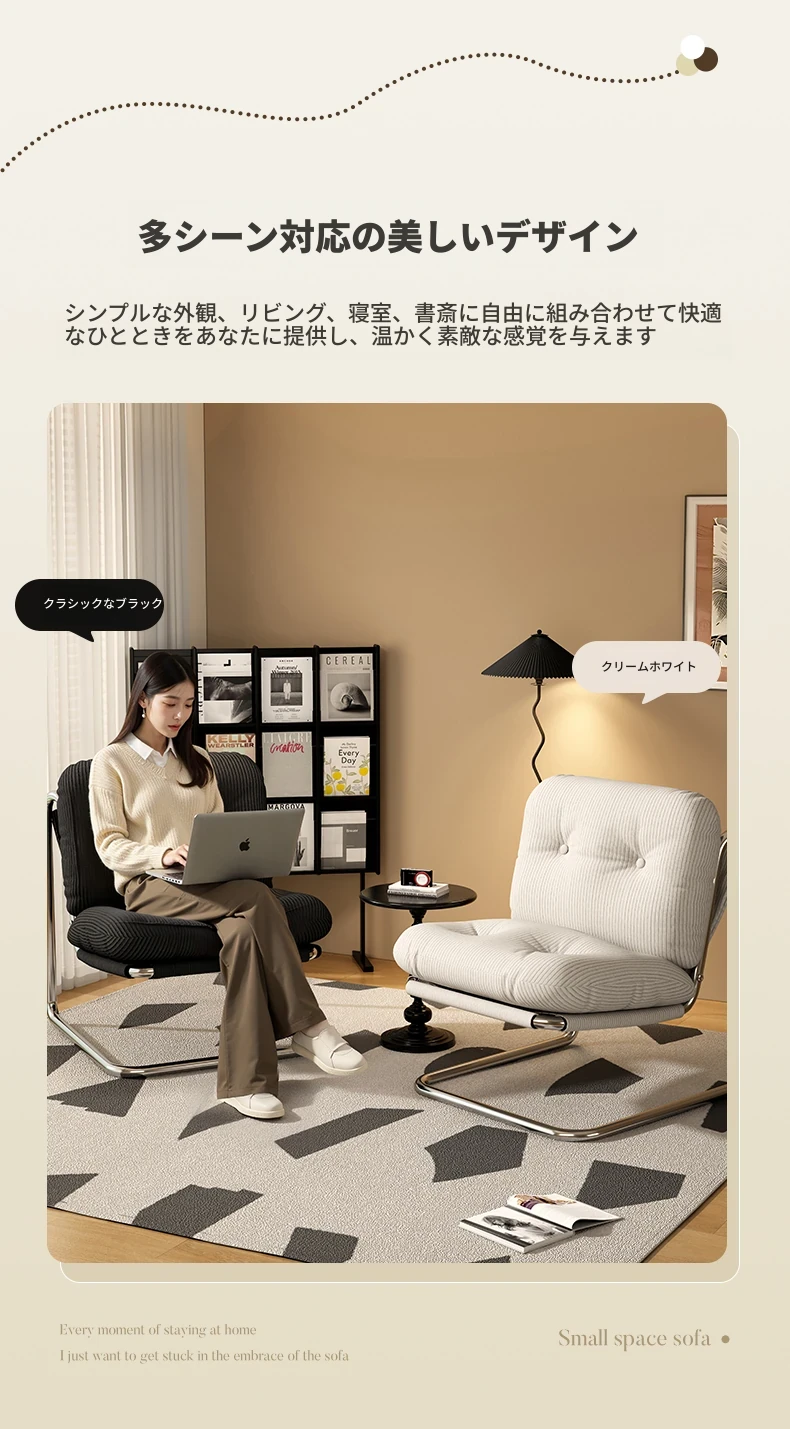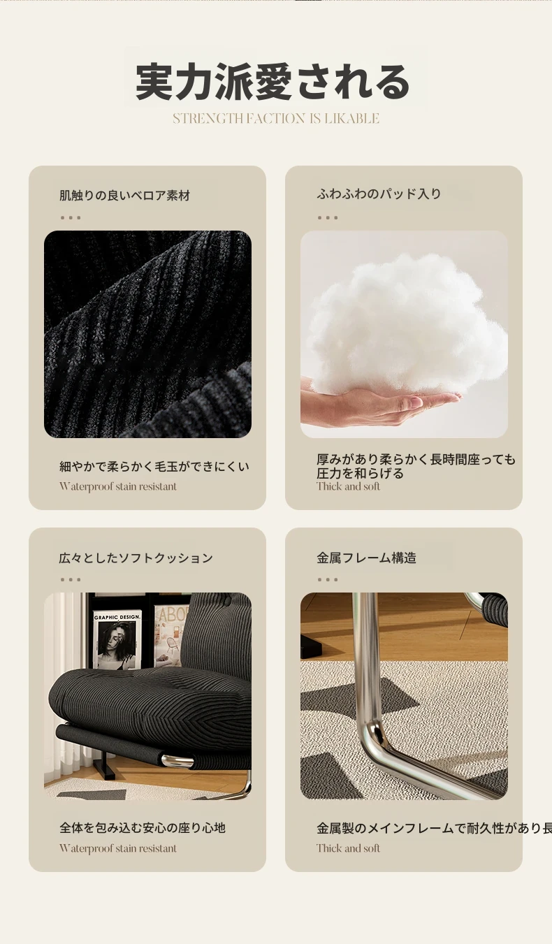 バルコニー用シングルソファチェア|小型のリビングや寝室に最適!秋冬にぴったりのコーデュロイ生地使用で、リラックスしながら読書を楽しめる背もたれ付きのくつろぎソファ。快適さとスタイルを兼ね備えた一品です!