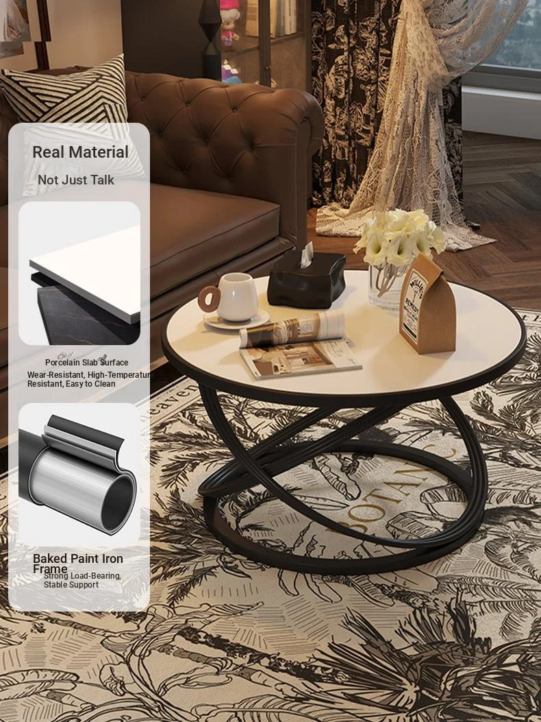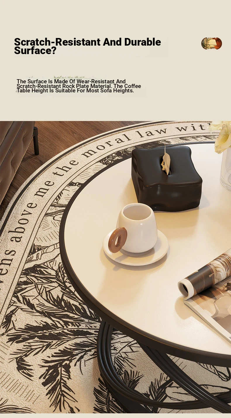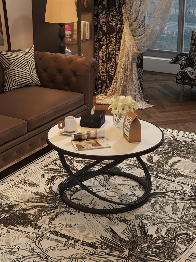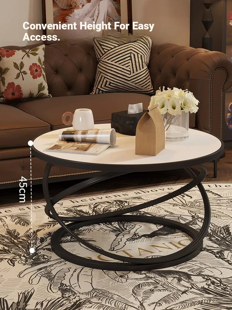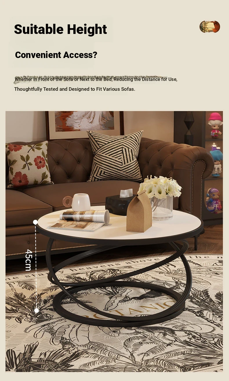 Elegant Round Coffee Table - Minimalist Mid-Century Design for Small Spaces, Perfect for Balcony & Living Room - Luxury Stone Surface, Ideal for Your Home Décor