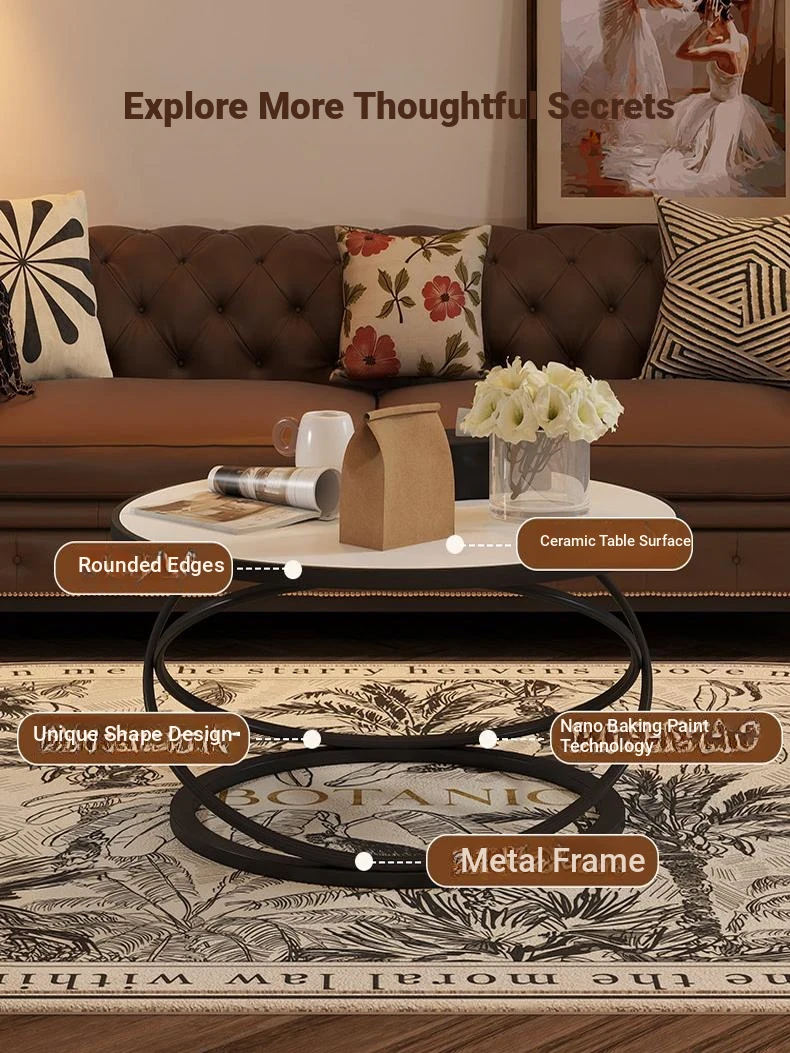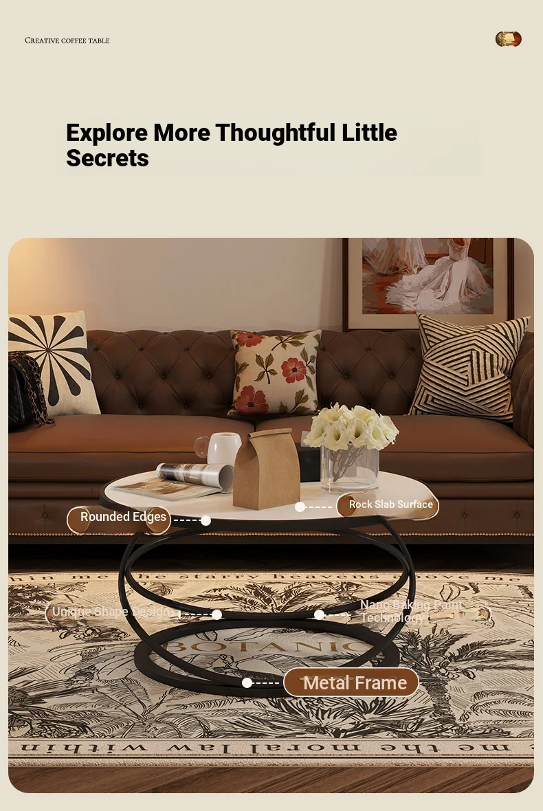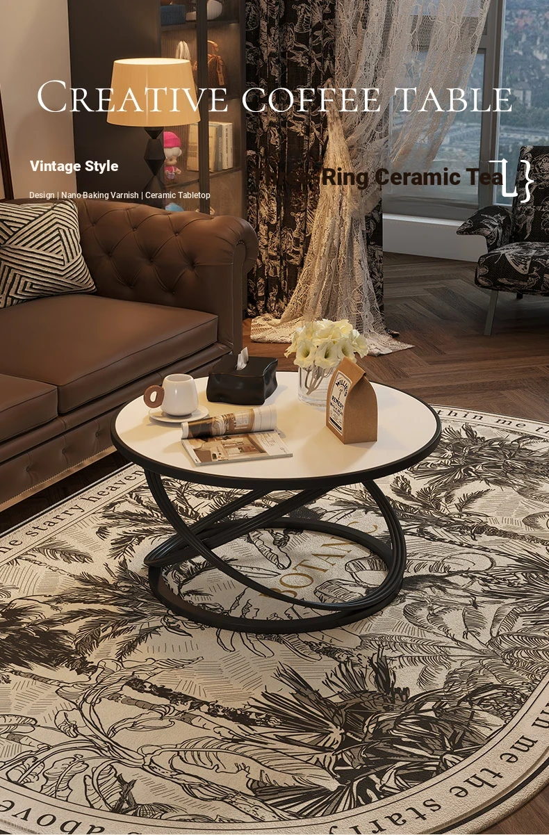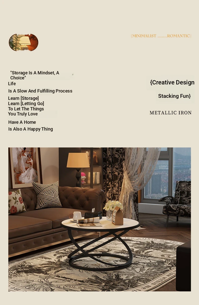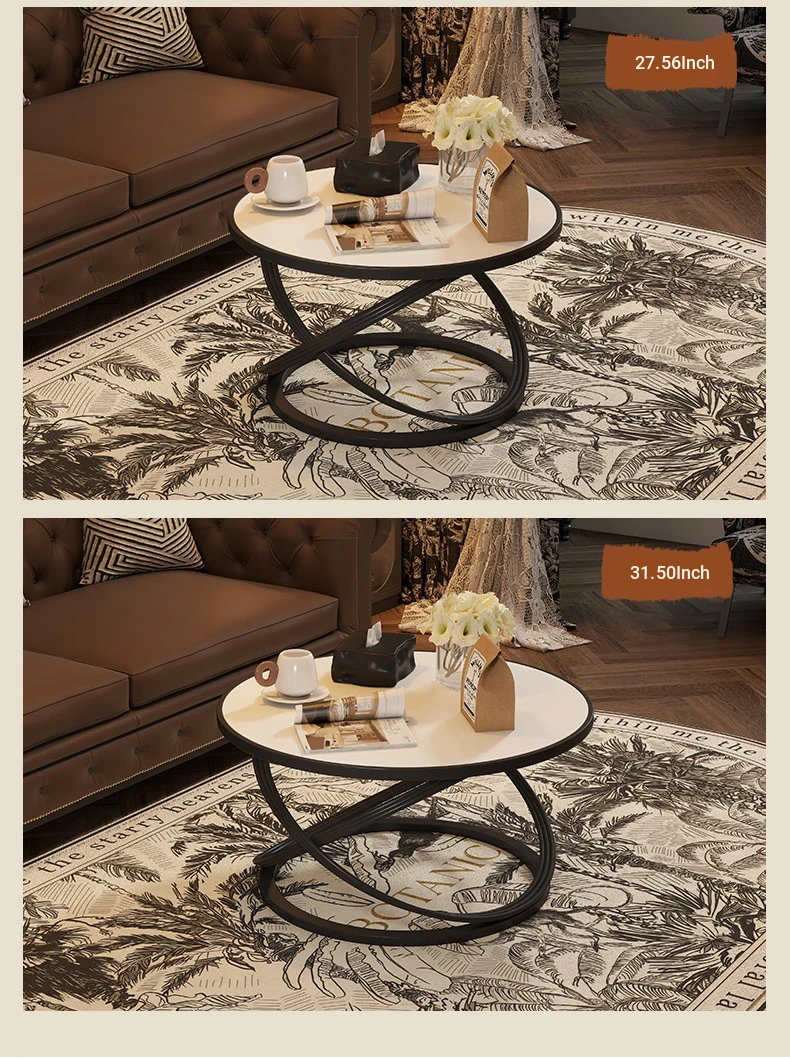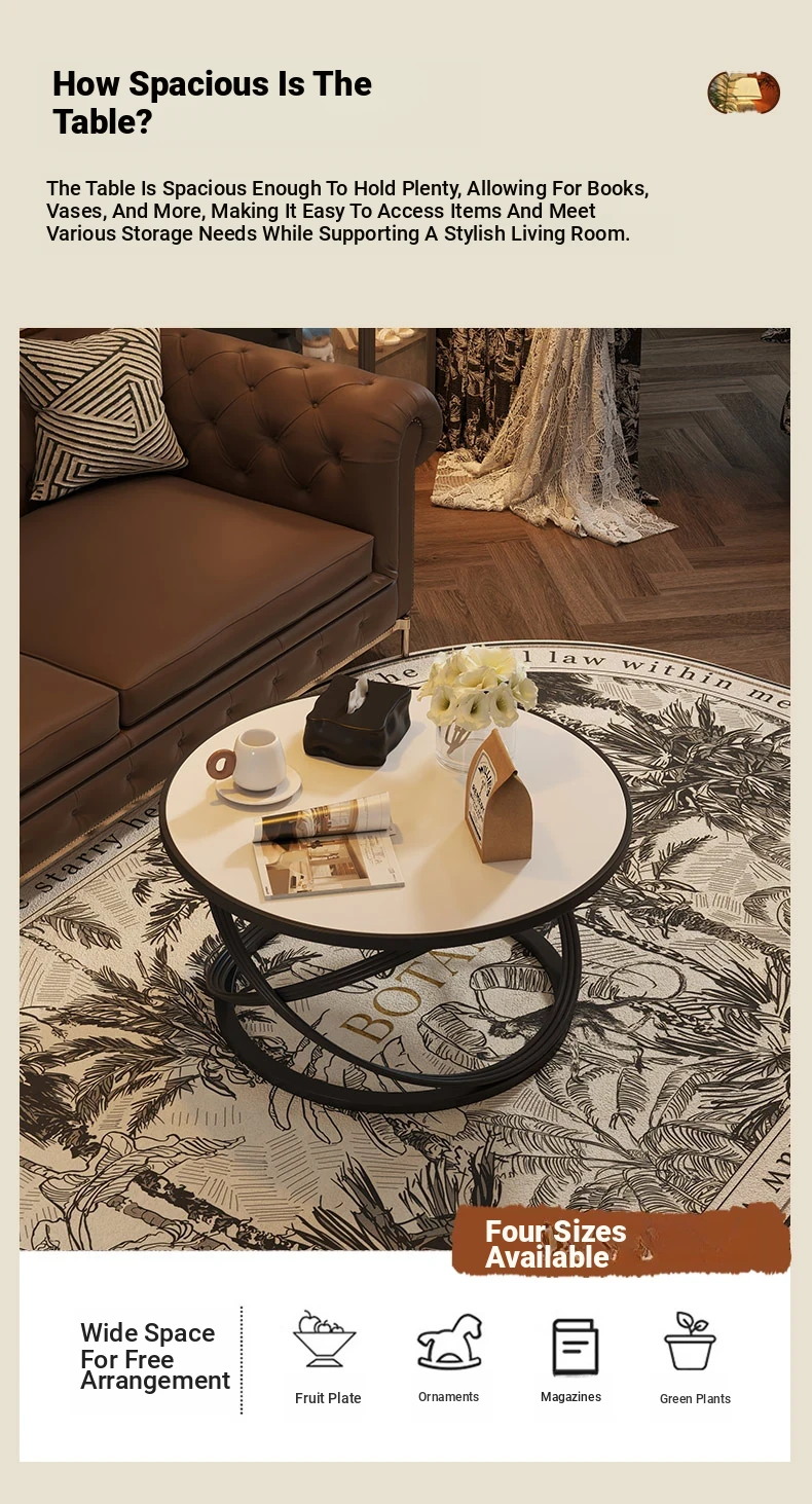 Elegant Round Coffee Table - Minimalist Mid-Century Design for Small Spaces, Perfect for Balcony & Living Room - Luxury Stone Surface, Ideal for Your Home Décor