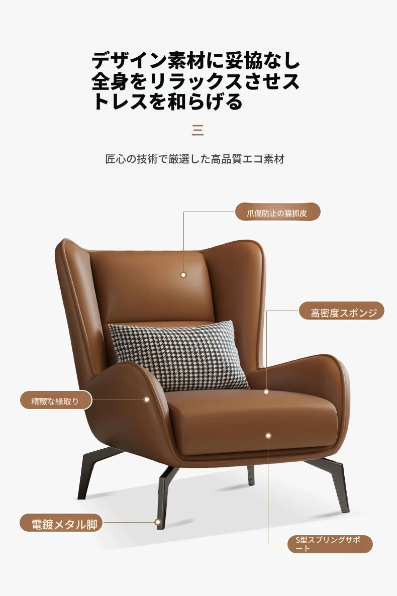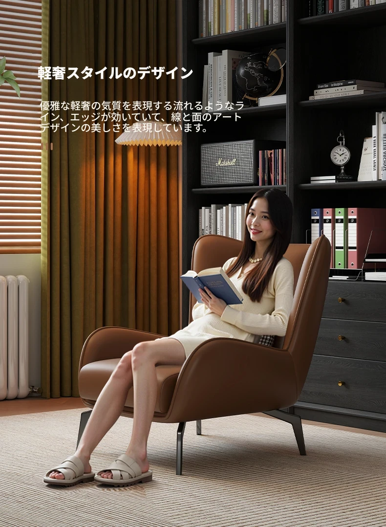 一人用イタリアンミニマリストソファ|ラグジュアリーなリラックス空間を演出するデザイナー虎椅子|快適なローライフスタイルにぴったりなスチールバックチェア