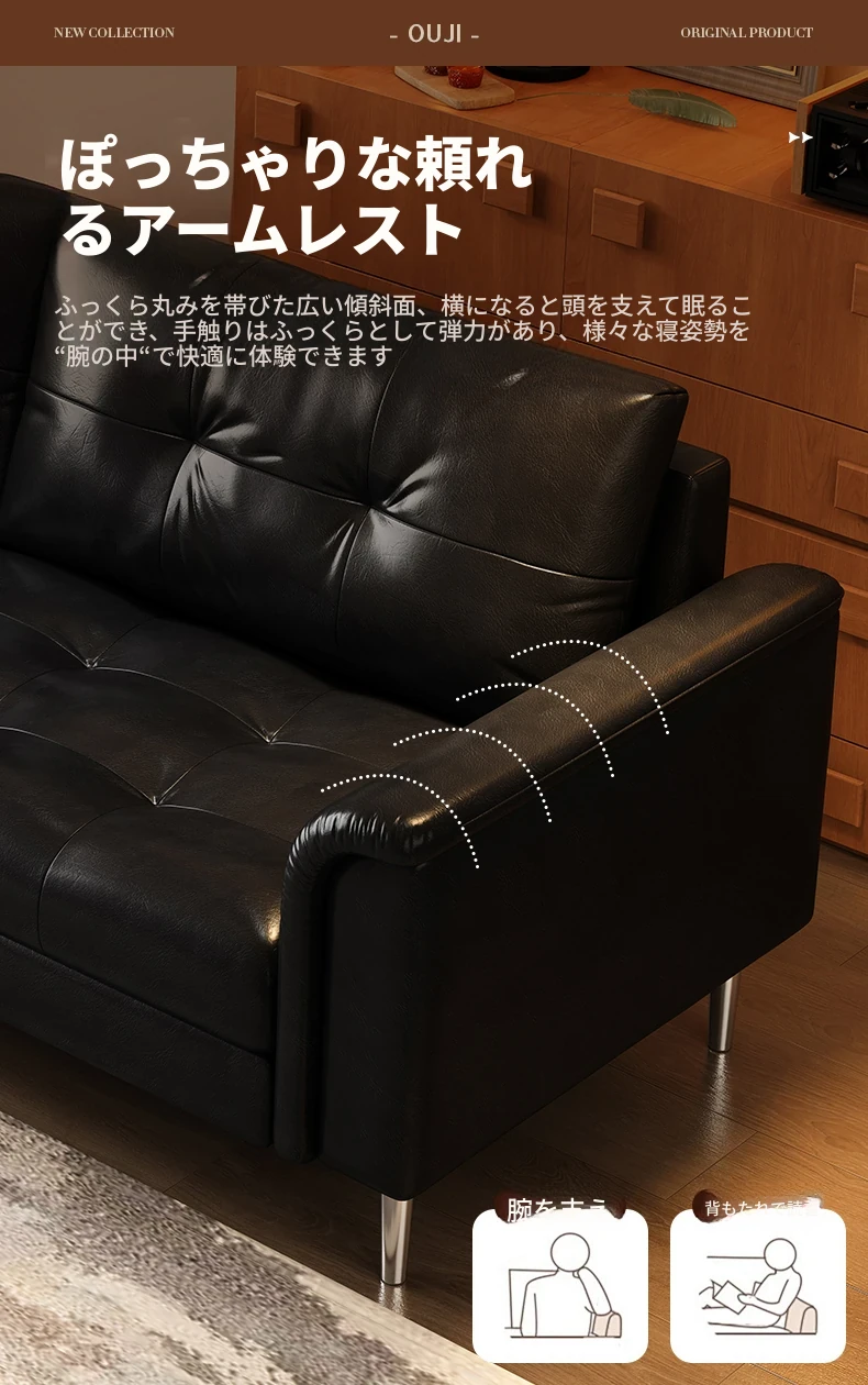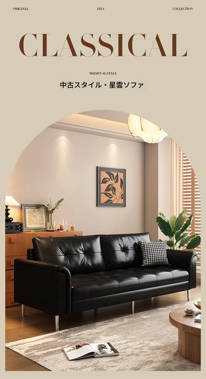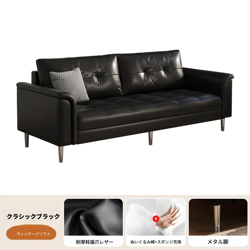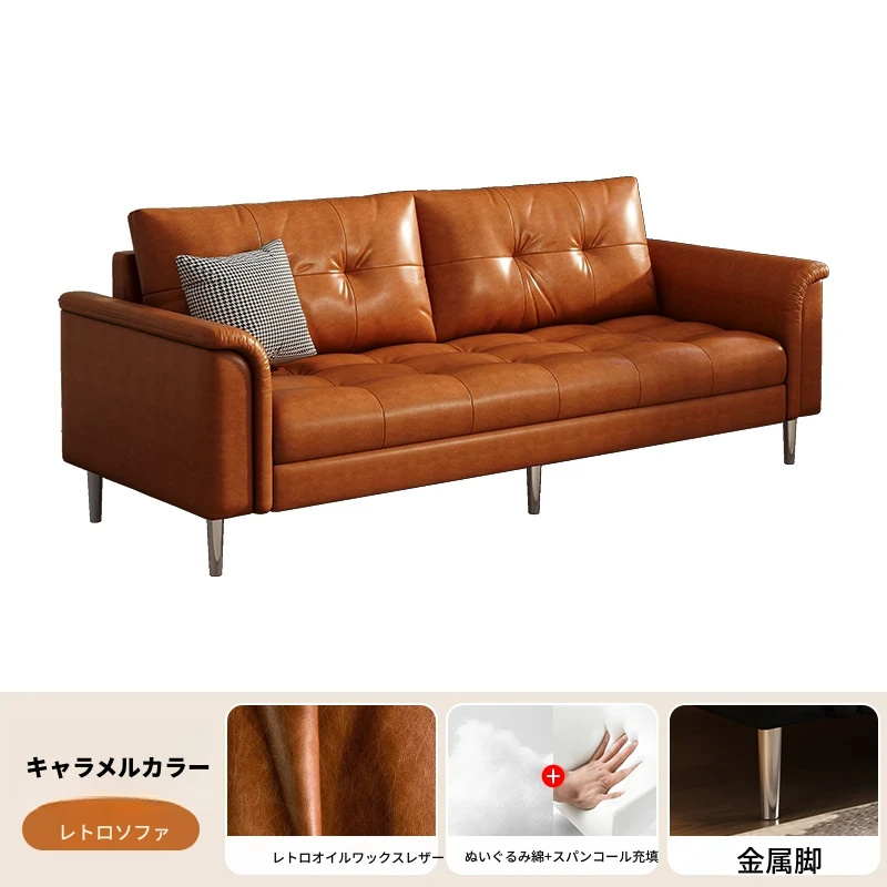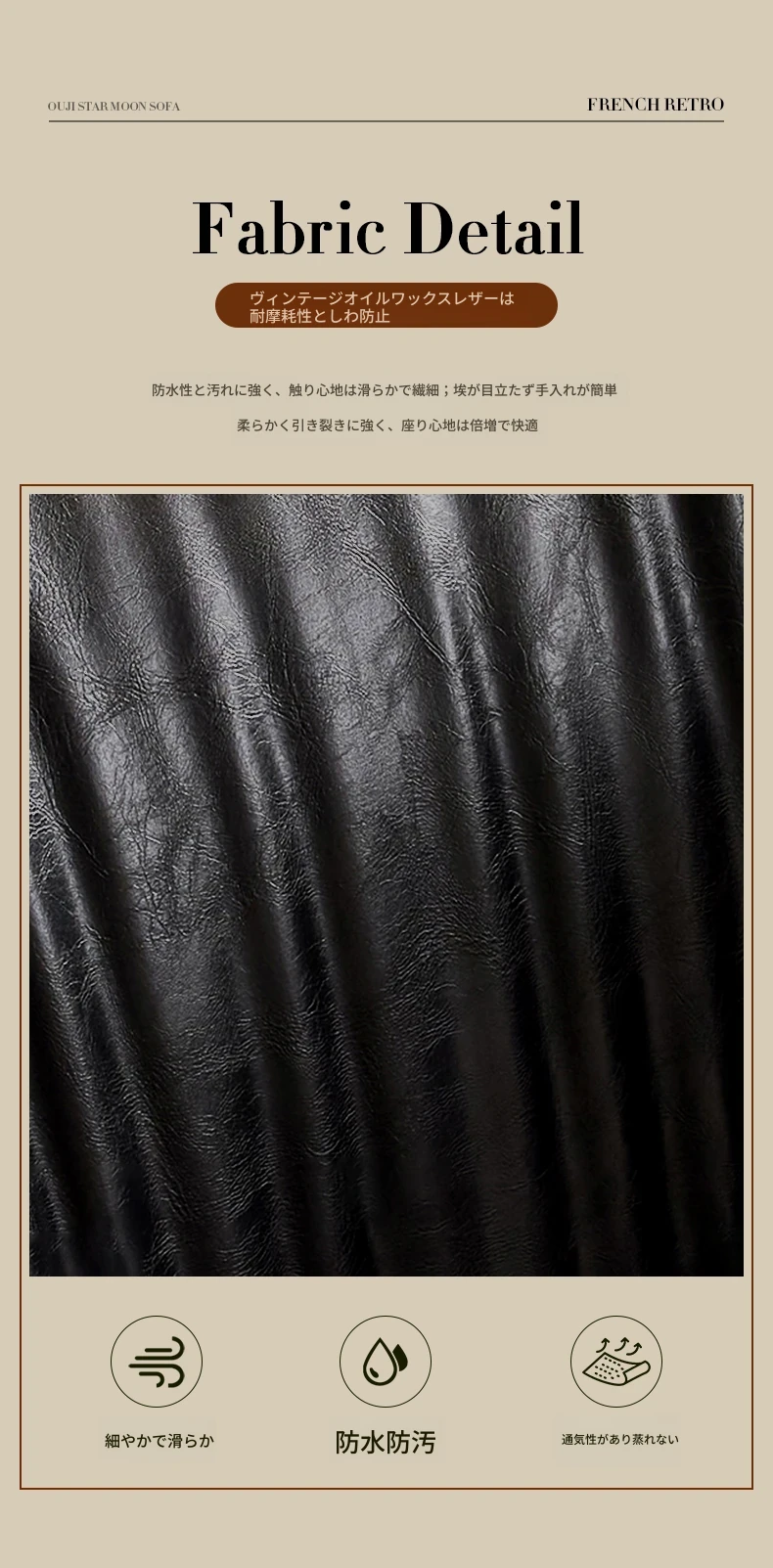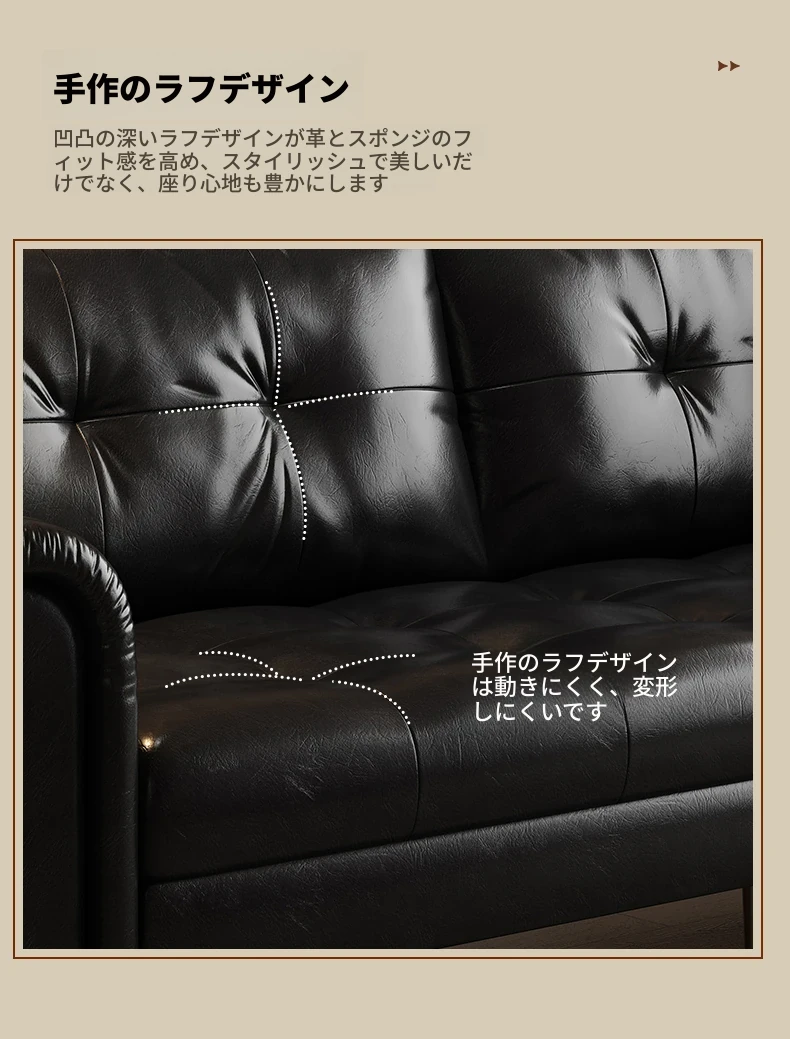 黒のイタリアンミニマリストオイルワックスレザーソファ、小型リビング向けのレトロアメリカンスタイル、宇宙のようなデザインで個性的な空間を演出!おしゃれで機能的な選択肢です。