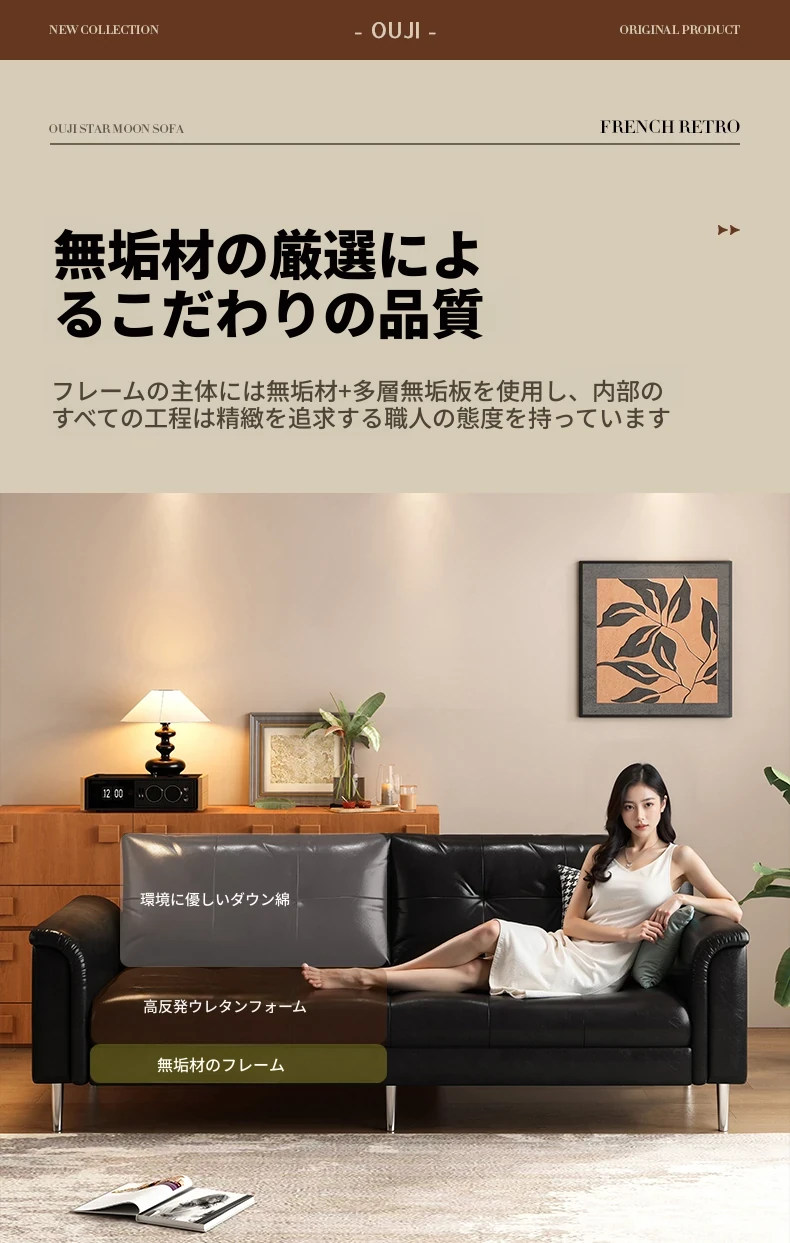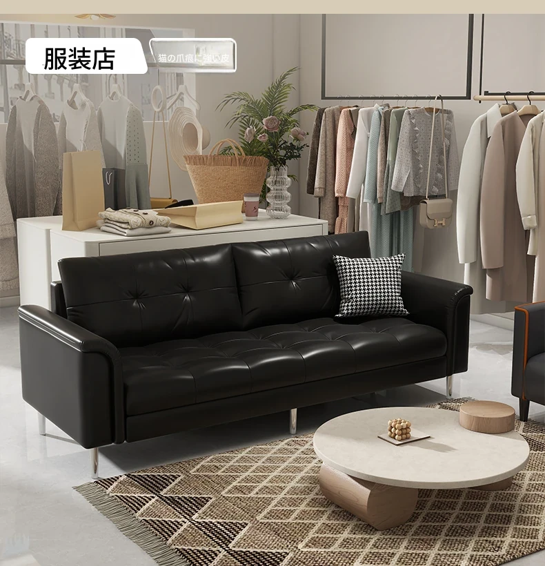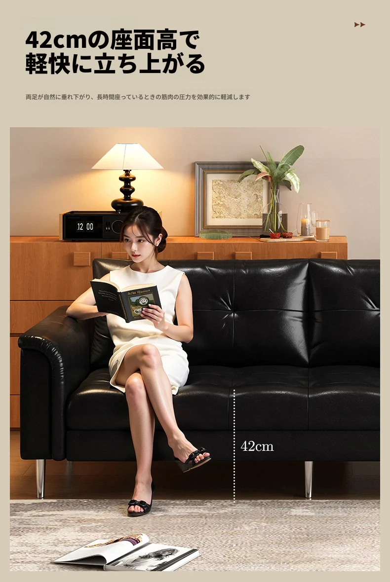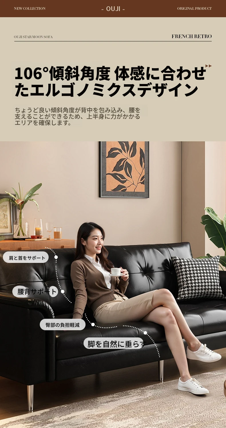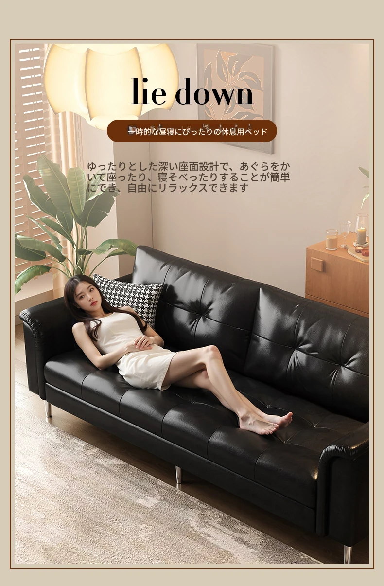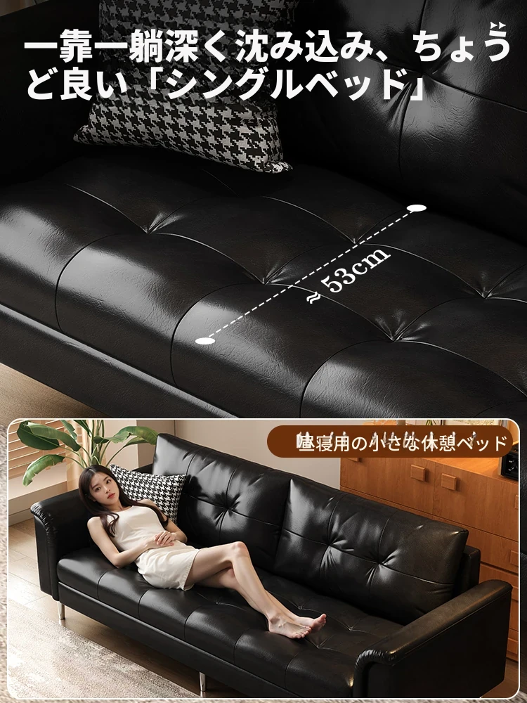 黒のイタリアンミニマリストオイルワックスレザーソファ、小型リビング向けのレトロアメリカンスタイル、宇宙のようなデザインで個性的な空間を演出!おしゃれで機能的な選択肢です。