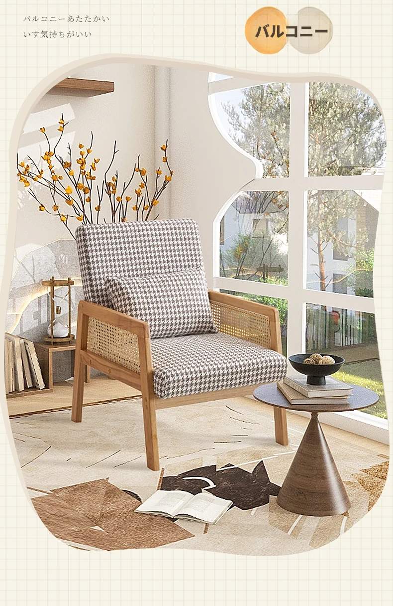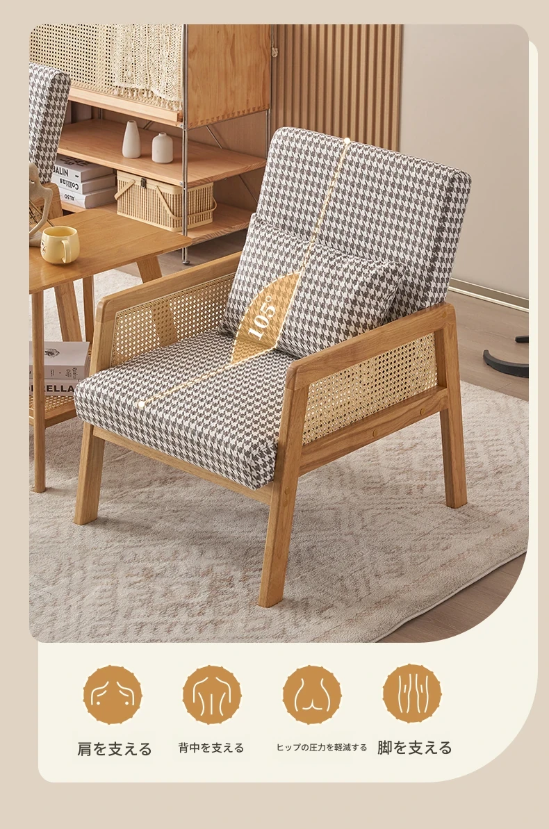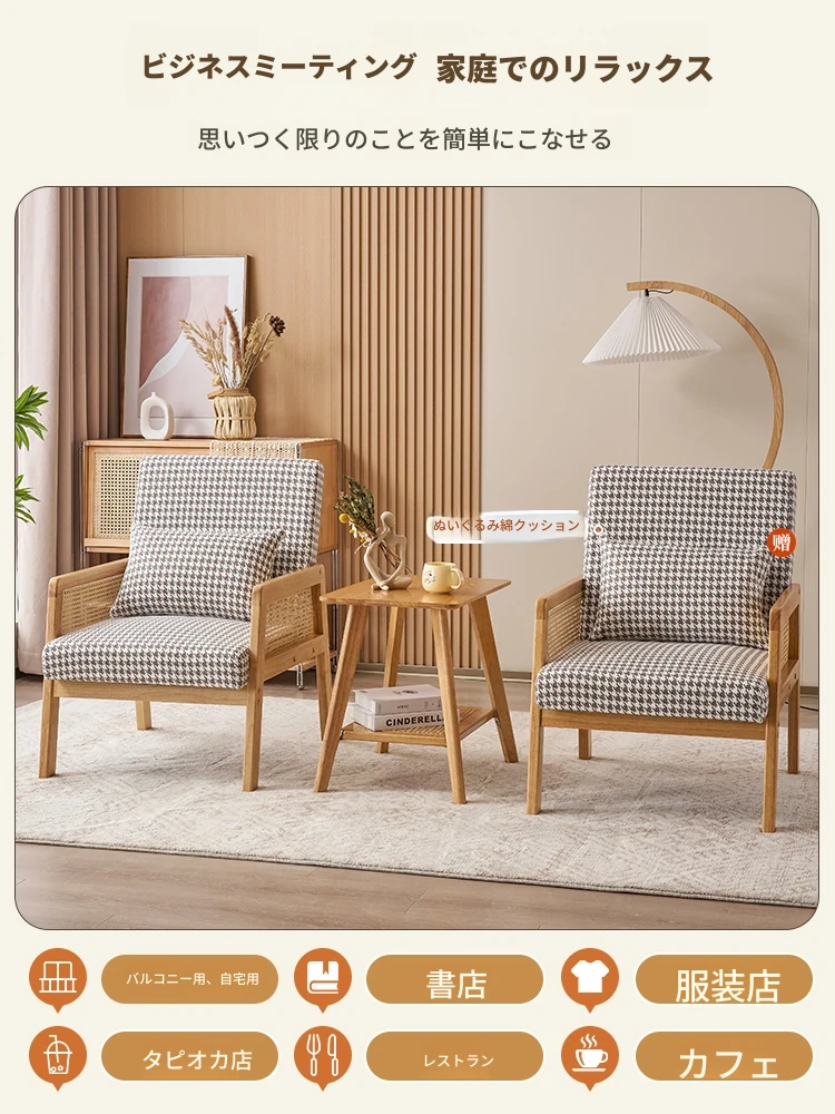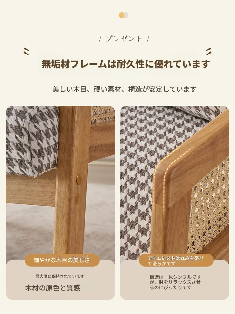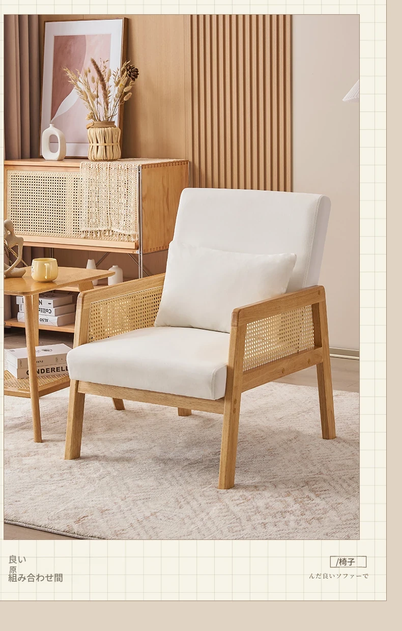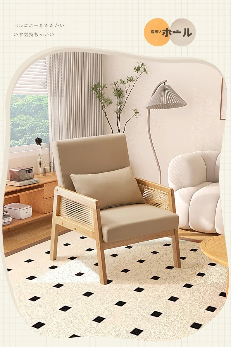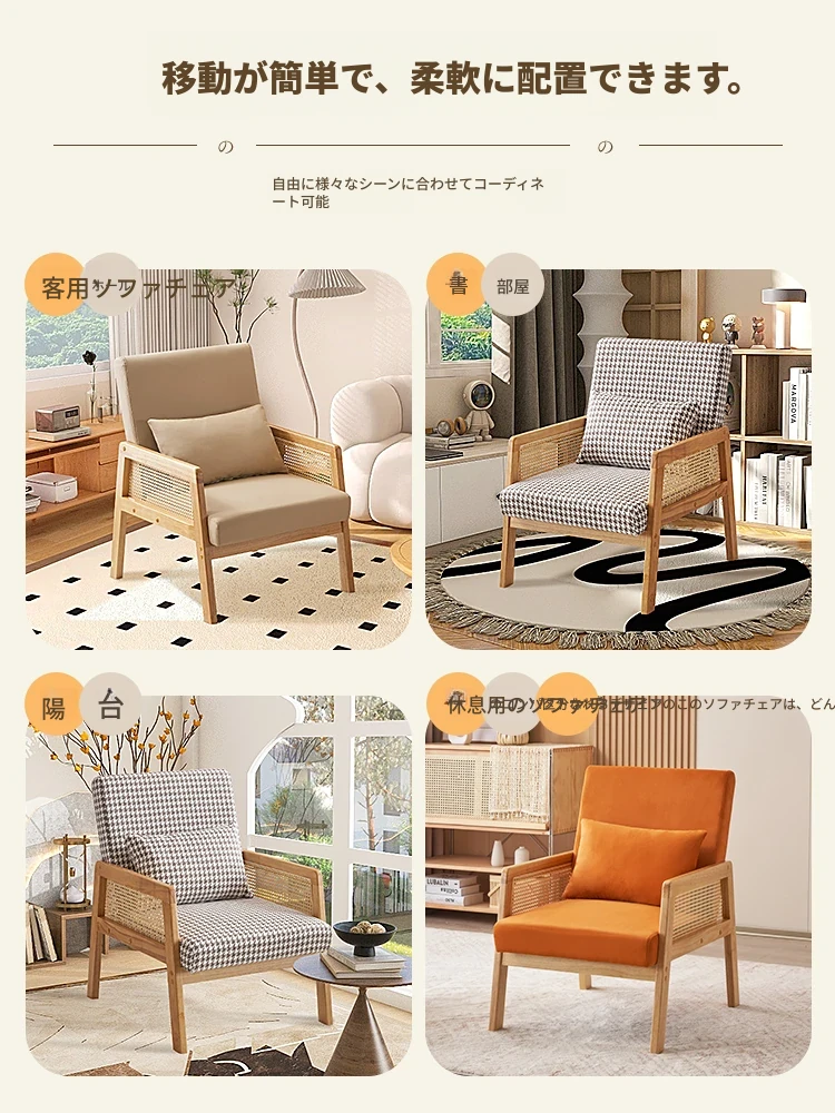 無垢材のシングルソファ椅子 - リビング、書斎、バルコニー、ホテルや民宿に最適!シンプルでスタイリッシュなデザイン、リラックスしたひとときを提供する軽やかなラグジュアリー感のある接待・談話用椅子。