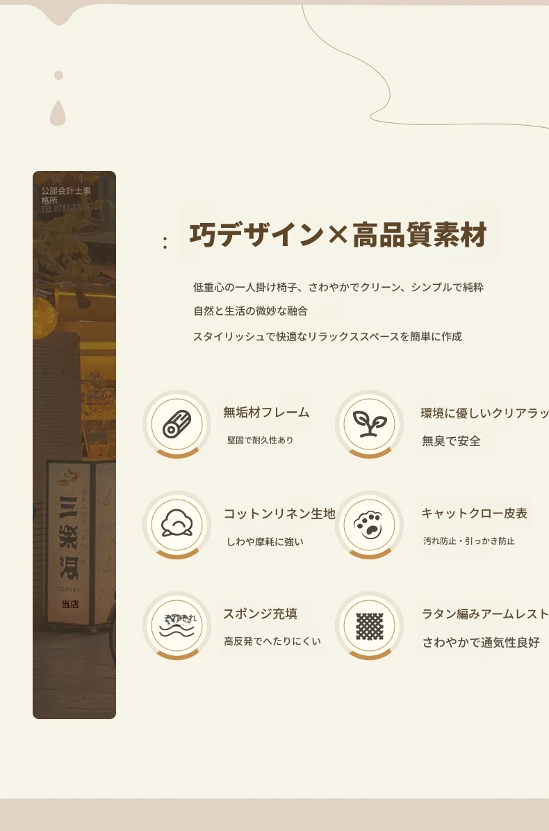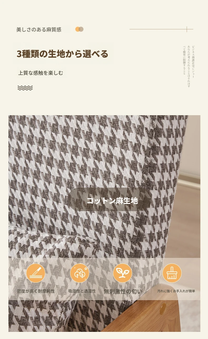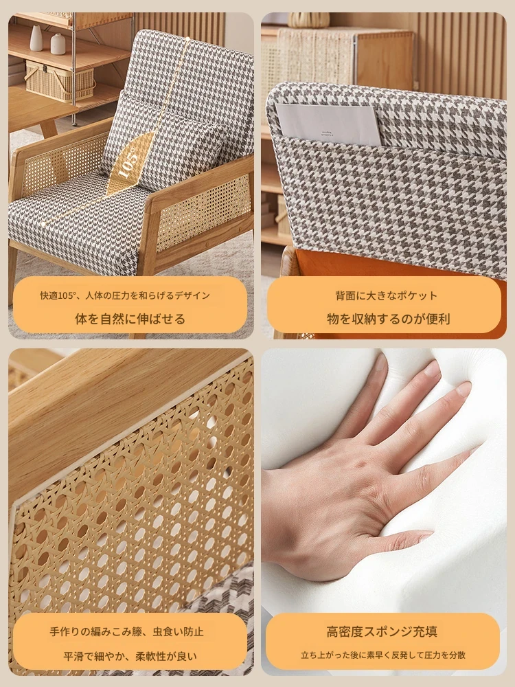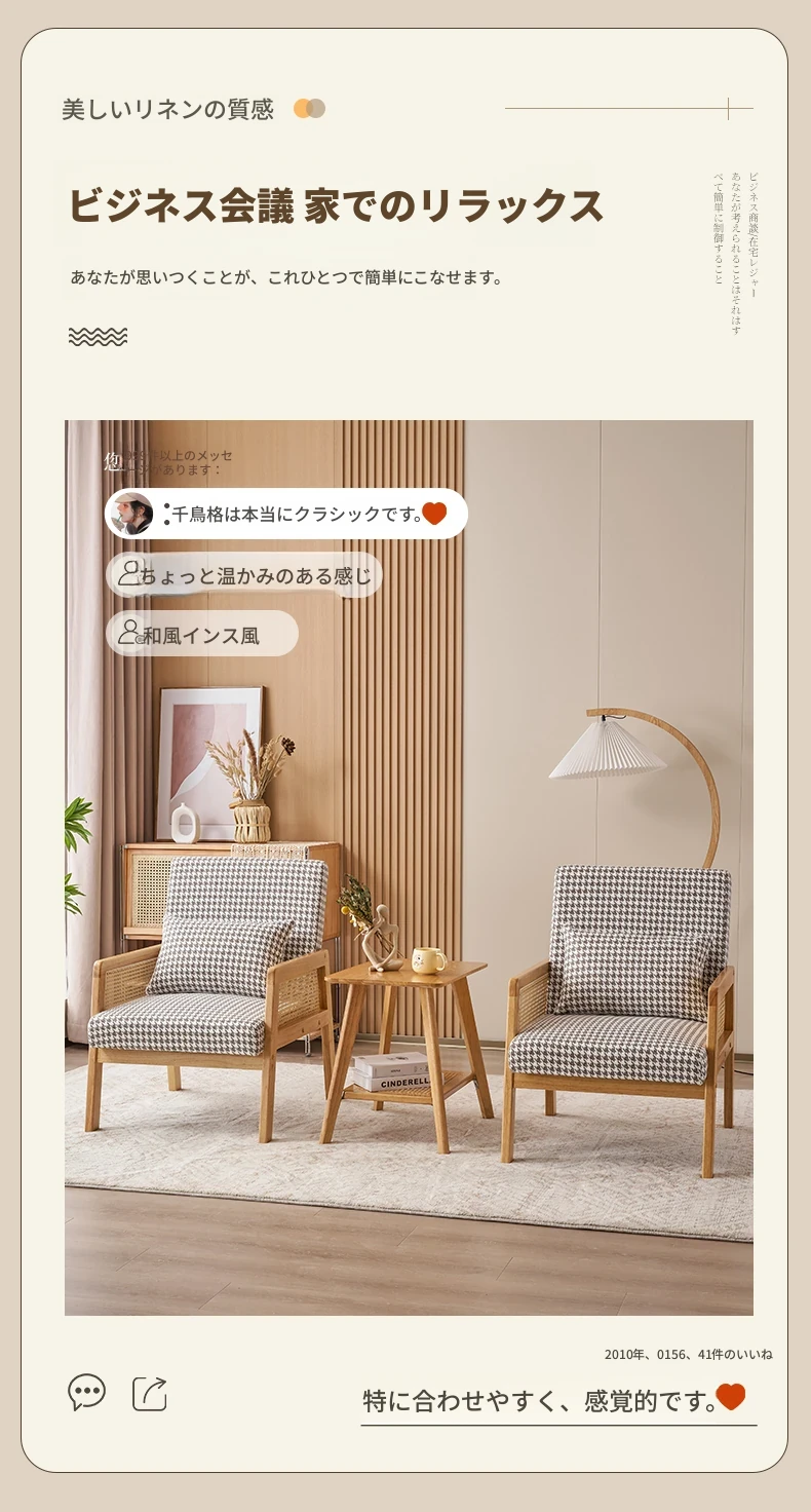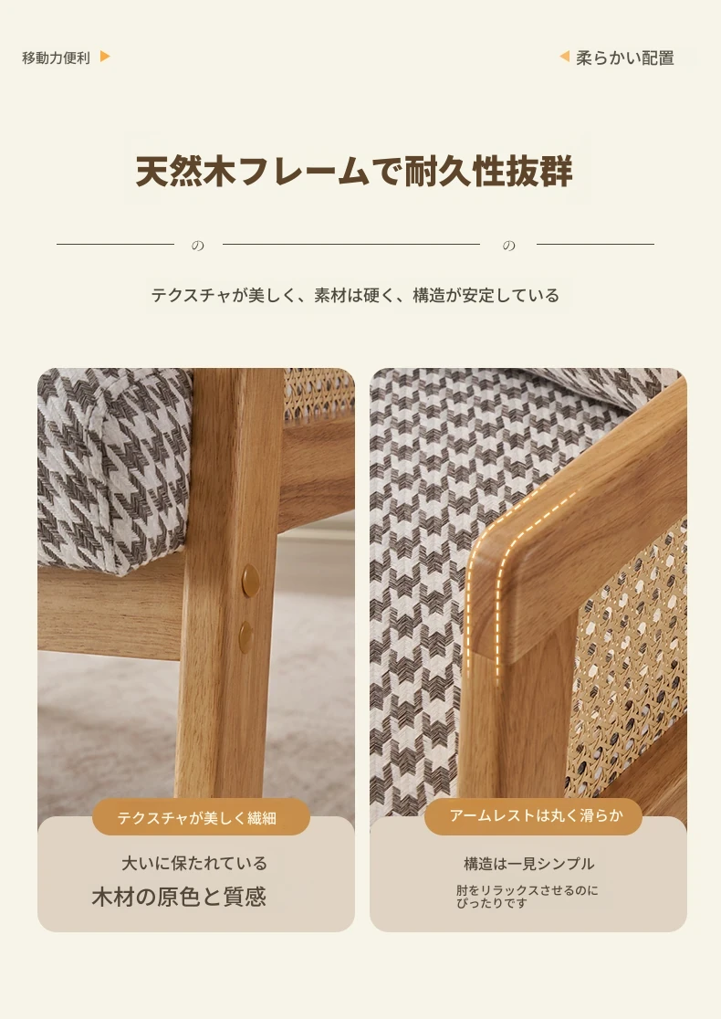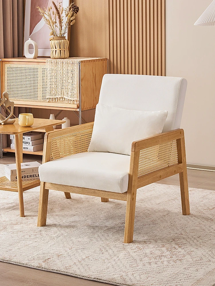 無垢材のシングルソファ椅子 - リビング、書斎、バルコニー、ホテルや民宿に最適!シンプルでスタイリッシュなデザイン、リラックスしたひとときを提供する軽やかなラグジュアリー感のある接待・談話用椅子。